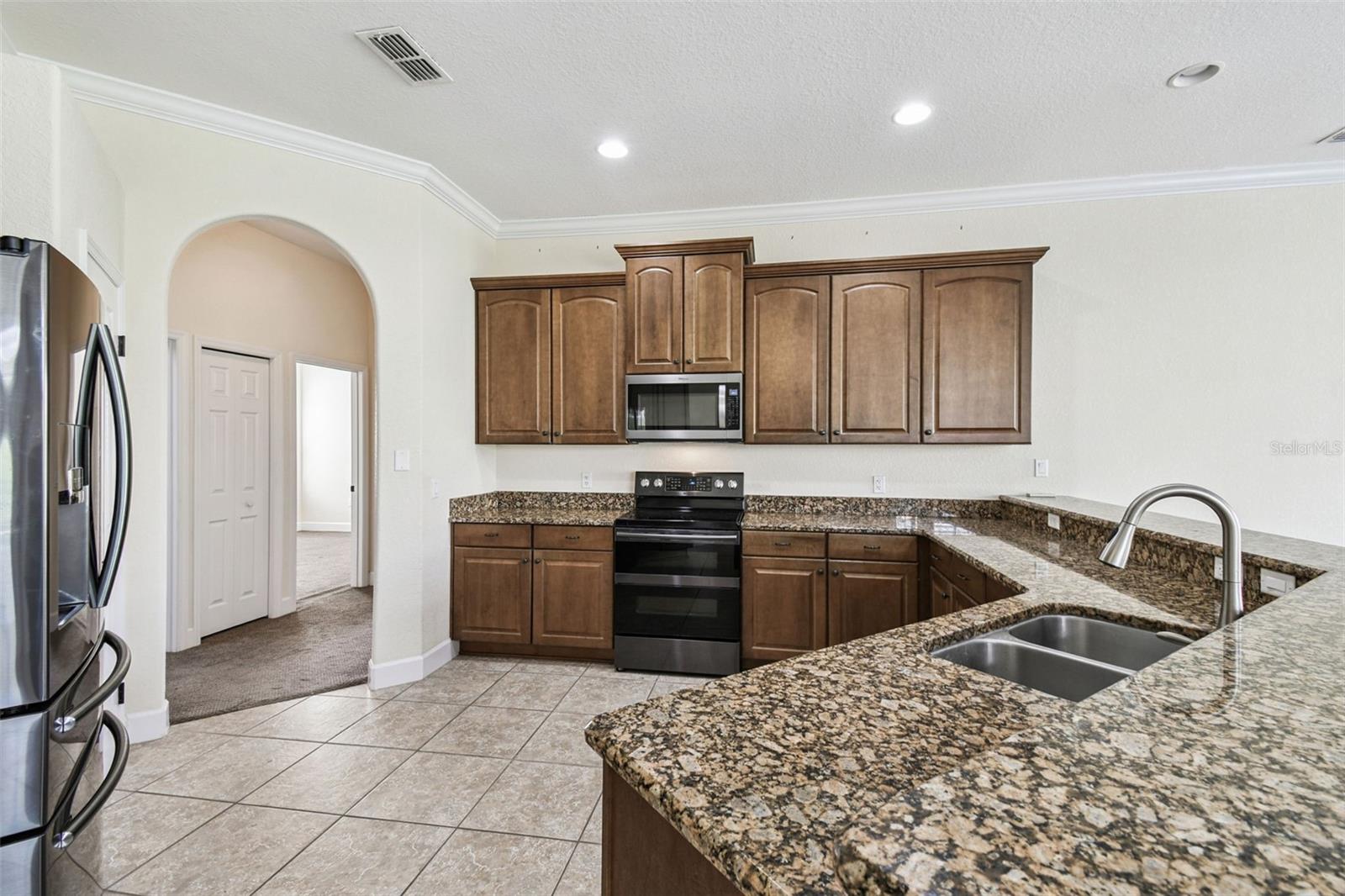 Welcome to the Hills of Arietta! This stunning 2,736 sq foot pool home offers the perfect blend of luxury and privacy. Ideally situated in a beautiful, gated community, this property is a must-see for buyers looking for a spacious and modern residence in Central Florida. This 3-bedroom, 3-bath home sits on a beautifully landscaped oversized .6 acre lot! It is situated on a quiet culdesac and fenced in for complete privacy. From the moment you enter the front door, the spacious living and formal dining room are enhanced by a soaring 12 foot ceiling. The light-colored interior is enhanced by plenty of natural light with large windows and French doors that lead to a huge screened in patio and pool with a relaxing waterfall feature - perfect for entertaining! This home has so many extras! From the plantation shutters throughout, solar panels to heat the pool, whole home generator to ensure that you stay comfortable in the event of power loss and a security system. The left side of the home is perfect as a in-law suite as it has a private access door, 2 bedrooms with a connecting bonus room and 2 bathrooms. Or it’s perfect for children as the bonus room provides extra space for a playroom or study. The large 3-car garage has plenty of storage with hanging metal racks for extra storage. The backyard also provides two sheds for lawn equipment and pool supplies, and plenty of room to park a boat.
