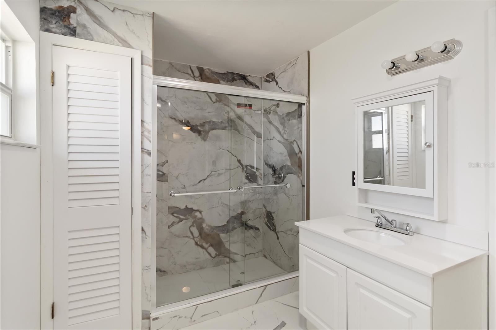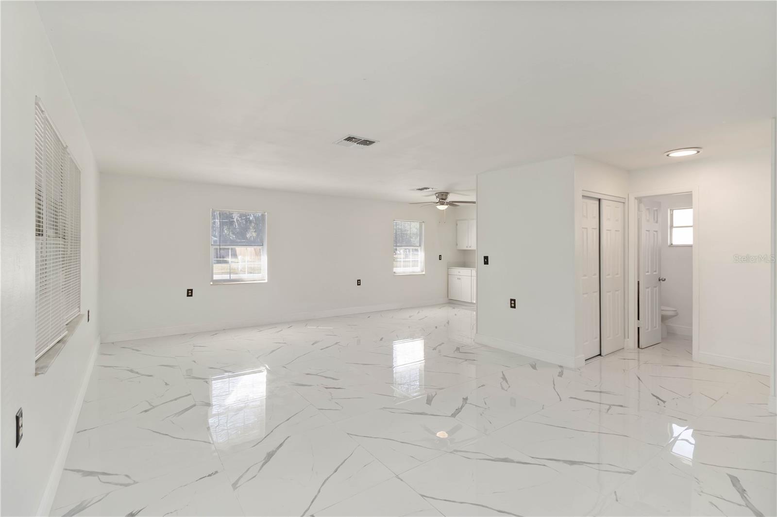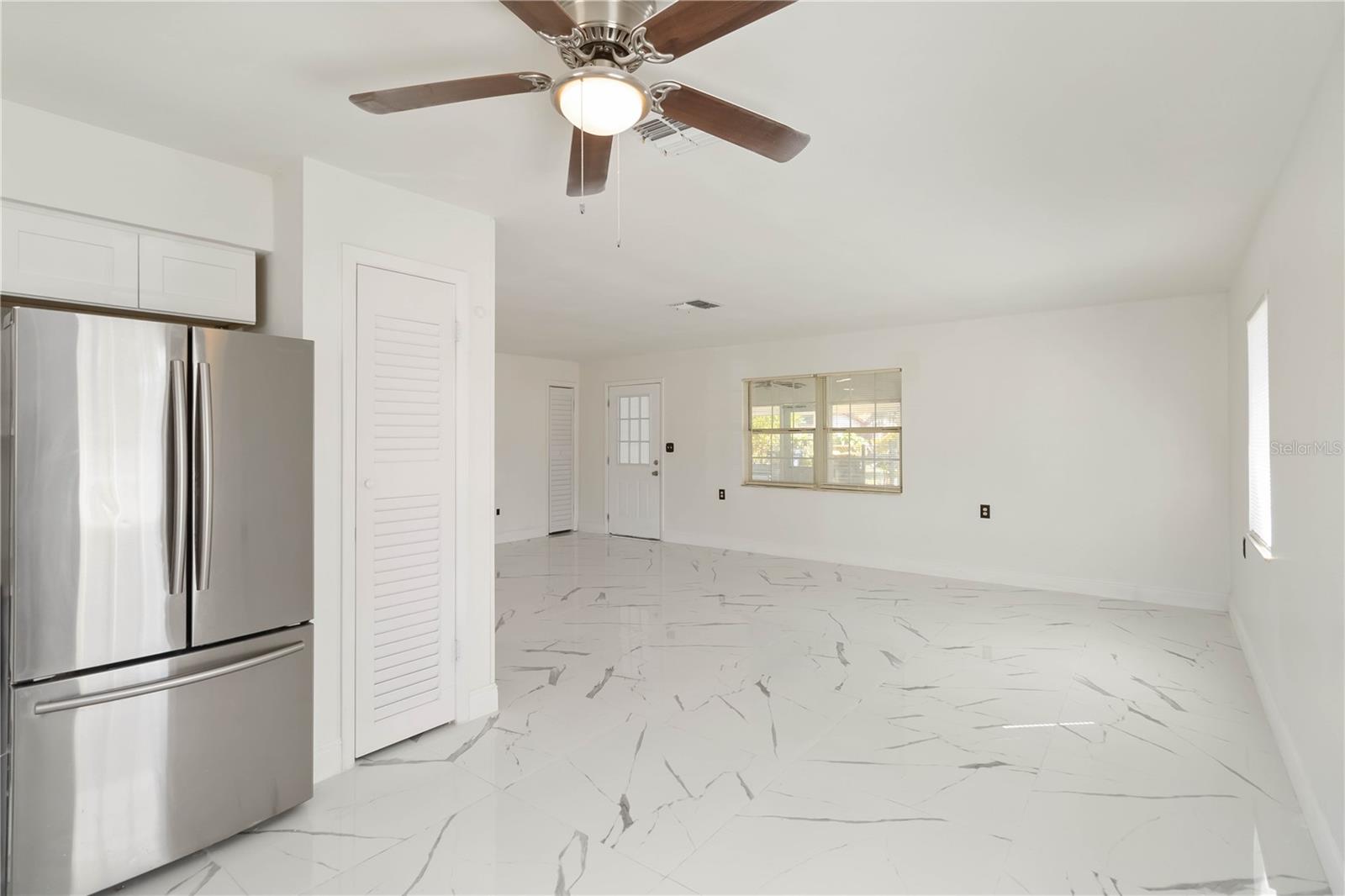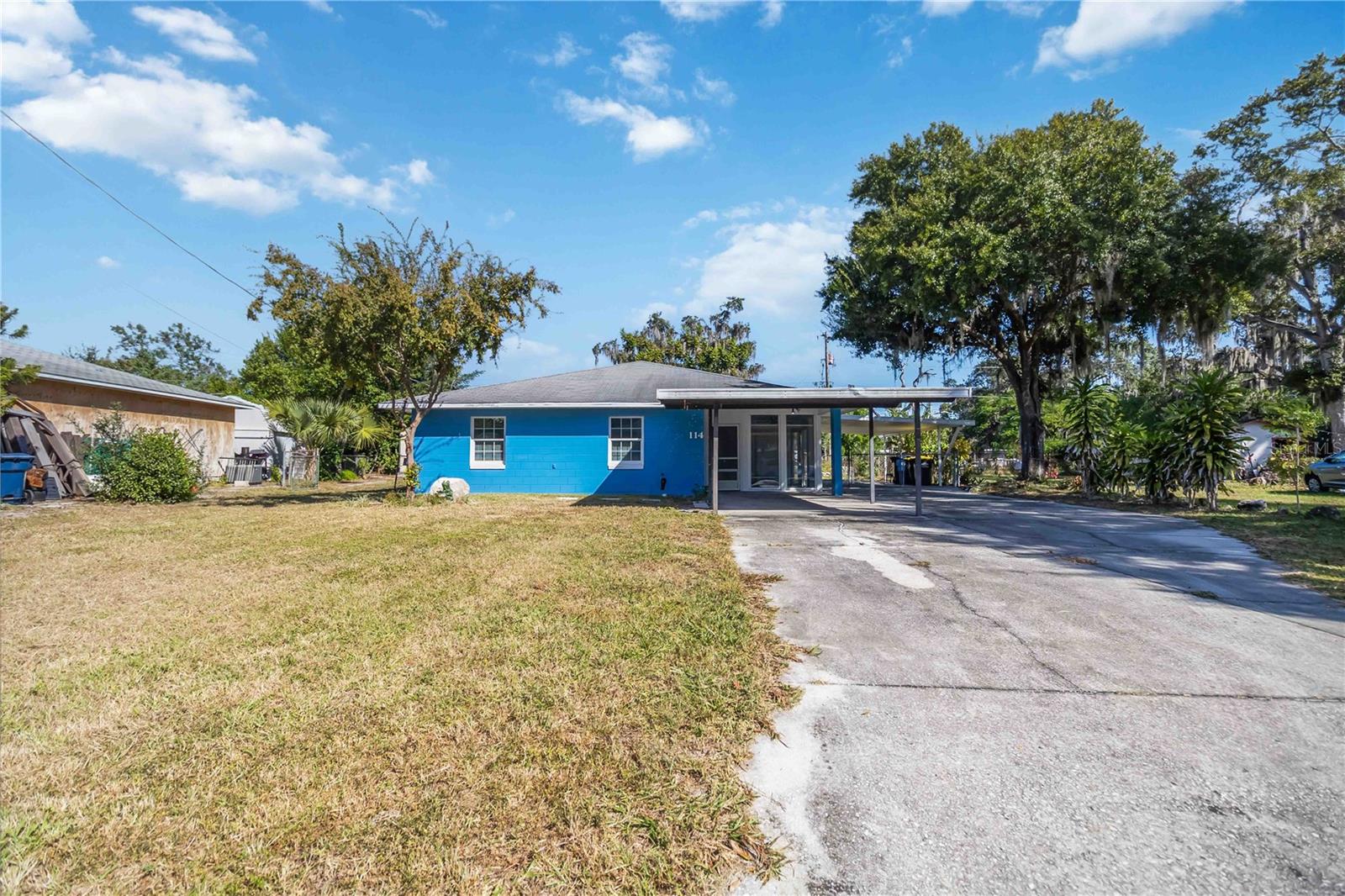 Welcome to 114 Palencia Road, a meticulously updated 3-bedroom, 2-bathroom home with a 2-car carport, set on almost a quarter-acre in the Lena Vista neighborhood of Auburndale—where you’ll enjoy the freedom of no HOA and a prime, walkable location. The home makes an immediate impression with fresh exterior paint, beautiful mature trees, and inviting curb appeal. Step into the enclosed front porch featuring new epoxy flooring, perfect for enjoying your morning coffee or unwinding at the end of the day. Inside, you’ll find every inch thoughtfully renovated, beginning with a spacious living room updated with new porcelain tile flooring, fresh textured walls and ceilings, new blinds, and an open floor plan that flows seamlessly into the dining room and kitchen. The kitchen shines with brand-new stainless steel appliances, shaker-style cabinetry, and a pantry for added storage—ideal for anyone who loves to cook. The primary bedroom includes an ensuite bathroom featuring a glass-framed shower with floor-to-ceiling tile, a new vanity, a new wall cabinet, and a linen closet. Both bathrooms in the home are entirely new, with updated toilets, showers, vanities, and cabinets. Additional features include a new AC system, new interior doors, new ceiling fans, new light fixtures, and a utility room with washer and dryer hookups for added convenience. Through the side entry and carport, you’ll find the large fenced-in backyard, complete with two storage sheds that stay with the home—perfect for tools, lawn equipment, or a workshop setup. This home also boasts a fantastic location, just a short walk to the Lake Ariana Beach Clubhouse with its boat dock and ramp, amphitheater, playground, beach volleyball courts, and picnic areas. You’re minutes from downtown Auburndale’s local events, five minutes from Walmart, and just moments from the Polk Parkway and I-4 for easy travel to Orlando, Tampa, and either coast. Beautifully updated and ready for its next owner, this home is a must-see—schedule your private showing today.