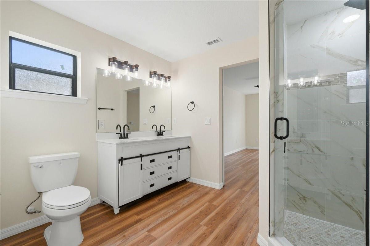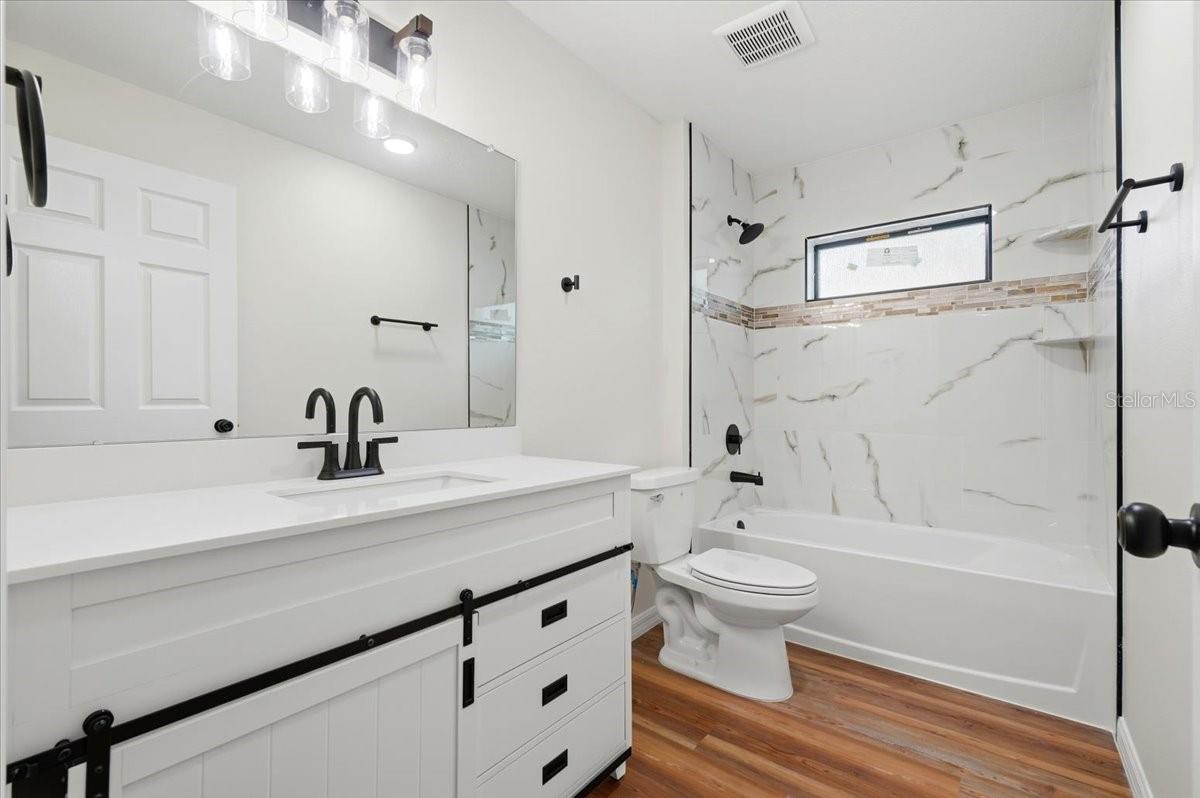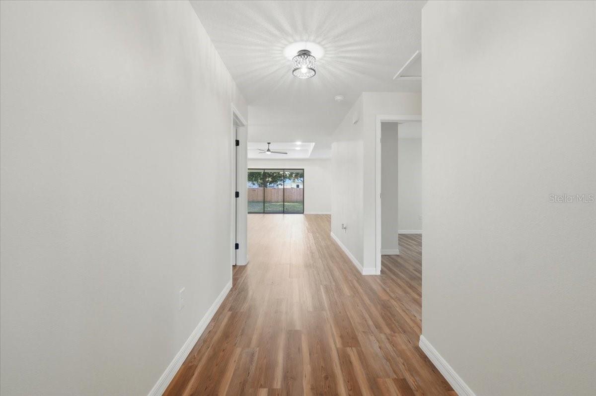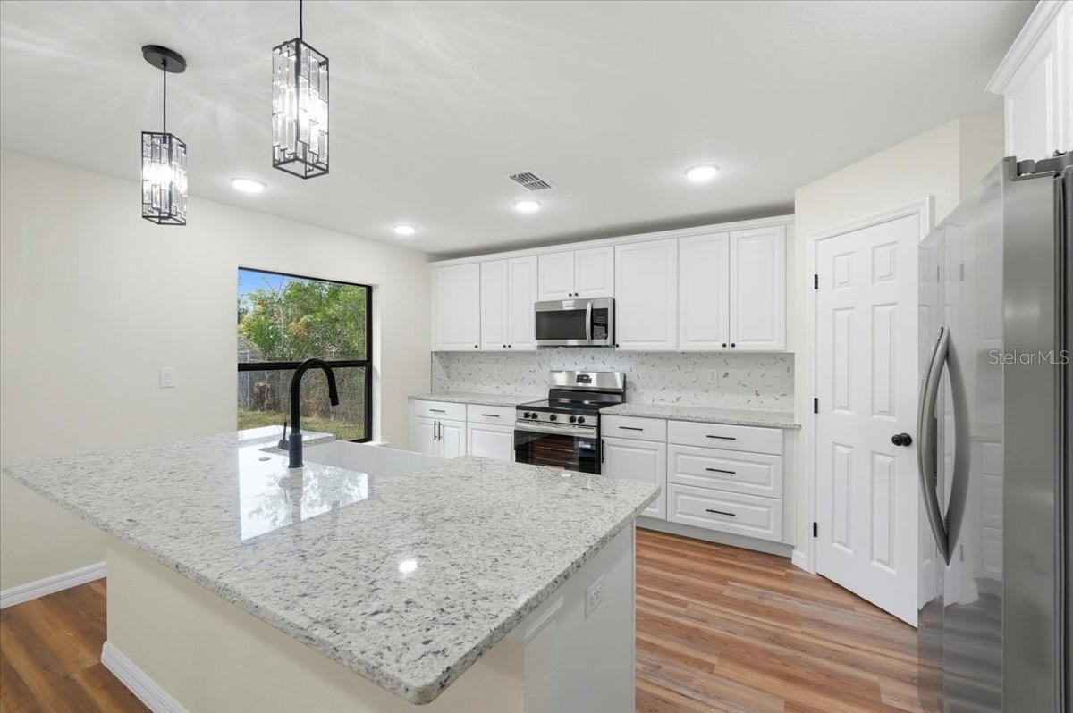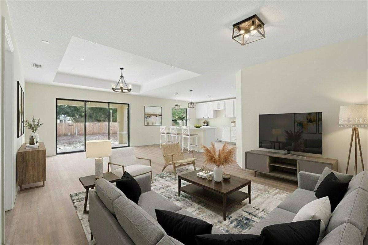One or more photo(s) has been virtually staged. Price Improvement! Move In Ready Welcome to this brand-new, newly completed 2026 custom-built home, centrally situated between Tampa and Orlando in the town of Auburndale, FL, with NO HOA, NO CDD. This thoughtfully designed 3-bedroom, 2-bathroom residence offers modern living with beautiful contemporary finishes and is ready for its new owners. Step into the inviting foyer that opens to two guest bedrooms and a stunning kitchen—the heart of the home. The kitchen features a tile backsplash, granite countertops, brand-new energy-efficient stainless-steel appliances, 36-inch white cabinets with crown molding, a convenient breakfast bar, farmhouse sink, soft-close cabinets and drawers, and a spacious closet pantry—perfect for everyday living and entertaining. The generously sized primary suite includes an en-suite bathroom with stylish barn doors, a walk-in rain shower with built-in bench, quartz double vanity, and an extra-large walk-in closet. The living room showcases tray ceilings and recessed lighting, creating a bright and welcoming atmosphere, and opens through large three-panel sliding glass doors to a fenced backyard with wraparound outdoor lighting for added security. Oversized windows and remote-controlled contemporary ceiling fans are featured throughout the home. Enjoy outdoor living from the covered patio, ideal for relaxing or hosting gatherings. Additional highlights include CentriCom pest control and a two-car garage. This stunning new construction seamlessly combines modern finishes, functional design, and an excellent location. Schedule your private showing today and make this beautiful modern home yours.