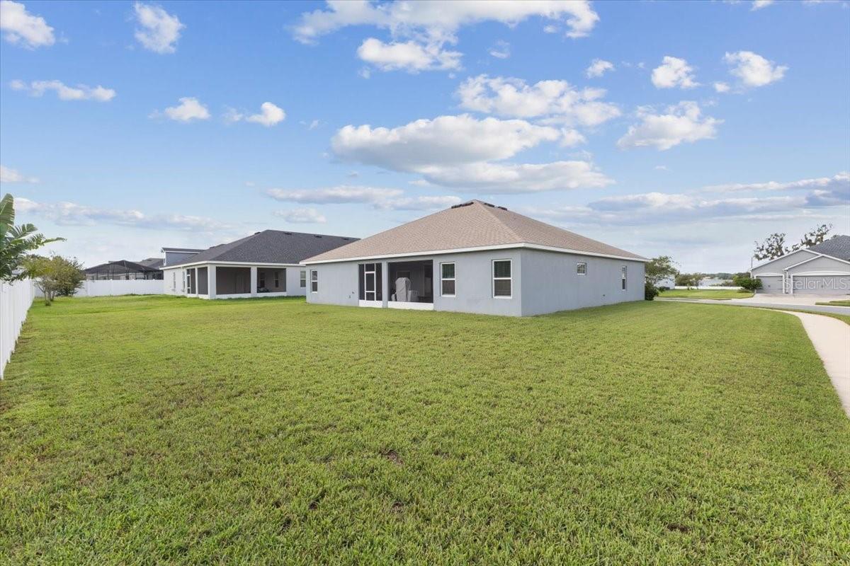 OWNER WILL ASSIST WITH CLOSING COSTS!! Welcome to Juliana Village, a gated Highland Homes community with private ambiance and beautiful, open living areas. This 2021 built home features 2600+ HEATED SQUARE FEET!! 5 BEDROOMS, 3 BATHROOMS, a FLEX ROOM/OFFICE, a wonderfully open floor plan and luxurious features throughout. Set on a beautifully landscaped corner lot with Florida-friendly plantings, and water view from the large front porch, this property boasts impressive curb appeal. This CORNER LOT provides easy access to the backyard to add your ideal pool! A grand double-door entry welcomes you into a light-filled interior with high ceilings, and a spacious, 3-way split-bedroom layout perfect for both everyday living and entertaining. The back bedroom with a private bath and separate entrance to and from the exterior could easily serve as in-law or multi-generational suite. The formal dining area flows seamlessly into the large great room, creating an open and inviting atmosphere. The well-appointed kitchen features, stainless steel appliances, a tasteful backsplash, ample cabinetry, a pantry, and a expansive breakfast bar for casual meals and entertainment. Each bedroom offers generous space, while the primary suite stands out with its massive walk-in closet and private, ensuite bathroom complete with a hydro-spa tub, walk-in shower, and dual sink vanity. Rear of home includes a screened-in patio for year-round enjoyment. Auburndale provides small-town living near Orlando and Tampa. The home is centrally located in the Lakes District, surrounded by six lakes, parks, shops, restaurants, trails, and natural areas—all within walking or biking distance. Outdoor enthusiasts will appreciate access to six boatable lakes in the area, offering opportunities for kayaking, fishing, and enjoying the water. Schedule a private tour today.