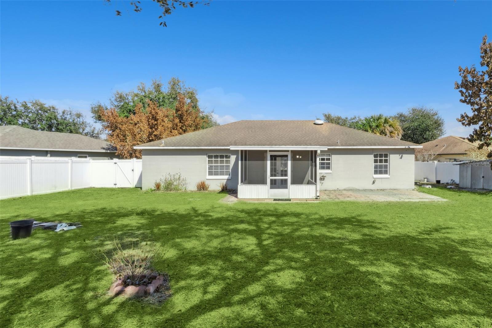 Fantastic opportunity to own this beautiful 3-bedroom, 2-bath home with a 2-car garage, Huge fully fenced backyard, and NO HOA!!! Move-in ready, this home offers both comfort and style. Step inside to find modern tile flooring throughout and an updated kitchen featuring solid wood cabinets, ample counter space, stainless steel appliances, and an open layout that flows seamlessly into the living room area, perfect for entertaining and everyday living. The split-bedroom floor plan provides privacy for everyone. The spacious Master bedroom includes a walk-in closet and a private master bath. Step outside to your covered lanai — the perfect spot to relax while enjoying beautiful sunsets and panoramic backyard views. It is conveniently located just minutes from downtown Auburndale with quick access to I-4, for an easy commute to both Orlando and Tampa areas. A must-see property! All measurements, sizes, and information are deemed reliable but should be independently verified. Schedule your private showing today.