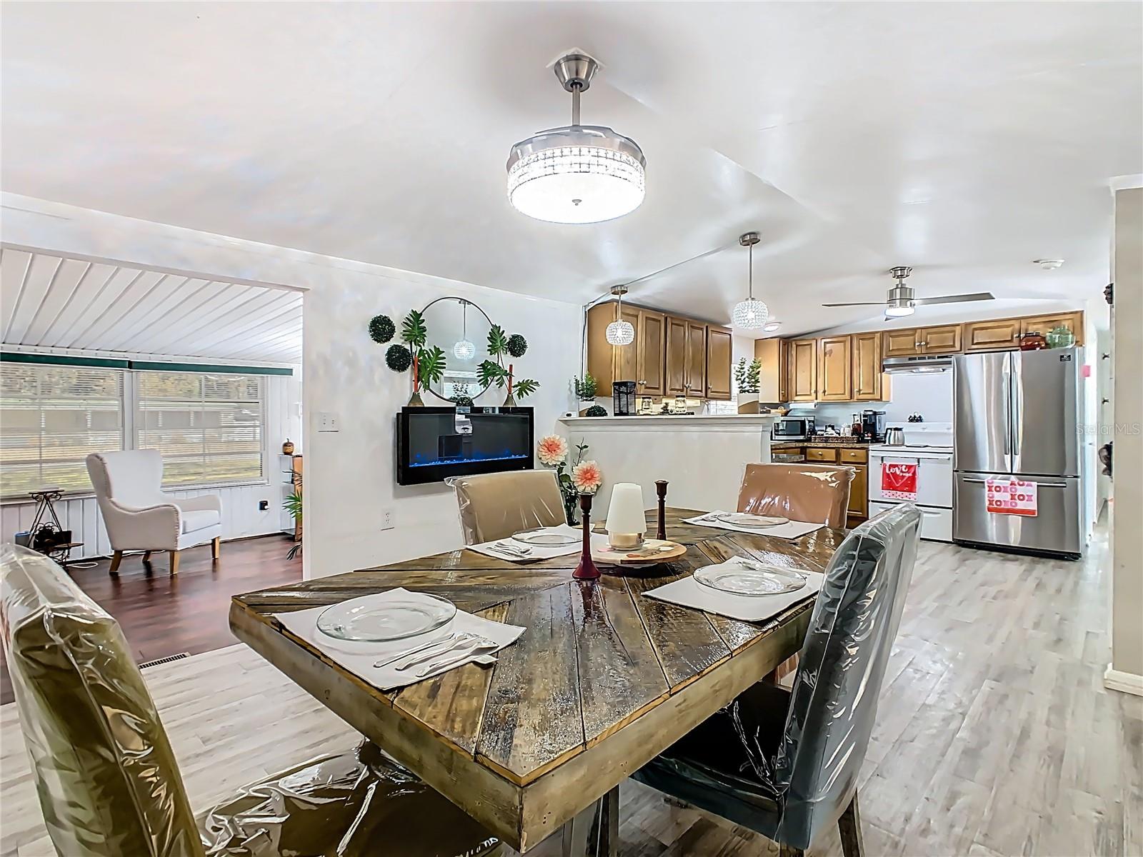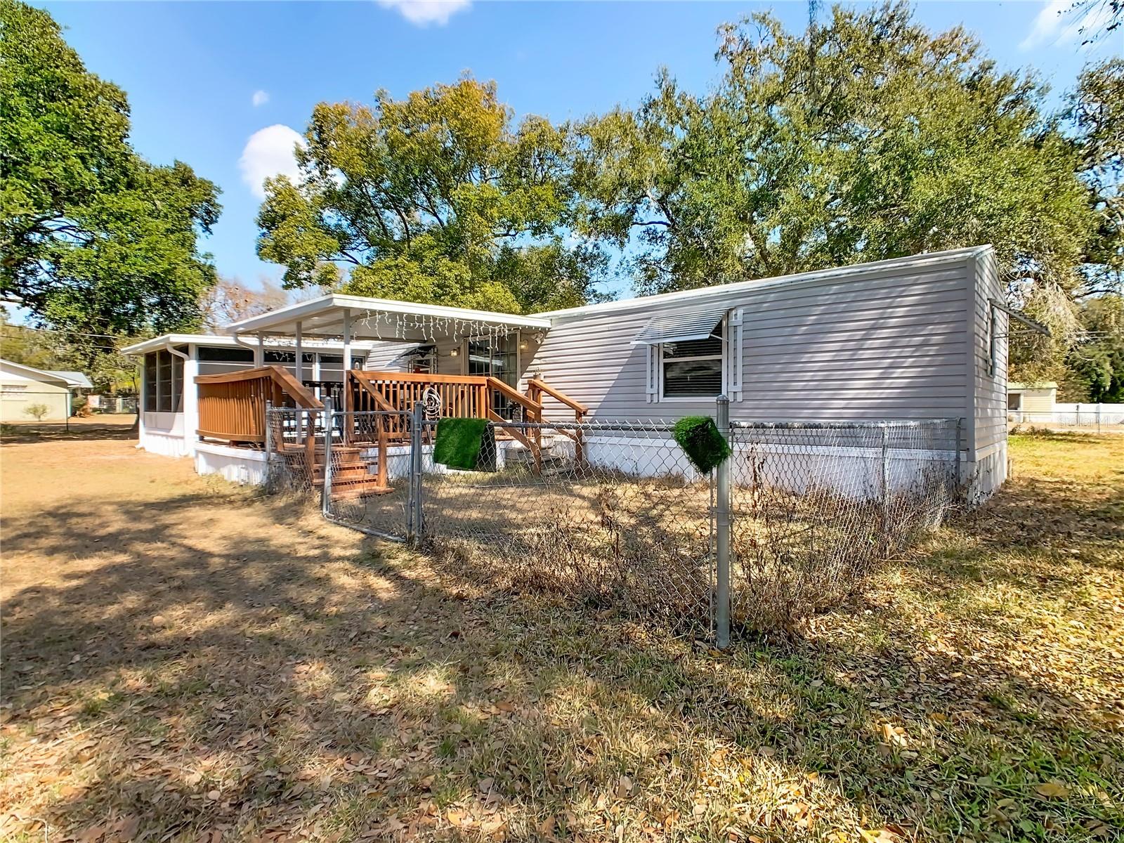 This 2-bedroom, 2-bath manufactured home offers a functional layout including a living area, kitchen with eat-in space, and a separate dining area. Covered rear deck provides additional outdoor living space. Laundry addition completed. Recent improvements include plumbing upgraded from polybutylene to PEX (approx. 2025), electrical panel updated with two additional breakers installed (approx. 2025), vinyl flooring installed approximately 2020, and new ceiling fans and light fixtures installed approximately 2024. Exterior professionally cleaned using pressure equipment in January 2026.Spacious lot of approximately half an acre with no HOA, located on a low-traffic cul-de-sac with convenient access to Old Dixie Hwy and nearby town amenities.