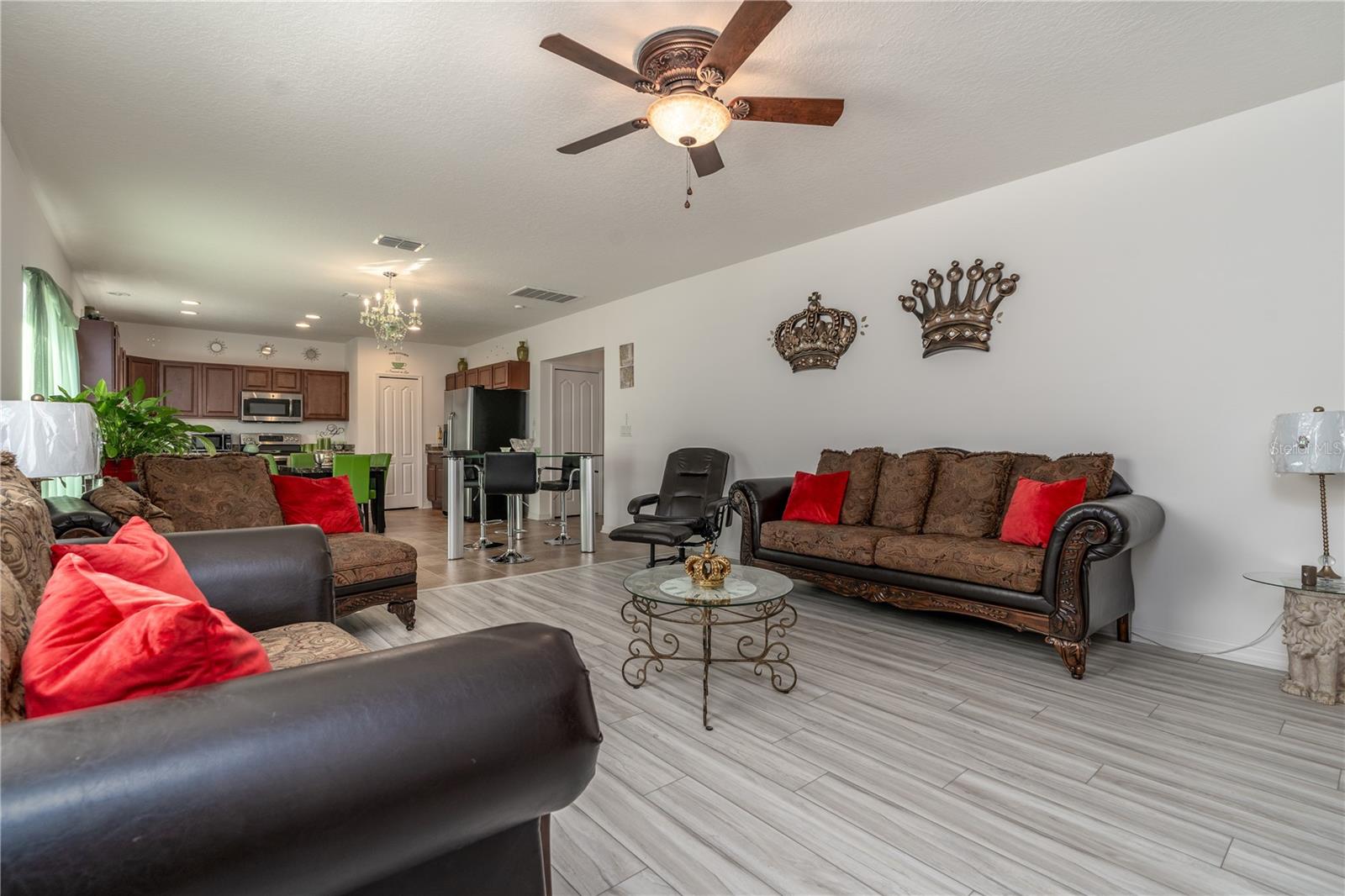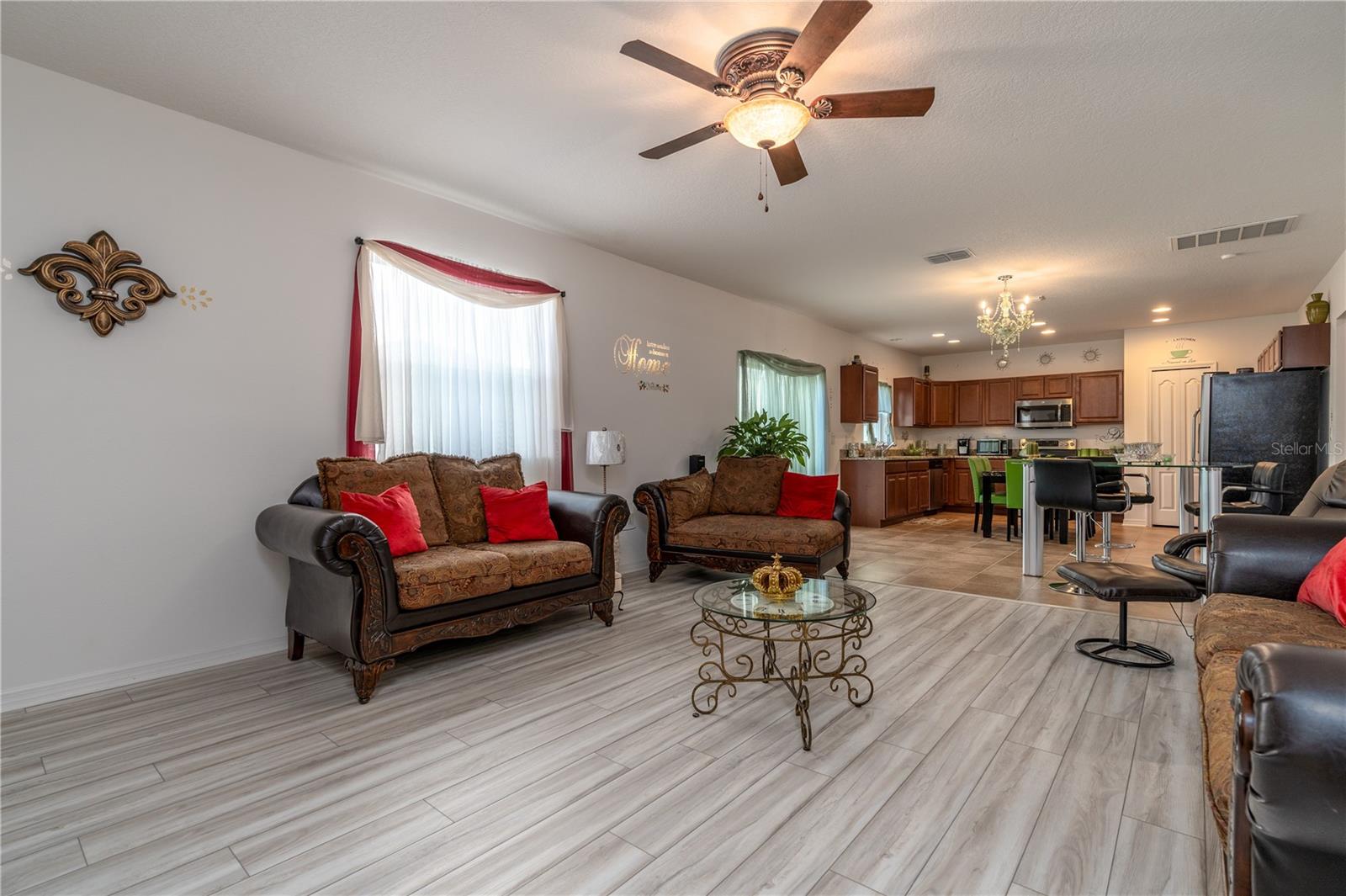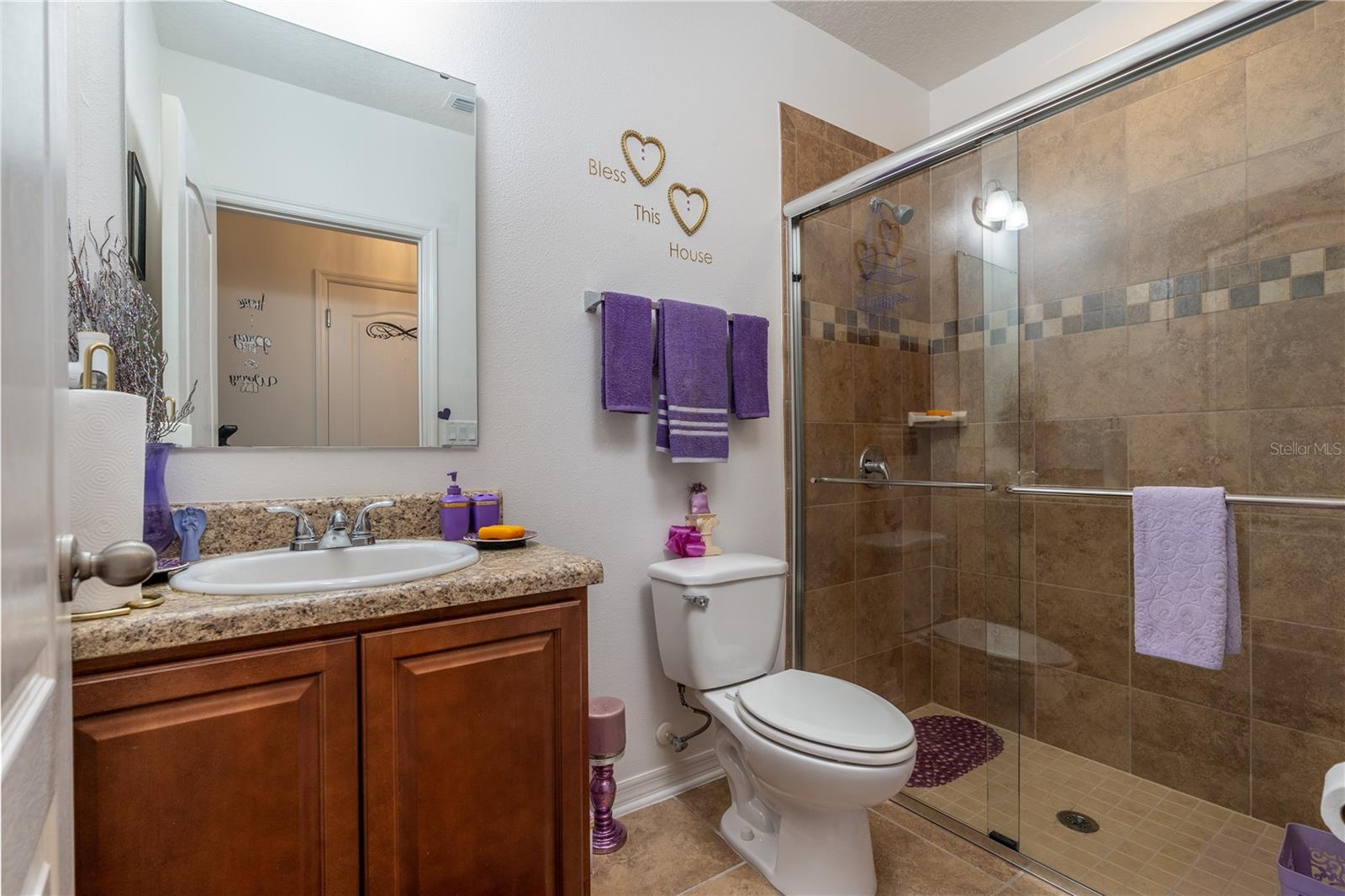Back on the market and PRICE REDUCED!!! Welcome home!! As you pull up you'll immediately be captured by the lovely curb appeal that borders the unique landscaping which nestles inside the decorative concrete curbing. No reason to wait on new construction, as this home is an IMPECCABLY maintained 5 bedroom, 4 full bathroom residence offering 3,100 sq. ft. of luxurious spacious living in the heart of Auburndale, in lovely Berkley Ridge. Step inside to discover new luxury vinyl flooring in the living areas and family room downstairs along with plush new carpet upstairs, creating a warm and inviting atmosphere. The spacious great room seamlessly flows into a modern kitchen featuring granite countertops, perfect for family gatherings or entertaining guests! The master suite is a true retreat, boasting a STAND ALONE TUB and a WALK IN SHOWER, ensuring a spa-like experience right at home and completed with a great walk in closet. With the LAUNDRY ROOM conveniently located on the SECOND FLOOR, chores become a breeze. Entertainment enthusiasts will love the DEDICATED MEDIA ROOM, ready for movie nights or gaming marathons. Outside enjoy a GREAT YARD enclosed by vinyl fencing, complete with an oversized concrete patio, ideal for cookouts and gatherings with family and friends. The property features gutters and a French drain system to effectively manage water runoff, ensuring dry and pristine landscape. Additional highlights include - UV light technology and a whole house air purifier HVAC system on the A/C to kill germs and viruses, whole house water filtration unit, A/C surge protector, termite bait system in place, TAEXX in wall pest control system, a wifi thermostat, door bell camera, outside and inside cameras for peace of mind. For added storage, out back you'll find a shed for all your gardening tools and outdoor gear. Also, for more added convenience you'll find lighting on the gates leading to the back yard on both sides of the house as well as on the shed and new modern lighting to highlight the garage which ties it all together. Pride of ownership shows in this home!