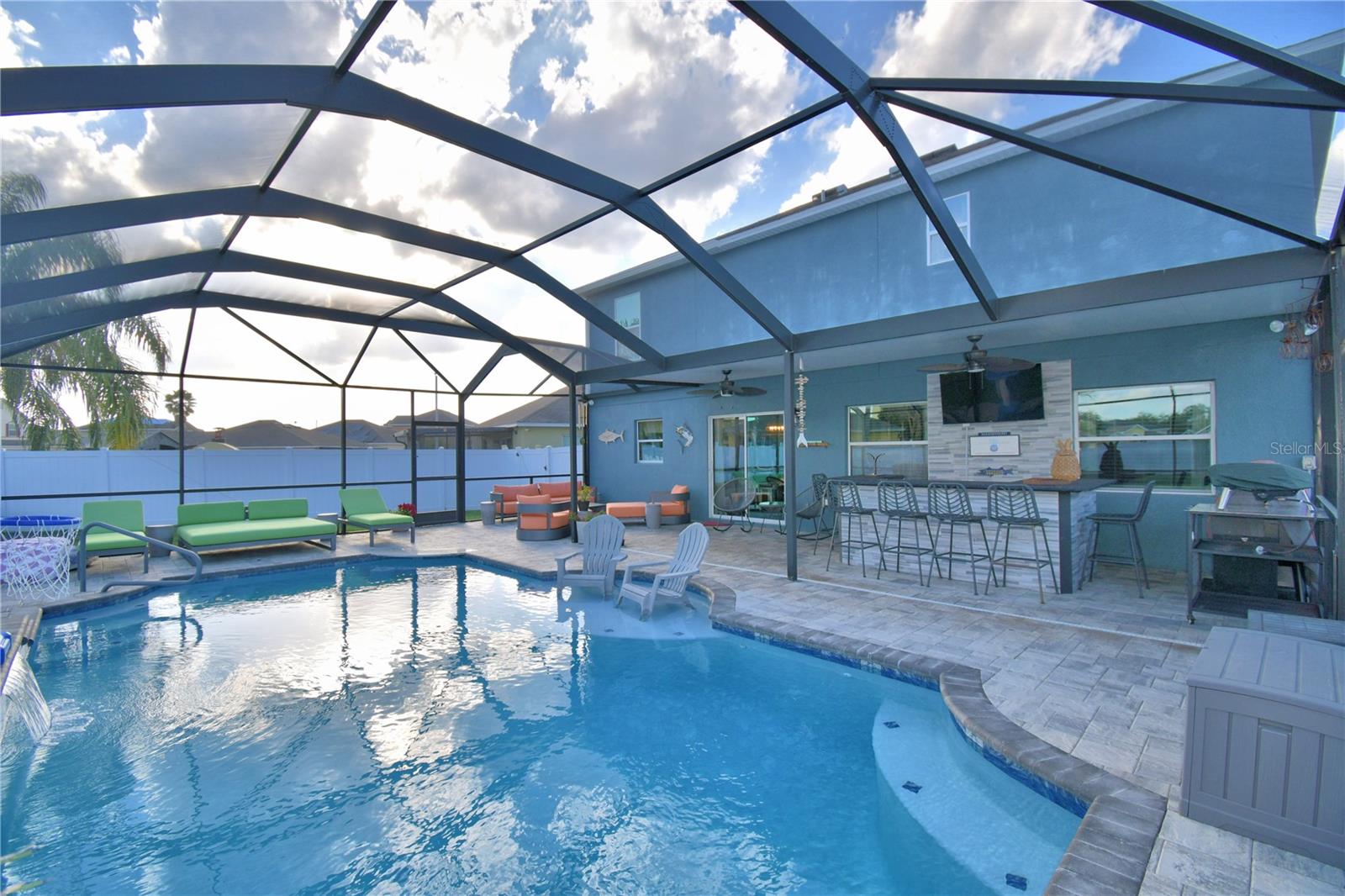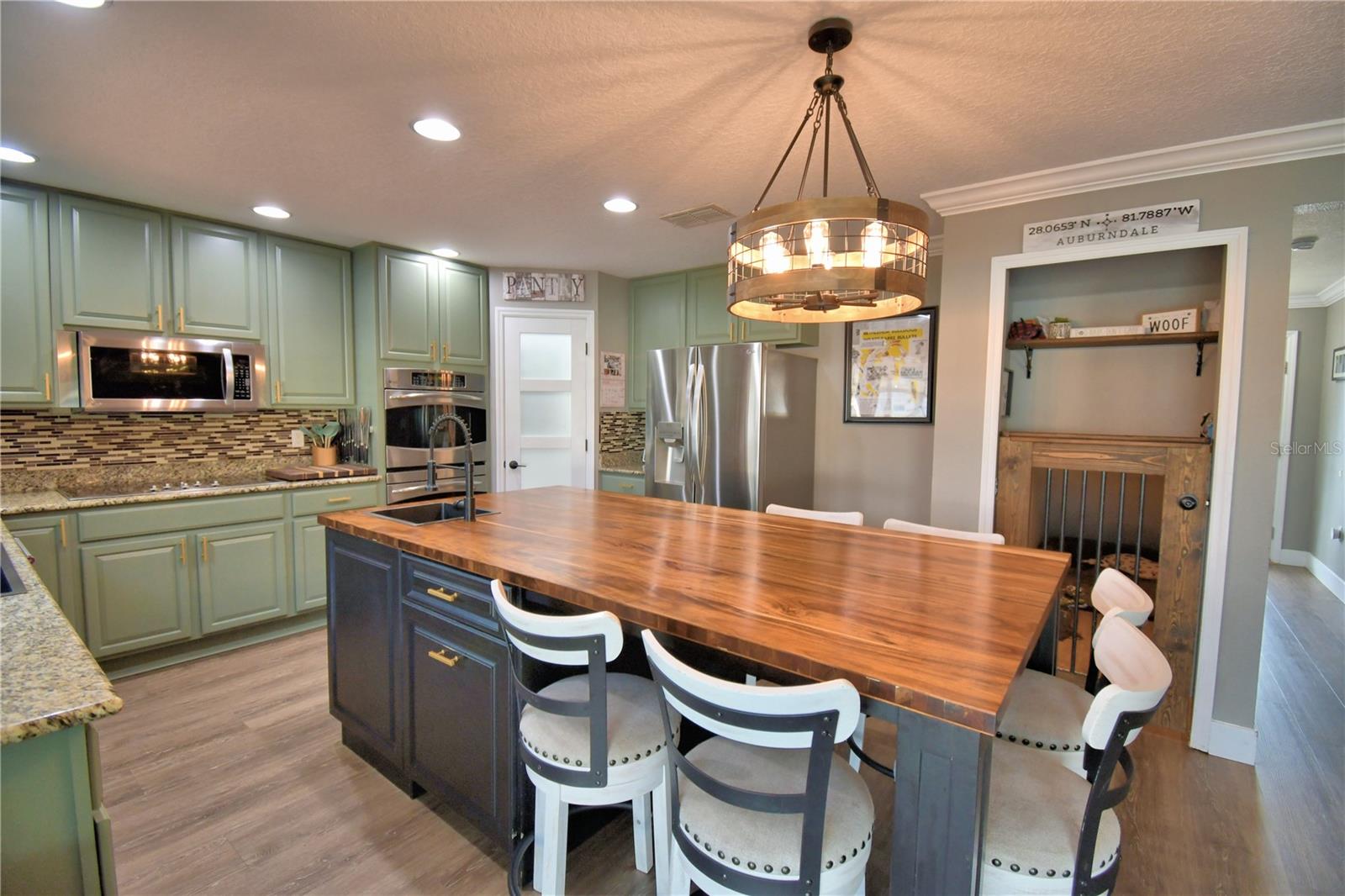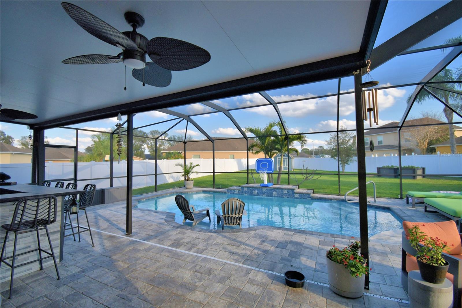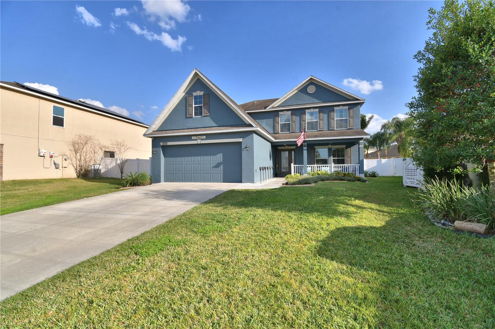 Welcome to the stunning 1072 Bethpage Rd in the desirable Auburndale! This beautifully updated two-story home, freshly painted inside just last year, features a floor plan designed for both comfortable living and entertaining. On the first floor, you’ll find a welcoming study, a cozy bedroom (without a closet), a convenient half bath, and a custom mudroom off the garage. The spacious great room, dining area, and chef-inspired kitchen flow effortlessly together, creating the perfect space for gatherings. The kitchen is a true highlight, complete with an expansive walk-in butler’s pantry featuring custom-built cabinetry, solid poplar floating shelves, and sleek quartz countertops. The oversized kitchen sink adds practicality and style. The cabinetry was professionally refinished just six months ago, offering a fresh and modern look. A custom-built kitchen island with seating for six features a handmade acacia wood butcher block top, perfect for both cooking and casual dining. Island also includes a prep sink. The entire first floor has been upgraded with brand-new, high-quality vinyl plank flooring that’s both waterproof and scratch-resistant, while elegant 5-inch baseboards add a refined touch throughout. Upstairs, you’ll find four spacious bedrooms, a hall bath, and al master suite with a private bathroom and a generously sized walk-in closet. The convenient laundry room completes the second floor. Step outside to your private outdoor haven—an expansive, fully fenced backyard with a screened-in saltwater pool and lanai. The pool area features a chic bar, in-water stools, a sunbathing ledge, and a relaxing fountain. The backyard also includes a shed for extra storage. Conveniently located to Berkley’s charter school and BAMS with a community access gate. This home offers both comfort and convenience with easy access to I-4 and the Polk Parkway, this upgraded pool home is ready for you to make it yours! * Refrigerator in garage does not convey