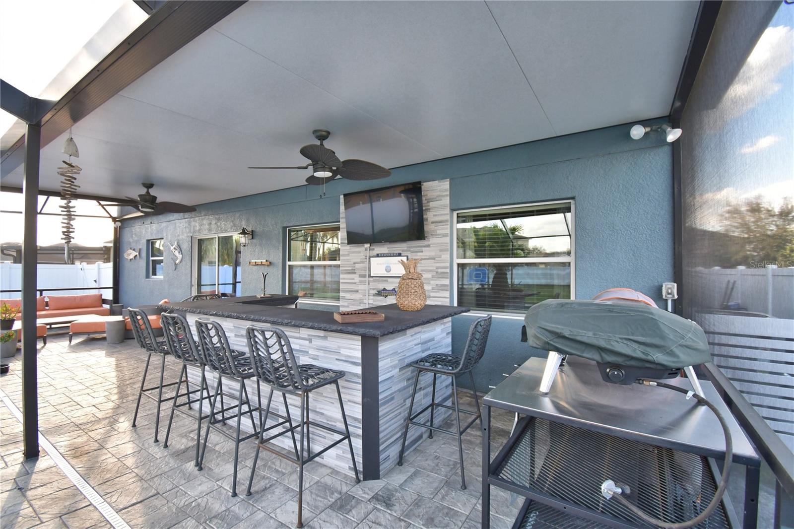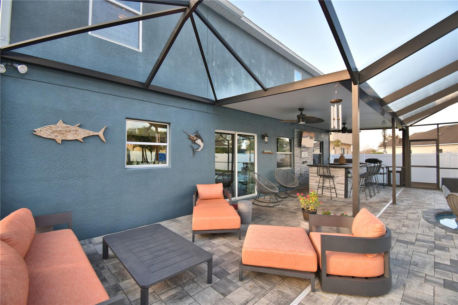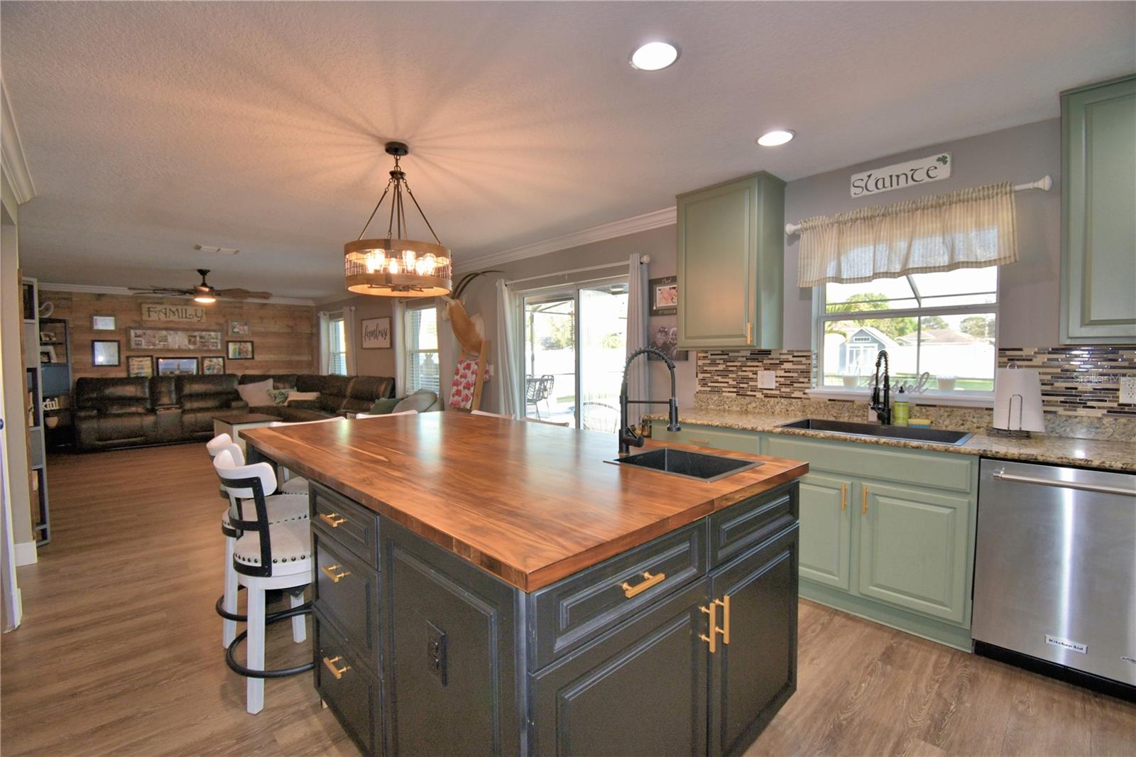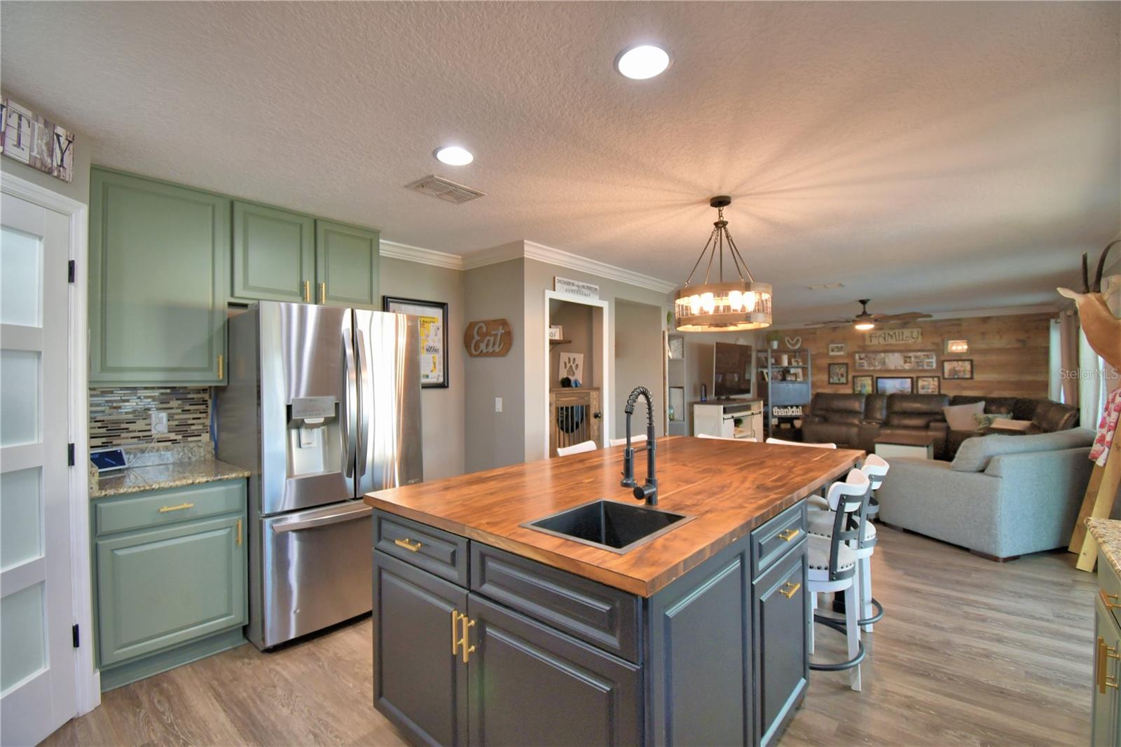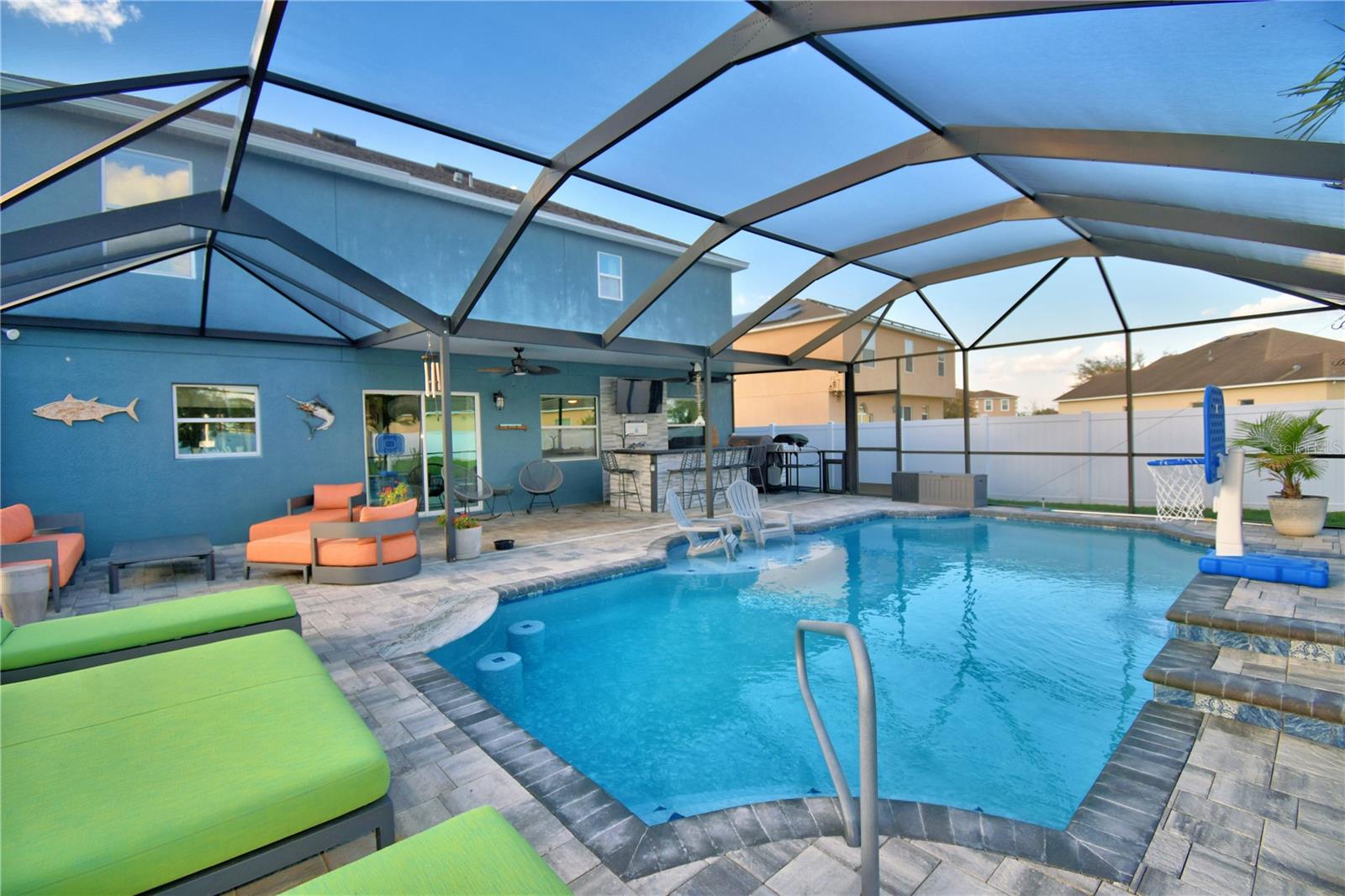 Welcome to the stunning 1072 Bethpage Rd in the desirable Auburndale! This beautifully updated two-story home, freshly painted inside just last year, features a floor plan designed for both comfortable living and entertaining. On the first floor, you’ll find a welcoming study, a cozy bedroom (without a closet), a convenient half bath, and a custom mudroom off the garage. The spacious great room, dining area, and chef-inspired kitchen flow effortlessly together, creating the perfect space for gatherings. The kitchen is a true highlight, complete with an expansive walk-in butler’s pantry featuring custom-built cabinetry, solid poplar floating shelves, and sleek quartz countertops. The oversized kitchen sink adds practicality and style. The cabinetry was professionally refinished just six months ago, offering a fresh and modern look. A custom-built kitchen island with seating for six features a handmade acacia wood butcher block top, perfect for both cooking and casual dining. Island also includes a prep sink. The entire first floor has been upgraded with brand-new, high-quality vinyl plank flooring that’s both waterproof and scratch-resistant, while elegant 5-inch baseboards add a refined touch throughout. Upstairs, you’ll find four spacious bedrooms, a hall bath, and al master suite with a private bathroom and a generously sized walk-in closet. The convenient laundry room completes the second floor. Step outside to your private outdoor haven—an expansive, fully fenced backyard with a screened-in saltwater pool and lanai. The pool area features a chic bar, in-water stools, a sunbathing ledge, and a relaxing fountain. The backyard also includes a shed for extra storage. Conveniently located to Berkley’s charter school and BAMS with a community access gate. This home offers both comfort and convenience with easy access to I-4 and the Polk Parkway, this upgraded pool home is ready for you to make it yours! * Refrigerator in garage does not convey