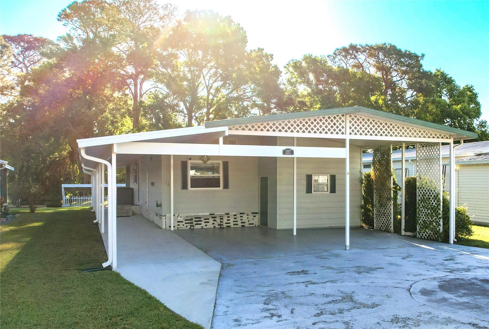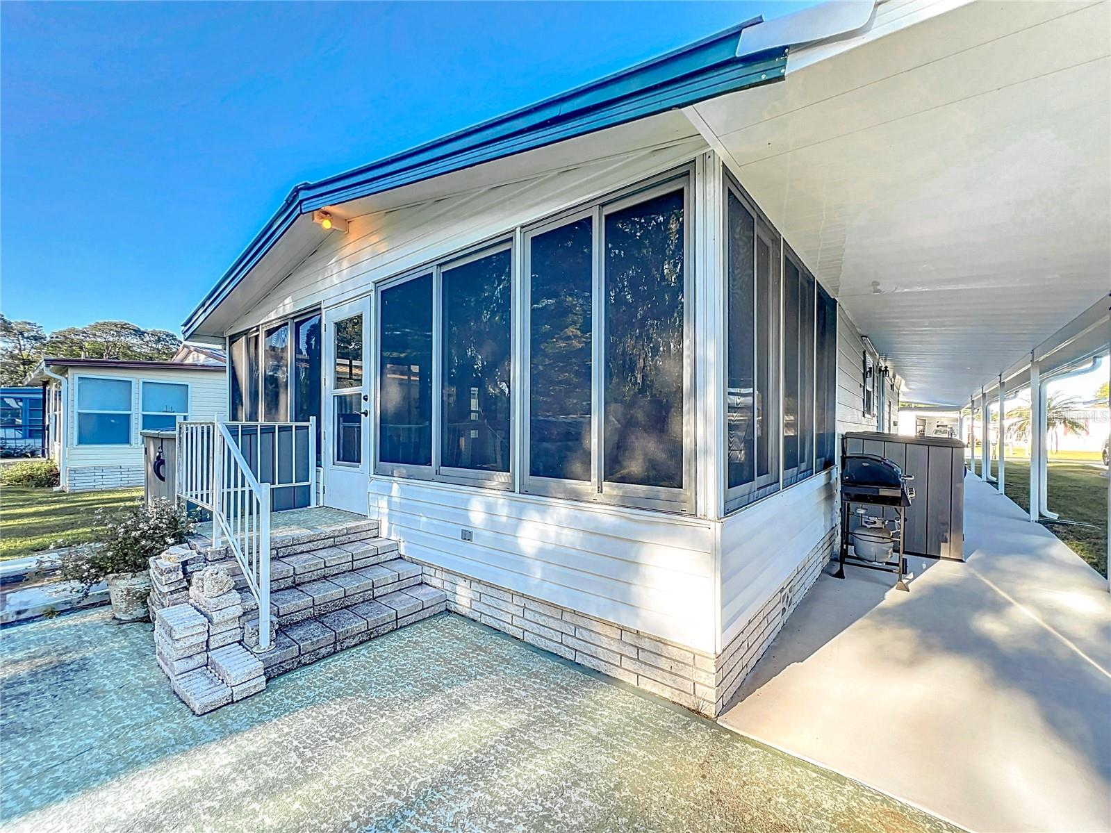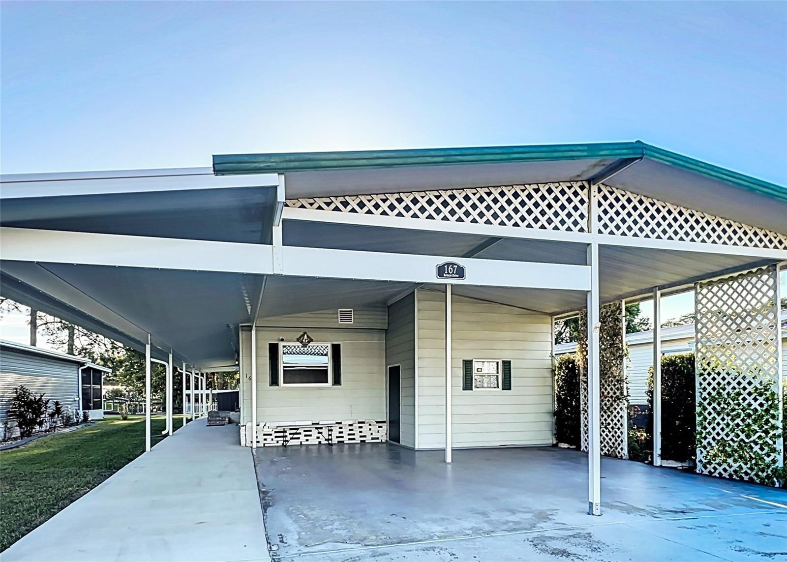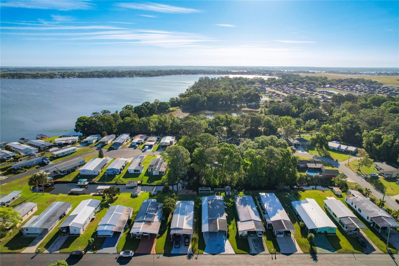 The envy of all homes in this 55+ Lakefront Community! Low HOA, only $39 month. This Open Floor plan home has been totally gutted and remodeled! Sellers planned on making it their forever home but must relocate. This prized possession could be yours! The subflooring has been replaced with ¾ inch Plywood and covered with Lifetime Laminate flooring. The electrical service is also brand new and the sellers had a Generator Connection installed directly into the Breaker Box. Kitchen has been enlarged and modernized. The room right next to the entrance with the beautiful Barn Door is currently being used as an office, but it can be a craft room, Pantry, storage, whatever your heart desires. All new cabinets, Pantry with pull-outs along with several other pull-outs in the Kitchen. Tiled Back Splash, Coffee Bar and Quartz countertops. While you’re enjoying your breakfast/dinner you can spot some wildlife in the woods across the canal. Microwave and Range are brand new-installed March '25. The Ceiling has been covered with Armstrong Tongue and groove ceiling planks. All new lighting and plumbing fixtures throughout. 1100 Sq Ft of Florida room with sliding windows, carpeting and a ceiling fan to use year-round. The home has been releveled with new piers, the underlaying sheeting has been recovered with Polypropylene and in 2023 new Hurricane Tie-downs have been installed. The exterior walls have been insulated with foam insulation. Most of the windows have been replaced with Impact rated Low E rating, except for the kitchen windows connected to the Florida room. Three Panel Craftsman doors plus a Barn door installed throughout. Both bathrooms have new walk-in showers and sliding Glass doors, Vanities, storage space and all new fixtures; the guest bath has a linen closet too. Primary Bath has the top of the line all in one Washer/dryer combo. Primary Bedroom has a large walk-in closet with plenty of storage. The hot water heater was replaced less than 2 years ago. The Shed is attached and spacious with electric and shelving. Additional 10 feet by 72 feet of roof coverage was added to the large carport; great space to add a screened-in porch if you choose. The Driveway has plenty of room for several vehicles. Roof and A/C were replaced by the previous owner back in 2018-2019. The seawall is made of Pressure Treated wood. The stairs to the Dock need to be rebuilt. This lakefront community is located on a Dead-end Street with 2 entrances, it has a dock, boat ramp, Shuffleboard and Clubhouse with activities. There is secure storage for your RV and extra boating equipment. Shopping, entertainment is easily accessed by the main roads just minutes from the community.