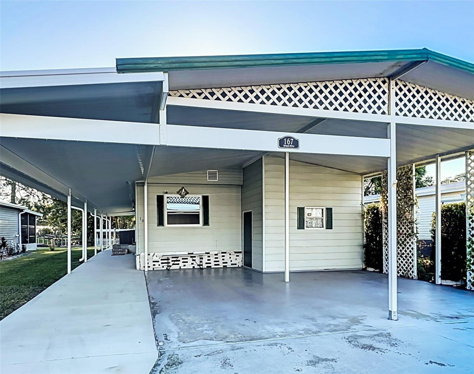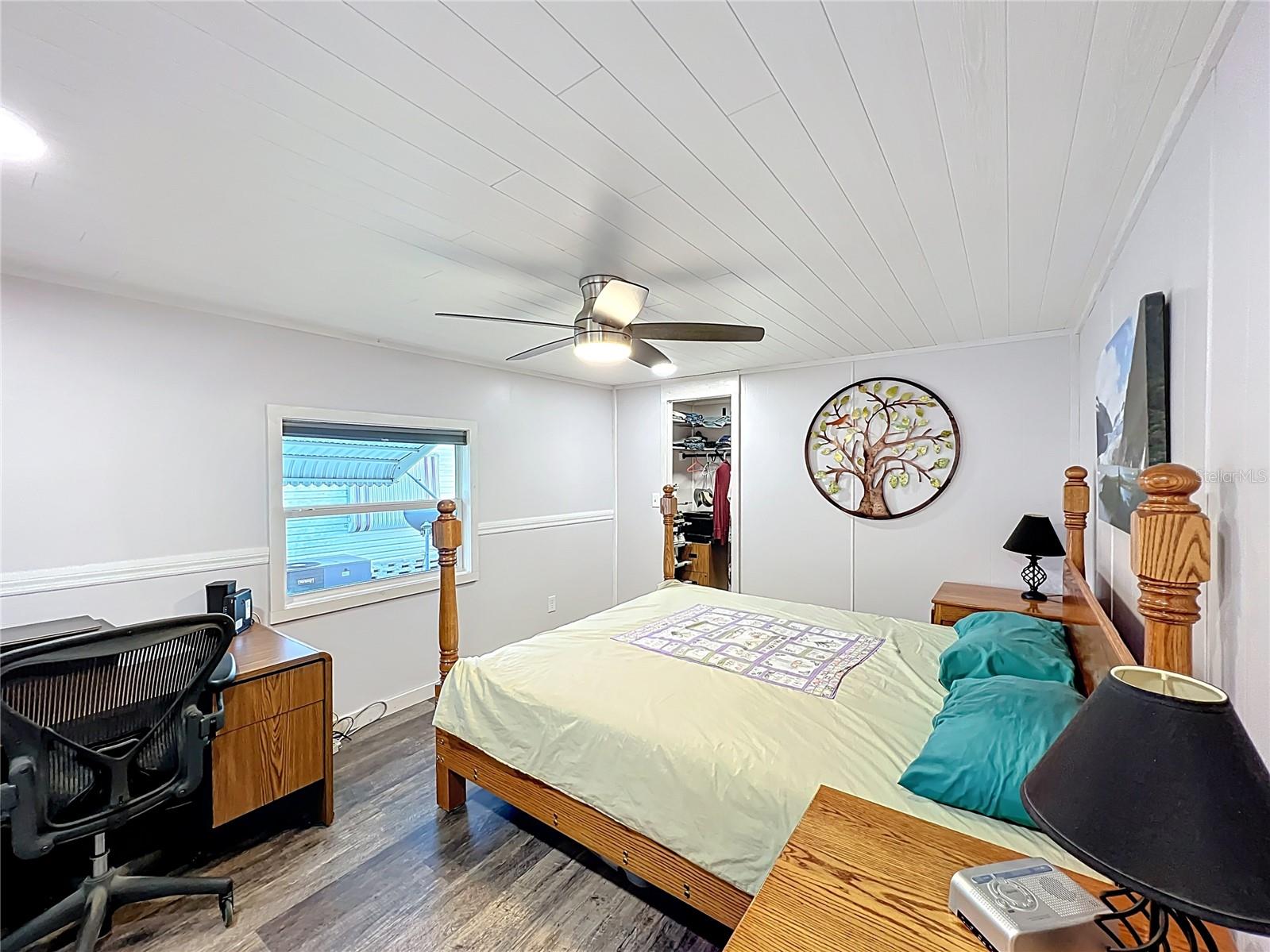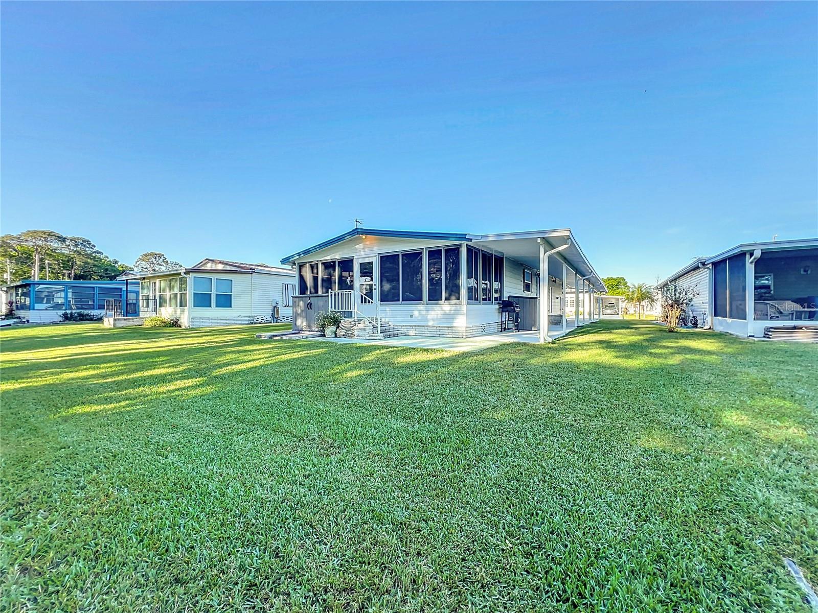 The envy of all homes in this 55+ Lakefront Community! Low HOA, only $39 month. This Open Floor plan home has been totally gutted and remodeled! Sellers planned on making it their forever home but must relocate. This prized possession could be yours! The subflooring has been replaced with ¾ inch Plywood and covered with Lifetime Laminate flooring. The electrical service is also brand new and the sellers had a Generator Connection installed directly into the Breaker Box. Kitchen has been enlarged and modernized. The room right next to the entrance with the beautiful Barn Door is currently being used as an office, but it can be a craft room, Pantry, storage, whatever your heart desires. All new cabinets, Pantry with pull-outs along with several other pull-outs in the Kitchen. Tiled Back Splash, Coffee Bar and Quartz countertops. While you’re enjoying your breakfast/dinner you can spot some wildlife in the woods across the canal. Microwave and Range are brand new-installed March '25. The Ceiling has been covered with Armstrong Tongue and groove ceiling planks. All new lighting and plumbing fixtures throughout. 1100 Sq Ft of Florida room with sliding windows, carpeting and a ceiling fan to use year-round. The home has been releveled with new piers, the underlaying sheeting has been recovered with Polypropylene and in 2023 new Hurricane Tie-downs have been installed. The exterior walls have been insulated with foam insulation. Most of the windows have been replaced with Impact rated Low E rating, except for the kitchen windows connected to the Florida room. Three Panel Craftsman doors plus a Barn door installed throughout. Both bathrooms have new walk-in showers and sliding Glass doors, Vanities, storage space and all new fixtures; the guest bath has a linen closet too. Primary Bath has the top of the line all in one Washer/dryer combo. Primary Bedroom has a large walk-in closet with plenty of storage. The hot water heater was replaced less than 2 years ago. The Shed is attached and spacious with electric and shelving. Additional 10 feet by 72 feet of roof coverage was added to the large carport; great space to add a screened-in porch if you choose. The Driveway has plenty of room for several vehicles. Roof and A/C were replaced by the previous owner back in 2018-2019. The seawall is made of Pressure Treated wood. The stairs to the Dock need to be rebuilt. This lakefront community is located on a Dead-end Street with 2 entrances, it has a dock, boat ramp, Shuffleboard and Clubhouse with activities. There is secure storage for your RV and extra boating equipment. Shopping, entertainment is easily accessed by the main roads just minutes from the community.