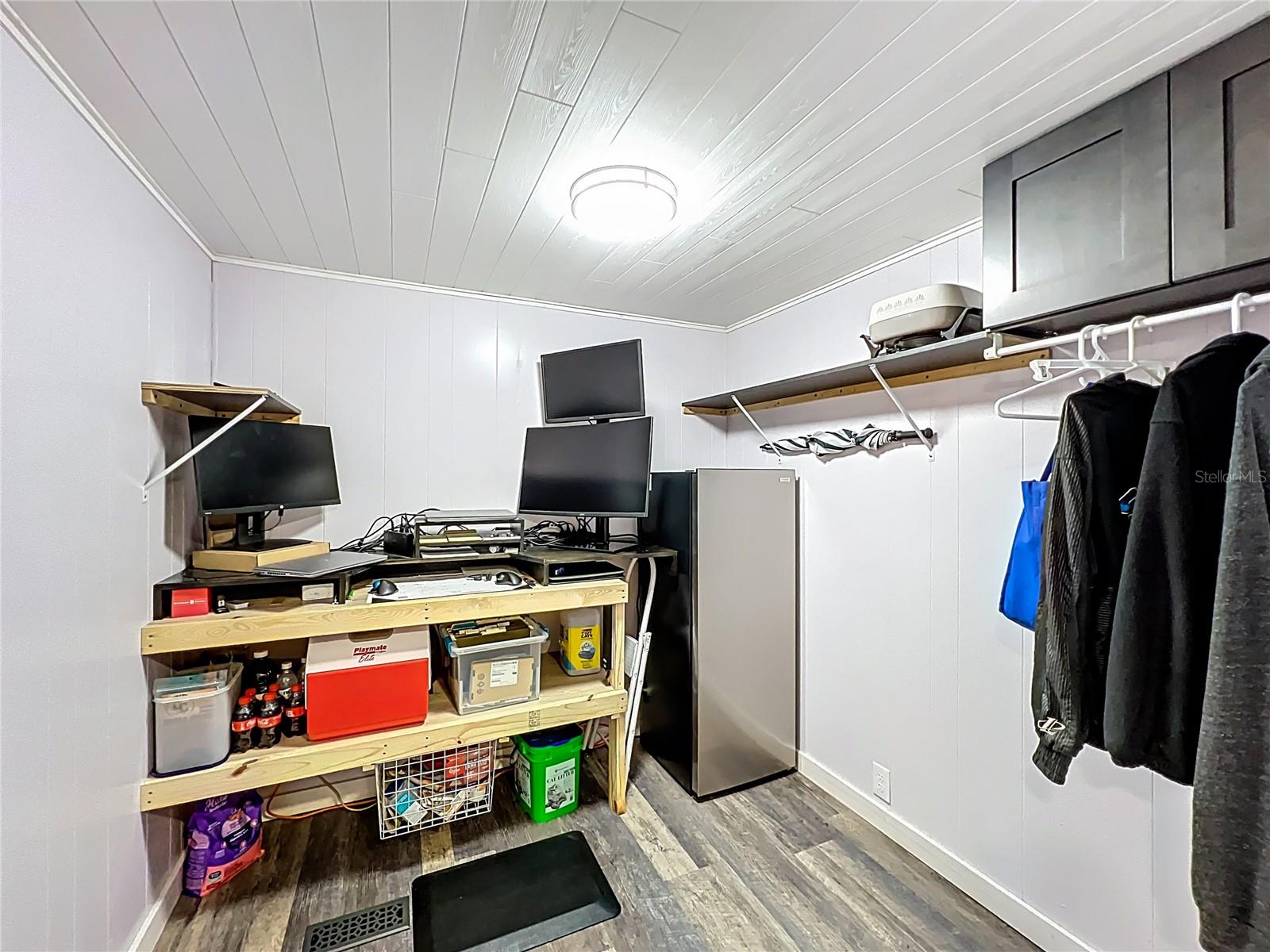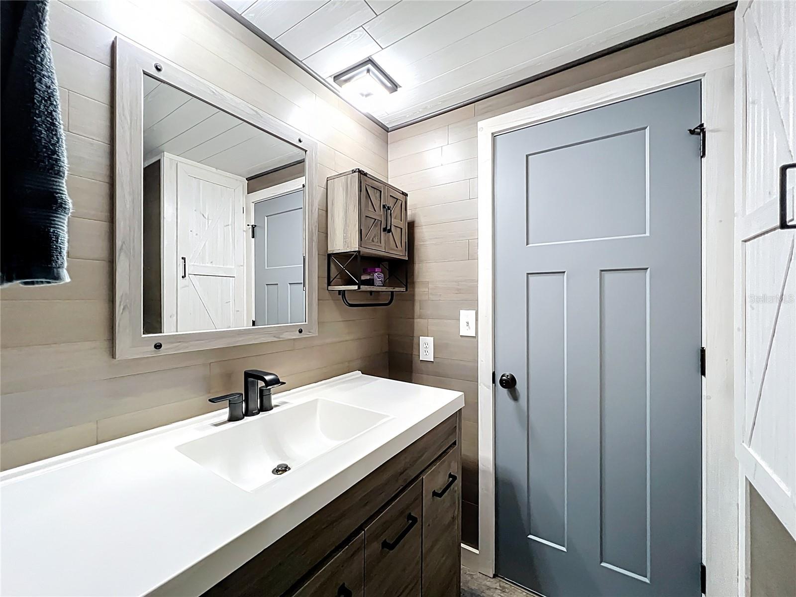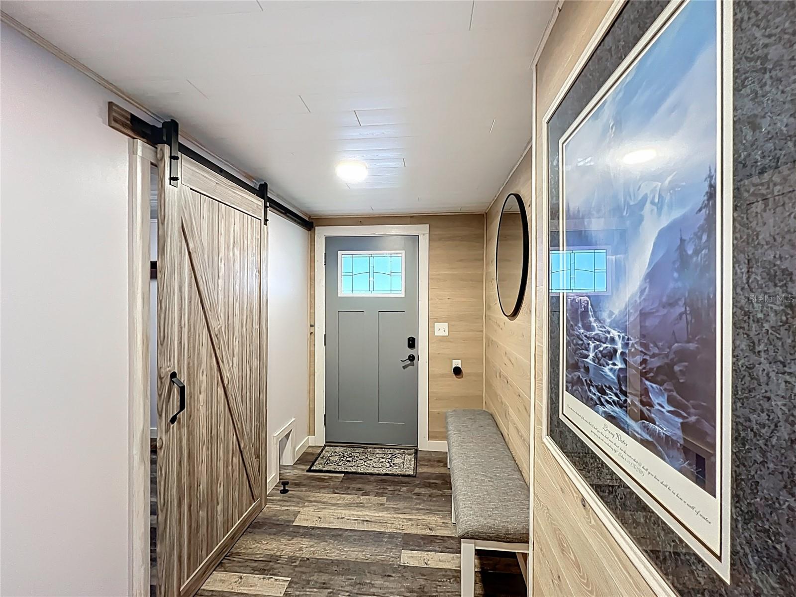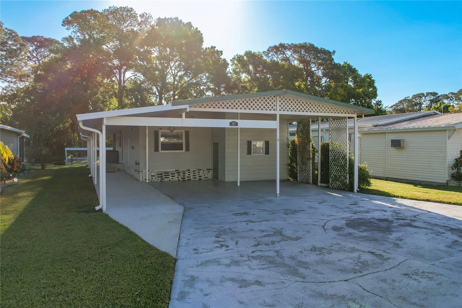 The envy of all homes in this 55+ Lakefront Community! Low HOA, only $39 month. This Open Floor plan home has been totally gutted and remodeled! Sellers planned on making it their forever home but must relocate. This prized possession could be yours! The subflooring has been replaced with ¾ inch Plywood and covered with Lifetime Laminate flooring. The electrical service is also brand new and the sellers had a Generator Connection installed directly into the Breaker Box. Kitchen has been enlarged and modernized. The room right next to the entrance with the beautiful Barn Door is currently being used as an office, but it can be a craft room, Pantry, storage, whatever your heart desires. All new cabinets, Pantry with pull-outs along with several other pull-outs in the Kitchen. Tiled Back Splash, Coffee Bar and Quartz countertops. While you’re enjoying your breakfast/dinner you can spot some wildlife in the woods across the canal. Microwave and Range are brand new-installed March '25. The Ceiling has been covered with Armstrong Tongue and groove ceiling planks. All new lighting and plumbing fixtures throughout. 1100 Sq Ft of Florida room with sliding windows, carpeting and a ceiling fan to use year-round. The home has been releveled with new piers, the underlaying sheeting has been recovered with Polypropylene and in 2023 new Hurricane Tie-downs have been installed. The exterior walls have been insulated with foam insulation. Most of the windows have been replaced with Impact rated Low E rating, except for the kitchen windows connected to the Florida room. Three Panel Craftsman doors plus a Barn door installed throughout. Both bathrooms have new walk-in showers and sliding Glass doors, Vanities, storage space and all new fixtures; the guest bath has a linen closet too. Primary Bath has the top of the line all in one Washer/dryer combo. Primary Bedroom has a large walk-in closet with plenty of storage. The hot water heater was replaced less than 2 years ago. The Shed is attached and spacious with electric and shelving. Additional 10 feet by 72 feet of roof coverage was added to the large carport; great space to add a screened-in porch if you choose. The Driveway has plenty of room for several vehicles. Roof and A/C were replaced by the previous owner back in 2018-2019. The seawall is made of Pressure Treated wood. The stairs to the Dock need to be rebuilt. This lakefront community is located on a Dead-end Street with 2 entrances, it has a dock, boat ramp, Shuffleboard and Clubhouse with activities. There is secure storage for your RV and extra boating equipment. Shopping, entertainment is easily accessed by the main roads just minutes from the community.