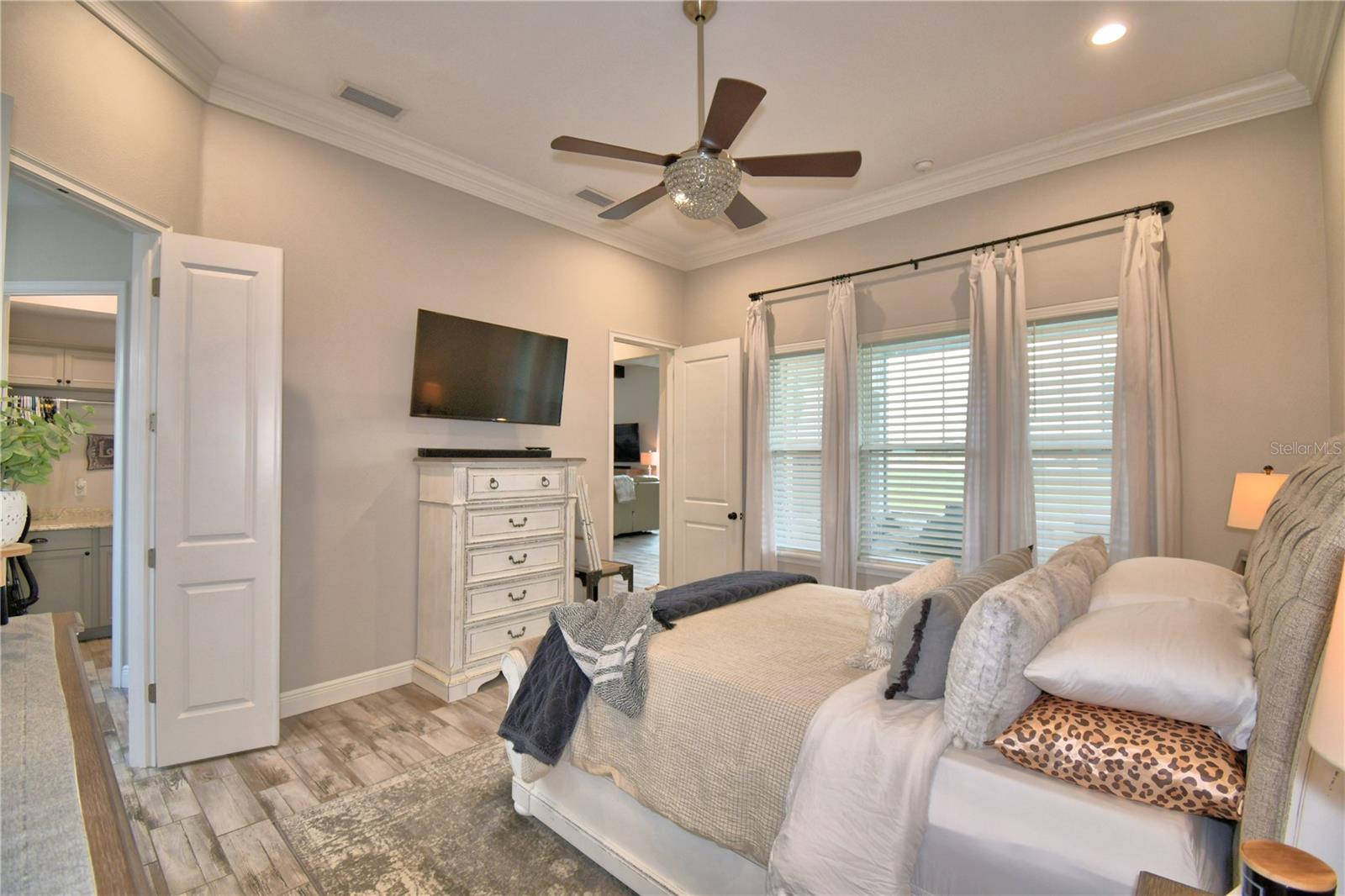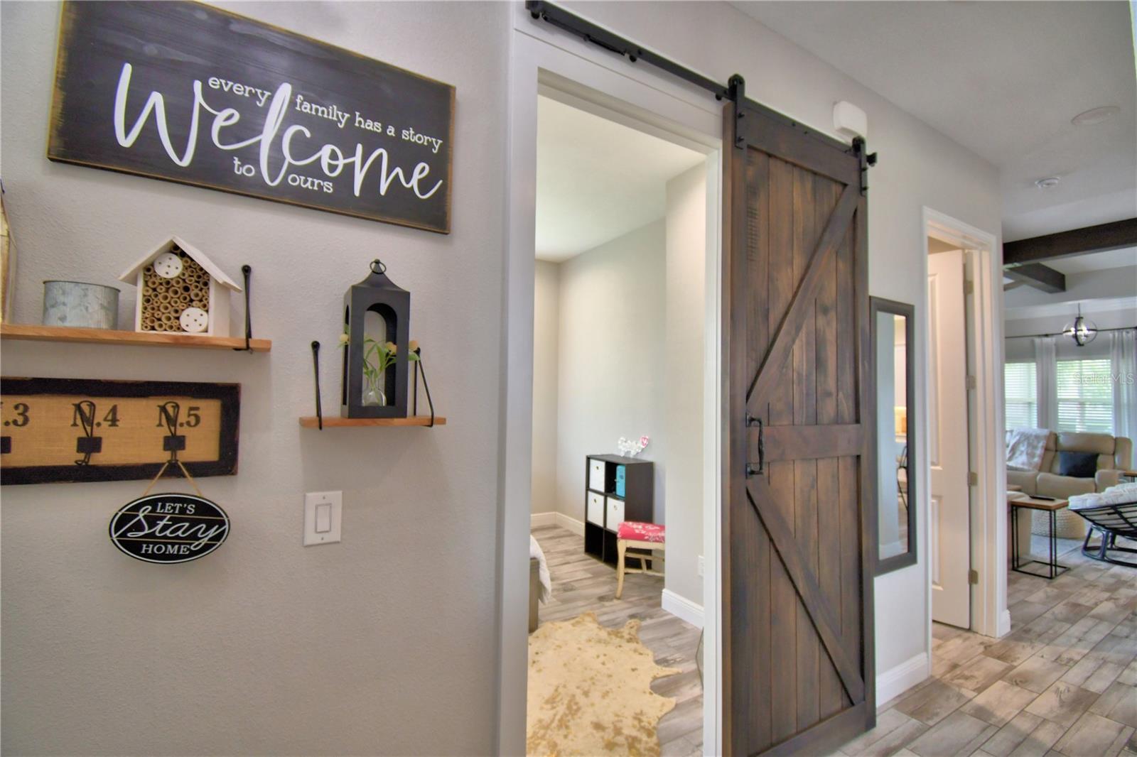 Welcome to Water Ridge — a private enclave of luxury and sophistication. Prepare to be impressed with this meticulously maintained 3-bedroom, 3.5-bath home that offers luxurious living with an open floor plan and thoughtful design throughout. Inside, you will find a dedicated office—currently used as a fourth bedroom—featuring a stylish sliding barn door for added character and privacy and a spacious 16' x 16' bonus room upstairs, perfect for a media room, play area, or guest retreat. The beautiful kitchen features quartz countertops, stainless steel Samsung appliances, a sleek range hood, tile backsplash, an island with breakfast bar, a stylish apron-front sink and an abundance of cabinetry. The kitchen flows seamlessly into a casual dining area and the spacious living room showcasing a wood-beam ceiling that adds warmth and architectural charm. The living room extends into a versatile 10' x 15' flex space—ideal for a reading nook, game room, or additional seating. A nearby powder room adds convenience for guests. Step out onto the screened lanai and take in the beautiful views- a peaceful spot for morning coffee or evening relaxation. The lanai comes pre-plumbed, offering a seamless setup for your dream outdoor kitchen. The owner’s suite is bright and airy, offering a luxurious en suite bath with a garden tub, large walk-in shower with subway tile, private toilet room, dual-sink vanity with quartz countertops, and direct access to the tastefully designed laundry room. Upstairs, you’ll find two additional spacious bedrooms—each with its own en suite bath and walk-in closet—along with the large bonus room. Enjoy Resort-Style Living at Its Finest--Water Ridge offers its residents an abundance of upscale amenities, including Multiple Sparkling Pools, Tennis & pickleball courts, Basketball courts, State-of-the-art fitness center and clubhouse, Fishing pier and scenic walking trails, Access to three lakes for boating and fishing, Private boat launches on Lake Van and Lake Alfred and community boat storage. Conveniently located between Orlando and Tampa, with easy access to major attractions, airports and the beautiful beaches. Don't miss out, call today to tour this beautiful home!