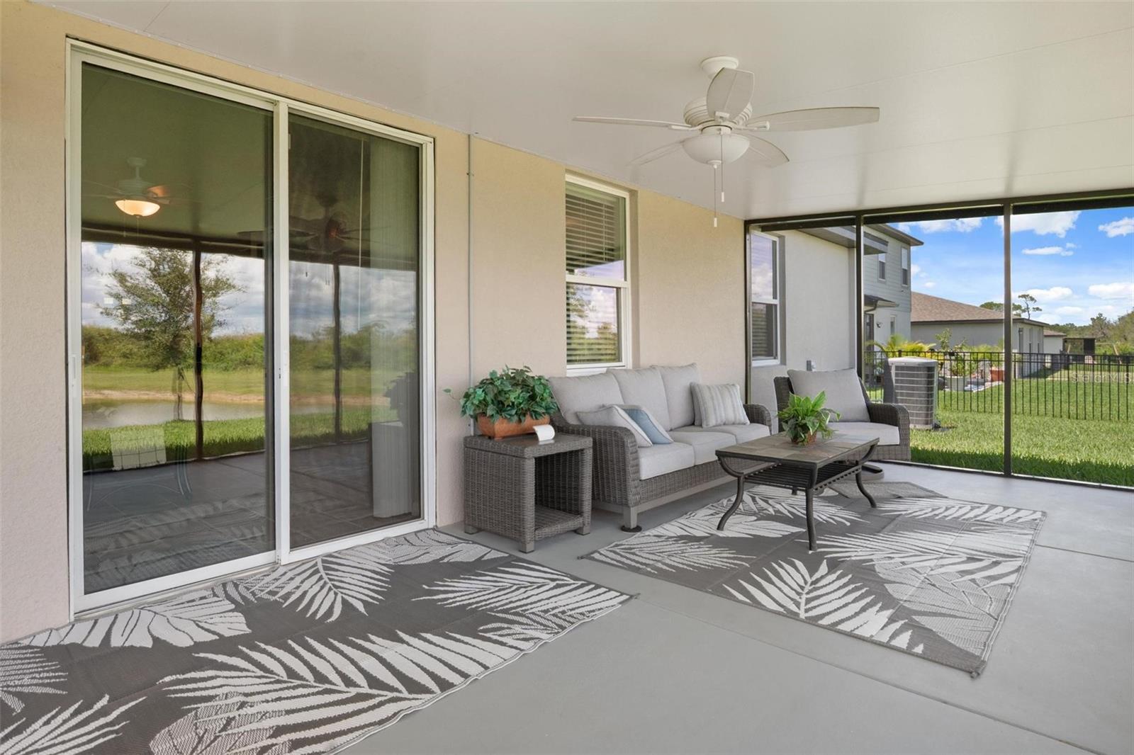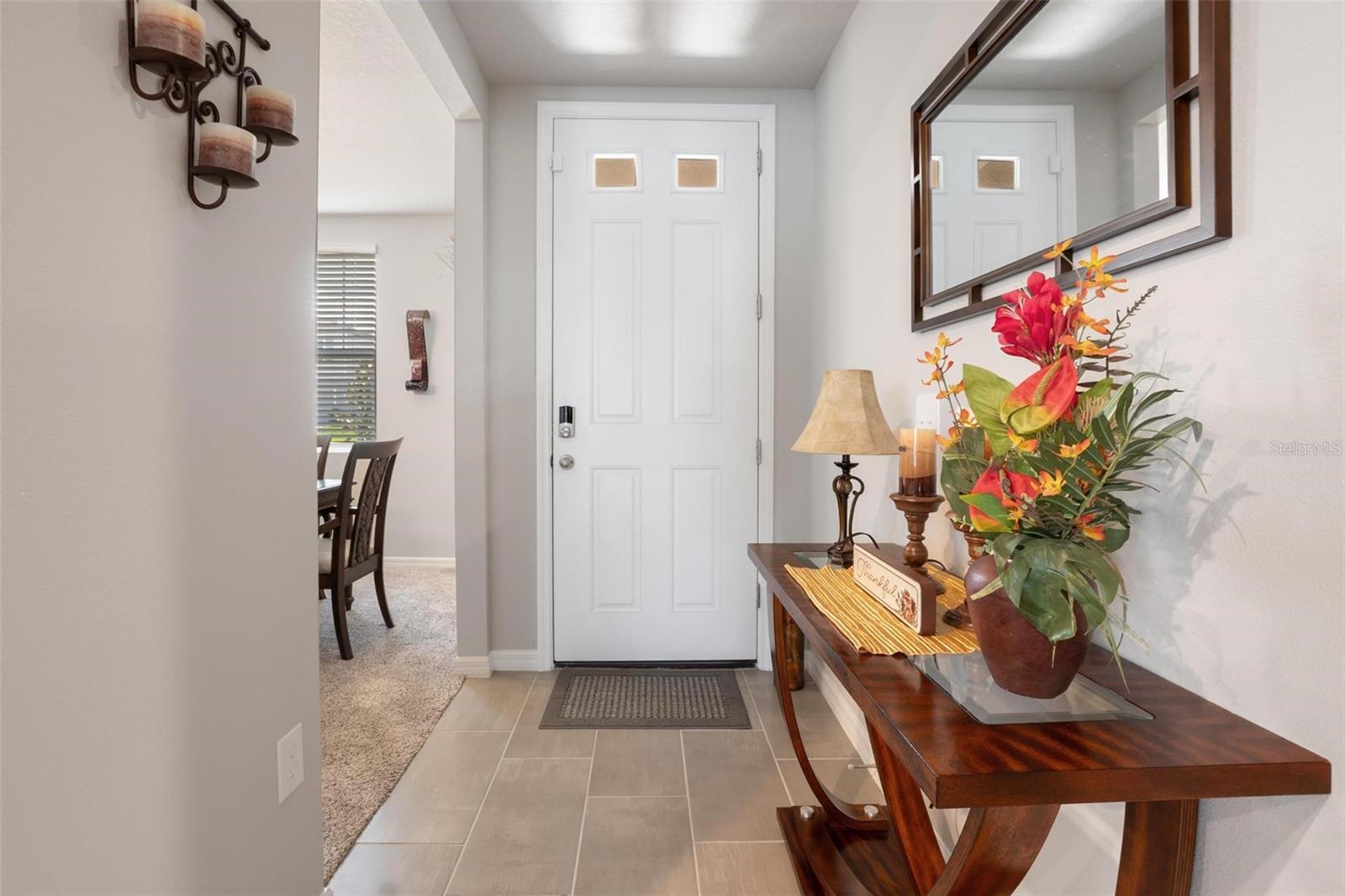 Nestled in a serene neighborhood, this stunning three-bedroom, two-bathroom residence beautifully blends elegance and comfort. As you step inside, you are greeted by an inviting open concept layout that seamlessly connects the living, dining, and kitchen areas, creating a warm and welcoming atmosphere ideal for both entertaining and everyday living. The heart of this home is undoubtedly the beautifully designed kitchen, featuring white quartz countertops, a spacious island perfect for meal prep or casual dining, and a generous walk-in pantry that offers ample storage space for all your culinary needs. The formal dining room provides an exquisite space for hosting dinner parties or family gatherings, enhancing the overall charm of this remarkable property. Retreat to the expansive primary bedroom, which boasts an en suite bathroom and an impressive walk-in closet, ensuring you have plenty of room for your wardrobe and personal items. The home is adorned with elegant tile flooring throughout, while cozy carpet graces the bedrooms and dining room, adding a touch of warmth and comfort. Step through the sliding doors and into your very own outdoor oasis! The large screened-in lanai is enhanced by a ceiling fan with lights, creating a breezy retreat where you can unwind while enjoying breathtaking views of the large pond and the surrounding conservation area, where you can witness the beauty of local wildlife in its natural habitat. This exquisite property also features an epoxy-finished two-car garage, offering not only durability but a sleek look for your vehicles. Plus, enjoy access to the community pool, perfect for those hot summer days or a refreshing evening swim. Don’t miss your chance to call this captivating home yours! HOA is still owned by the builder Meritage Homes until all homes in the community are complete. Schedule a viewing today and experience the tranquility and beauty that await you