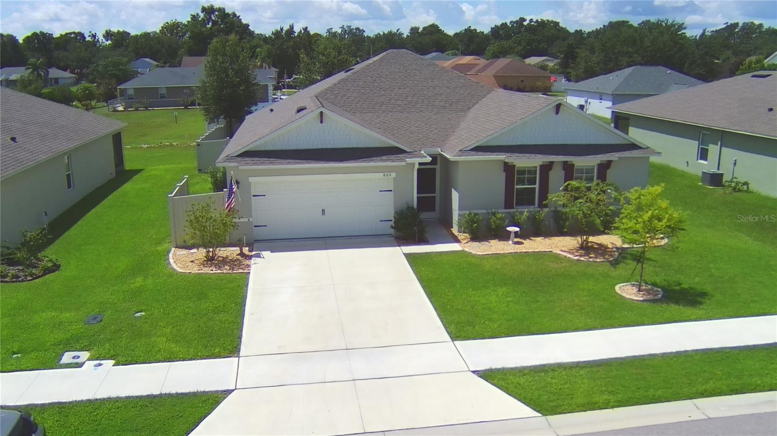 Highly upgraded features on this well kept, well decorated, home with upgrades such as wooden slatted walls, blinds and linen-like window coverings, and new luxury vinyl flooring throughout in a neutral light shade, good for any decor. This unique floor plan allows for an abundance of storage, 4-Bedrooms with ample closet space, and a wide open floor plan offering a spacious Home with Great Outdoor Space, located in a community with a Community Pool. The backyard is a highlight with a huge 35x18 paver area, perfect for hanging out, grilling, or just relaxing. There’s a swim spa for fun and exercise, and the yard is fully fenced — great for privacy and pets. Recent updates include fresh landscaping, new gutters, and a water softener for that extra touch. Security features a Smart Home. Inside, you'll love the new luxury vinyl flooring throughout — super durable and looks great. The front screened entry is perfect for enjoying the breeze and serves as an extra layer into the front main entry, and the garage has a hanging storage rack to keep things organized. The appliances all stay including washer and dryer, so it’s move-in ready. With a spacious 2-car garage and all these upgrades, this home is ready for you to settle in and enjoy. Don’t miss it!