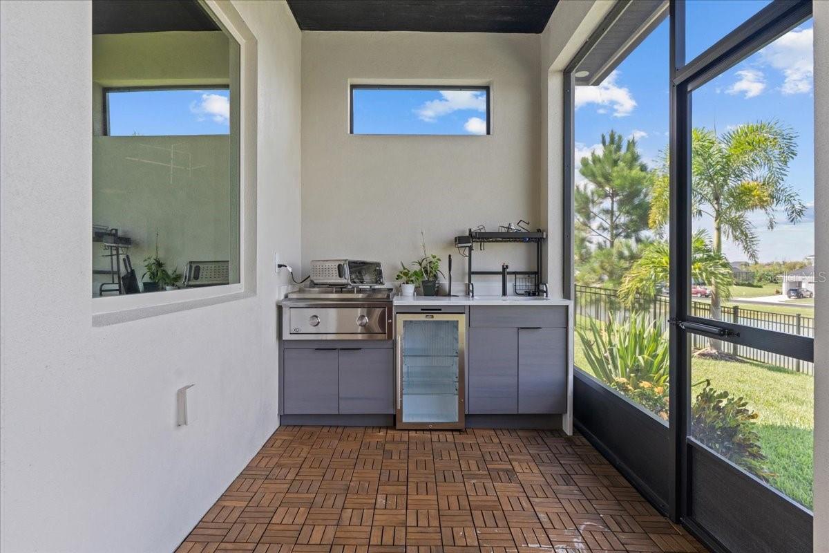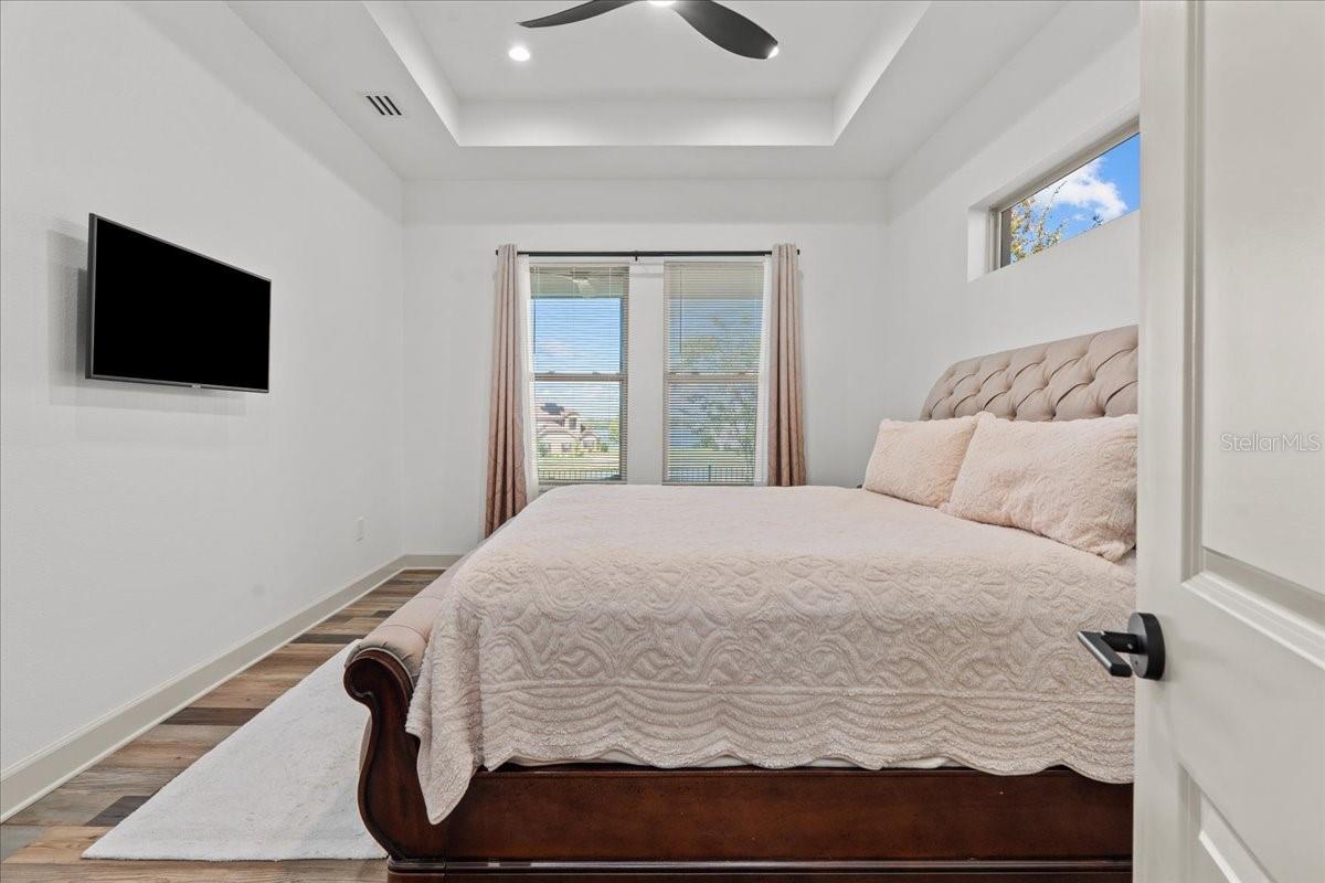 Modern design meets resort-style living in this custom home built in 2023. From the moment you enter, the open layout and walls of glass draw your eye to the water views beyond, creating a natural connection between indoor and outdoor living. The centerpiece of the home is a chef inspired kitchen featuring an oversized waterfall island, European cabinetry, stone counters, and premium appliances, designed for both beauty and functionality. The great room opens seamlessly to an expansive lanai, complete with outdoor kitchen, fireplace, and bamboo flooring perfect for gathering with friends or relaxing as the sun sets over the water. The owner’s suite feels like a private spa, with its wet-room bath, dual shower heads, towel warmer, and floating double vanities. Three additional bedrooms and baths are equally refined, offering flexibility for family, guests, or a home office. Natural gas throughout the home adds convenience and efficiency, powering the kitchen, lanai, fireplace, and tankless water system. Set within the exclusive Water Ridge gated community, you’ll enjoy access to pools, a fitness center, tennis and pickleball courts, a sauna, clubhouse, and multiple lakes for boating and fishing. Every detail of this home has been designed for a lifestyle of comfort, style, and ease.
