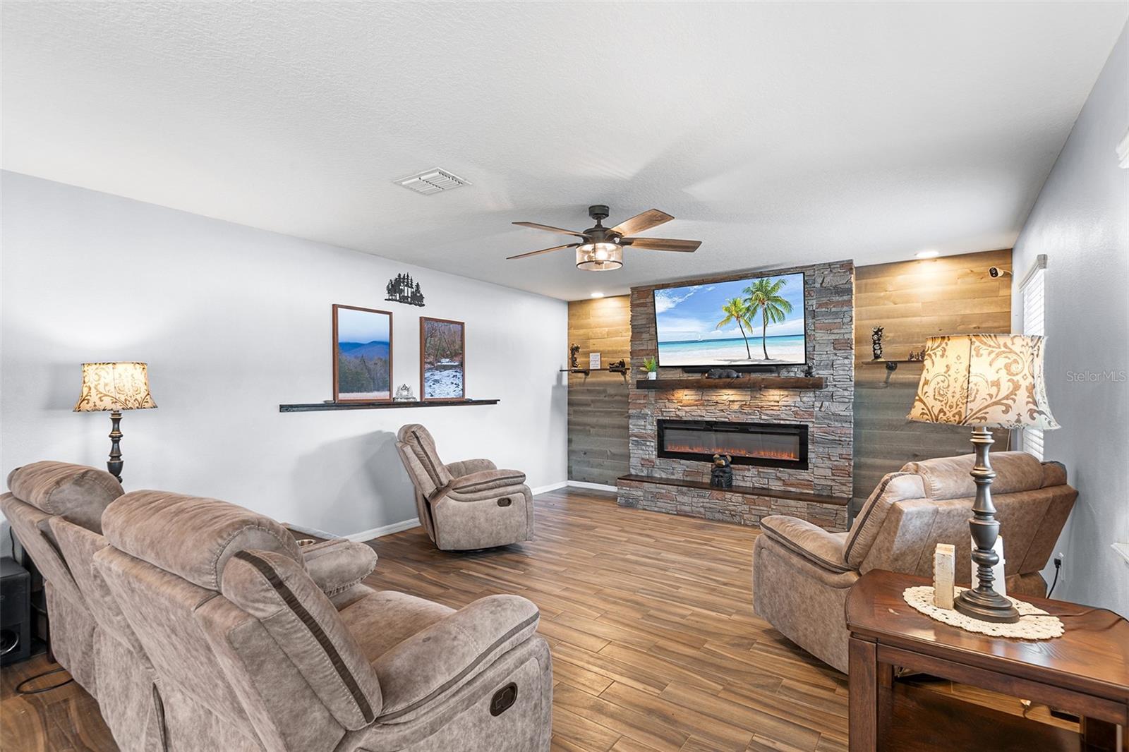 One or more photo(s) has been virtually staged. **SELLER IS OFFERING $2000 TOWARDS BUYER'S CLOSING COSTS!** Updated three bedroom home with loft for sale in Auburndale, Florida, located in the Whispering Pines community in Polk County with low annual HOA fees and no CDD. Built in 2012, this two-story single-family home offers approximately 1,921 square feet of living space and sits on an oversized 0.26-acre lot with a vinyl privacy-fenced backyard. Inside, the home features new flooring, fresh interior paint, and a refreshed kitchen with stone countertops and modern finishes. The open floor plan includes a spacious family room with a custom electric fireplace, a dedicated dining area, and a versatile upstairs loft that can function as a home office, playroom, media room, or second living space. The primary suite includes a walk-in closet and a private updated bathroom, creating a comfortable retreat within the home. Major improvements include a new AC system, providing added peace of mind for buyers seeking a move-in ready property. The large fenced yard offers space for pets, outdoor entertaining, gardening, or future additions such as a pool or extended patio. The property is located in Flood Zone X and is connected to public water and sewer. Conveniently situated in Auburndale with easy access to I-4, this location provides a manageable commute to Lakeland, Tampa, and Orlando while maintaining a quiet residential neighborhood setting. The home is eligible for FHA, VA, conventional, or cash financing, making it accessible to a wide range of buyers. For those searching for a move-in ready three bedroom home with loft in Auburndale, a property with a large fenced yard in Polk County, or a home with low HOA and no CDD in Central Florida, 476 Pine Shadow Lane offers updated features, flexible living space, and strong long-term value.