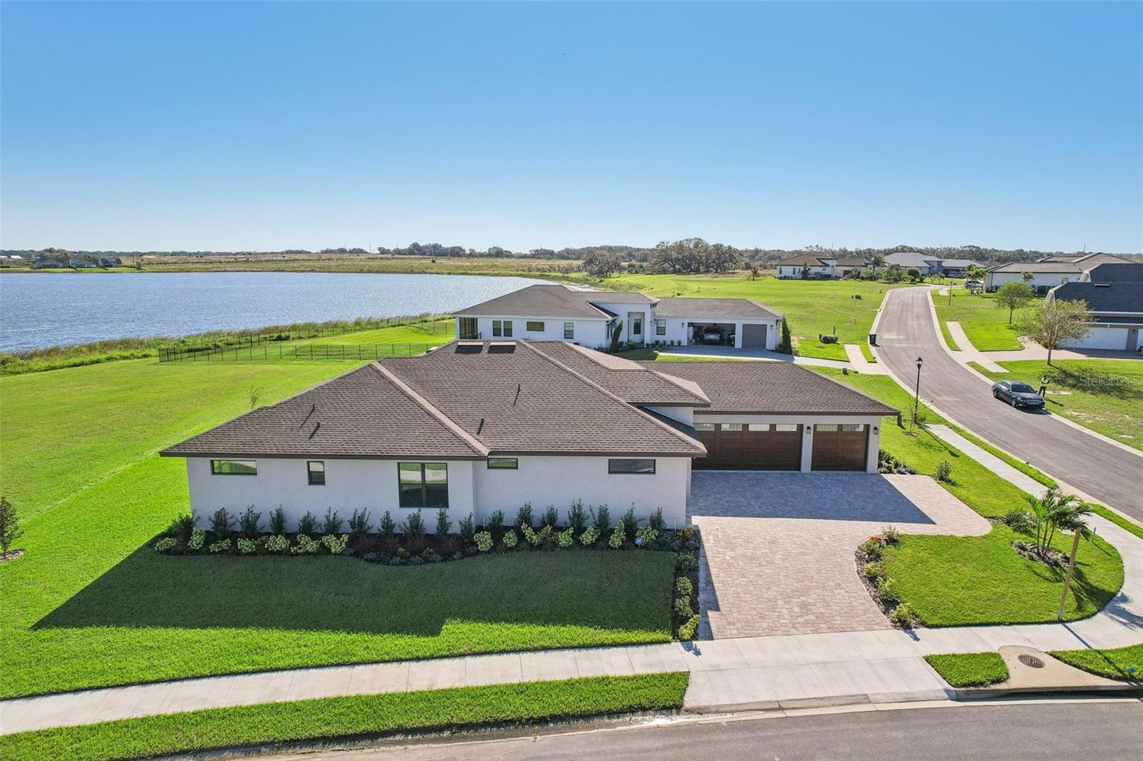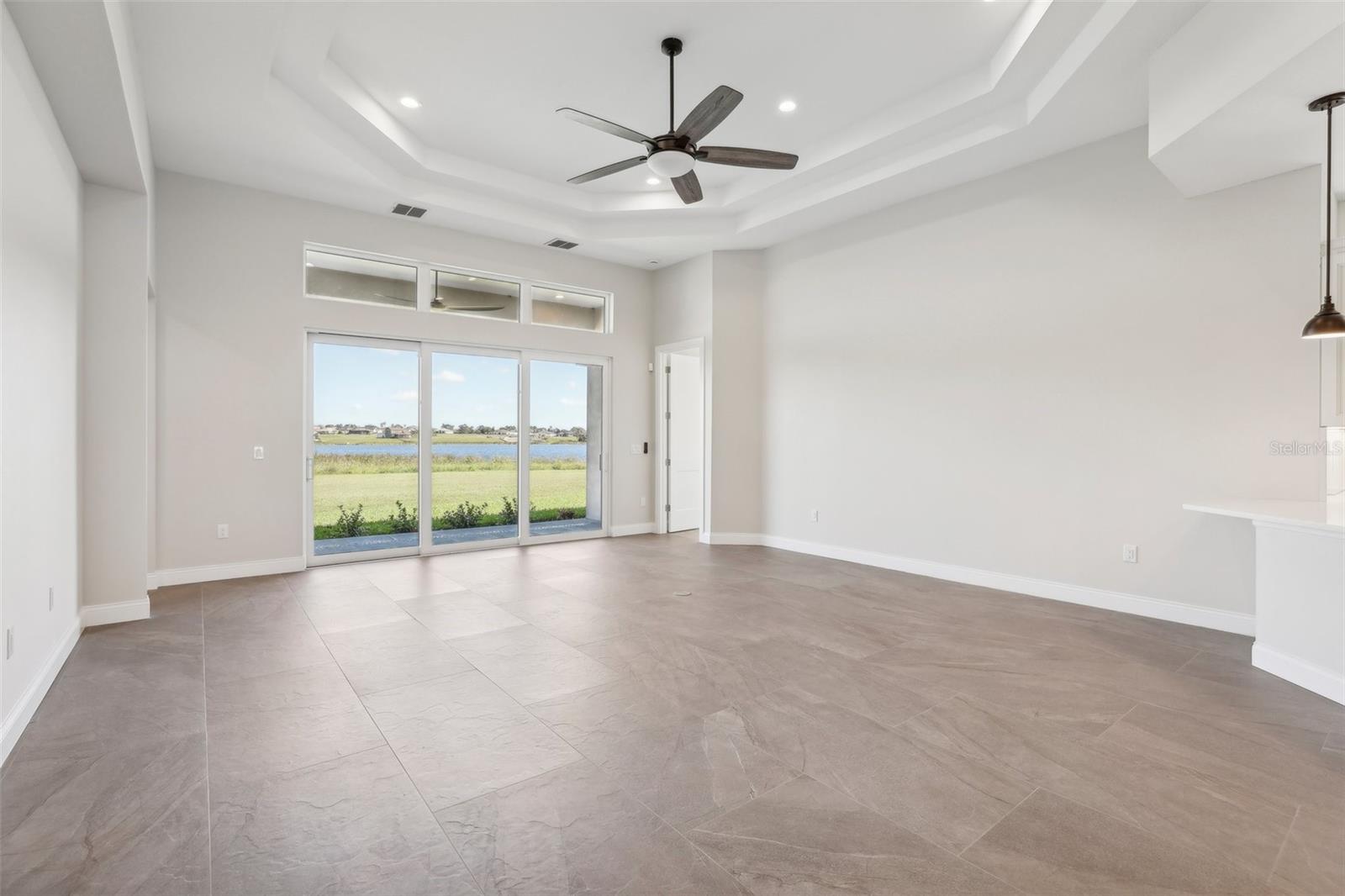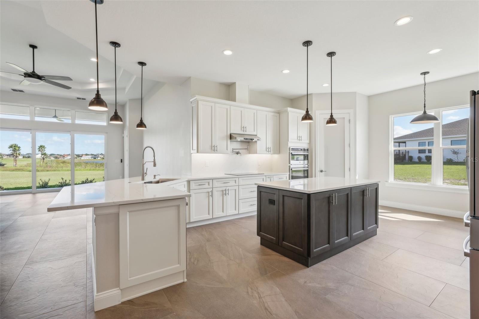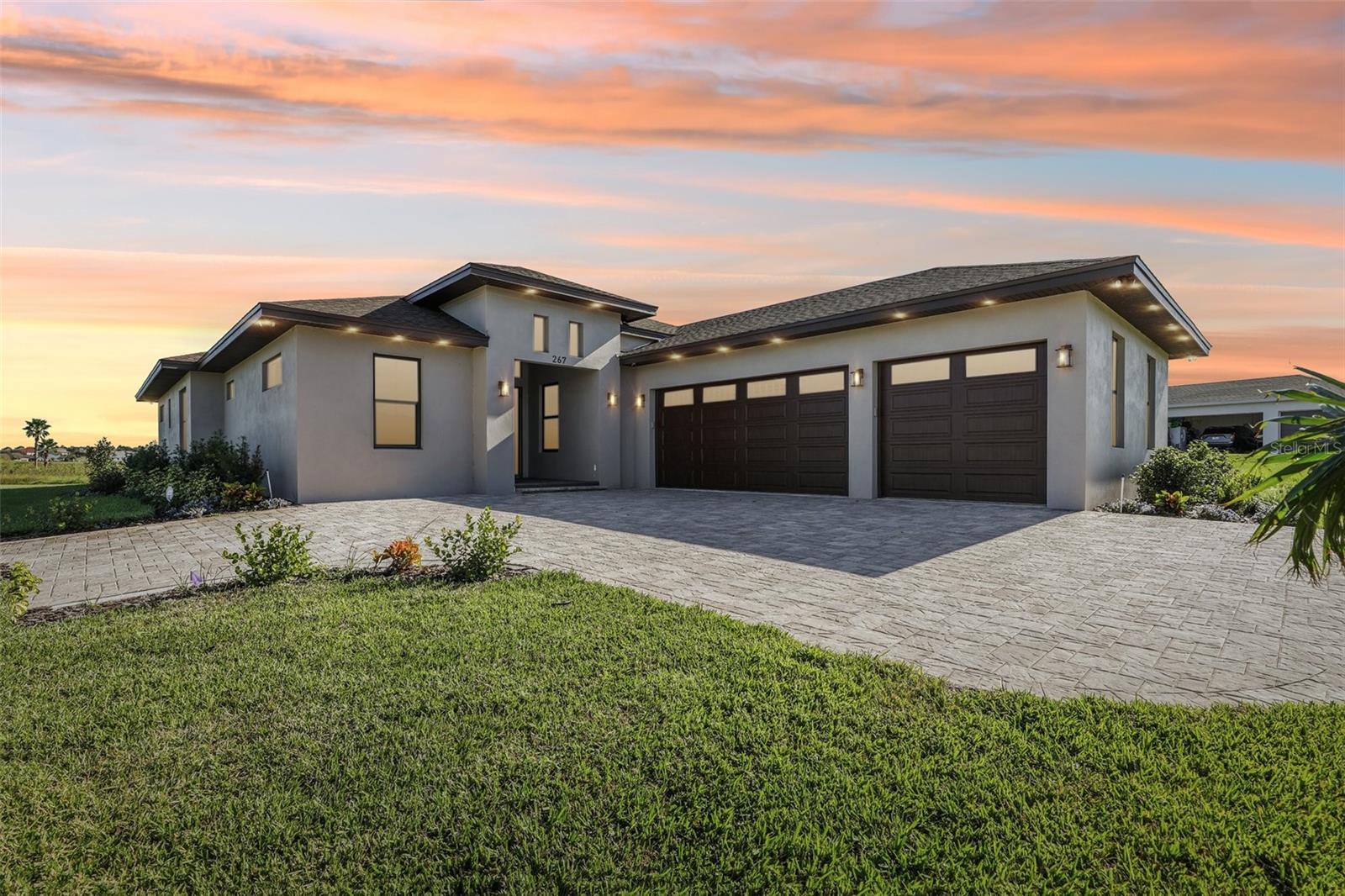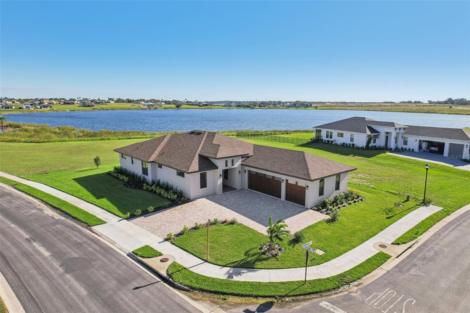 Welcome to the NEW CONSTRUCTION 2588 square foot open-concept living space connecting the living room, dining room and kitchen leading to a covere lanai for perfect indoor & outdoor flow. This 4 bedrooms, 3 full bath including a multi generation suite with a separate entrance is meticulously designed and packed with features comparable to those found in custom homes, making it stand out from the competition. Located within the highly sought-after Water Ridge community, The property sits on a 12,151 sf corner lot with a breathtaking views of Lake Medora and lush green landscape, offering maximum privacy. As you step through the double front door, the great room with a decorative tray ceiling as well as the triple sliders framing the unobstructed Lake Medora view. The large lanai tiled with the elegant decorative stone Paver and an OUTDOOR KITCHEN OUTLET. The kitchen is a chef’s dream, showcasing sleek bi-color WOOD SHAKER-STYLE cabinets with SOFT-CLOSE HARDWARE, stunning BLANC/ GOLD QUARTZ countertops, and a gray accent ISLAND equipped with USB & C CHARGING PORTS, backsplash complements the overall design. A mid size WALK IN PANTRY with glass door, while the top-of-the-line Stainless Steel GE & GE PROFILE SMART appliances ensure functionality and style in addition to the KOHLER Stainless Steel Grade 18 under mounted sink & a KOHLER SEMI PROFESSIONAL faucet with 2 functions . The master bedroom features lake view, his and hers walk-in closet, In suite Bathroom with private water closet, dual vanities topped with Blanc Gold QUARTZ as well as ILLUMINATED VANITY MIRROR with multiple settings, a FREE STANDING TUB, a walk-in shower with RAIN SHOWER HEAD. THE SPLIT-BEDROOM LAYOUT has Bedroom 2 which is another location for the spectacular green landscape and lake Medora views connected with a small hallway to bedroom 3 and jack & Jill bathroom. while the multi generation 4th room has a SEPARATE ENTRANCE, a full bathroom and a WET BAR. It can be used as an office if working from home or an In law suite. The SPACIOUS indoor laundry room has a wood cabinets for extra storage and a sink. The 3 car garage walls are finished with sanded stucco and equipped with AN OUTLET FOR AN ELECTRIC CAR CHARGER included. Most of the interior walls have R-11 Sound Proof insulation from within. All Faucets are DELTA SATIN NICKEL FINISH. Some other features includes: CAT 5 ETHERNET throughout the house perfect for THOSE WHO WORK FROM HOME. 96 inch HEIGHT MASONITE SOLID CORE PANELED DOORS WITH KWIKSET MICROBAN LEVERS. A MASONITE double front door with decorative glass equipped with YALE SMART LOCK. Top of the line energy efficient PGT DOUBLE PAN, insulated windows. EXPANDABLE ADT SECURITY SYSTEM, SMART INSULATED CLOPAY WIDE GARAGE DOORS, a VARIABLE SPEED TRANE HVAC, a SMART HUNTER HYDRAWISE 6 zones Irrigation system, A TOP OF THE LINE HYBRID, ENERGY STAR 80 GALLON, ELECTRIC AO SMITH WATER HEATER,USB CHARGING PORTS THROUGHOUT THE HOUSE . A Florida-friendly, non-toxic plants safe for pets and wild animals. The luxurious Water Ridge Community truly has it all, conveniently located between Orlando and Tampa. Easy access to major attractions such as Disney World 45 minutes, Legoland. the sandy beaches of the Gulf of Mexico. The community amenities includes 2 community boat ramps to access Lake Alfred and Lake Van for endless water sports activities, as well as on-site boat storage, 3 resort-like pools, Tennis and basketball courts, a clubhouse.