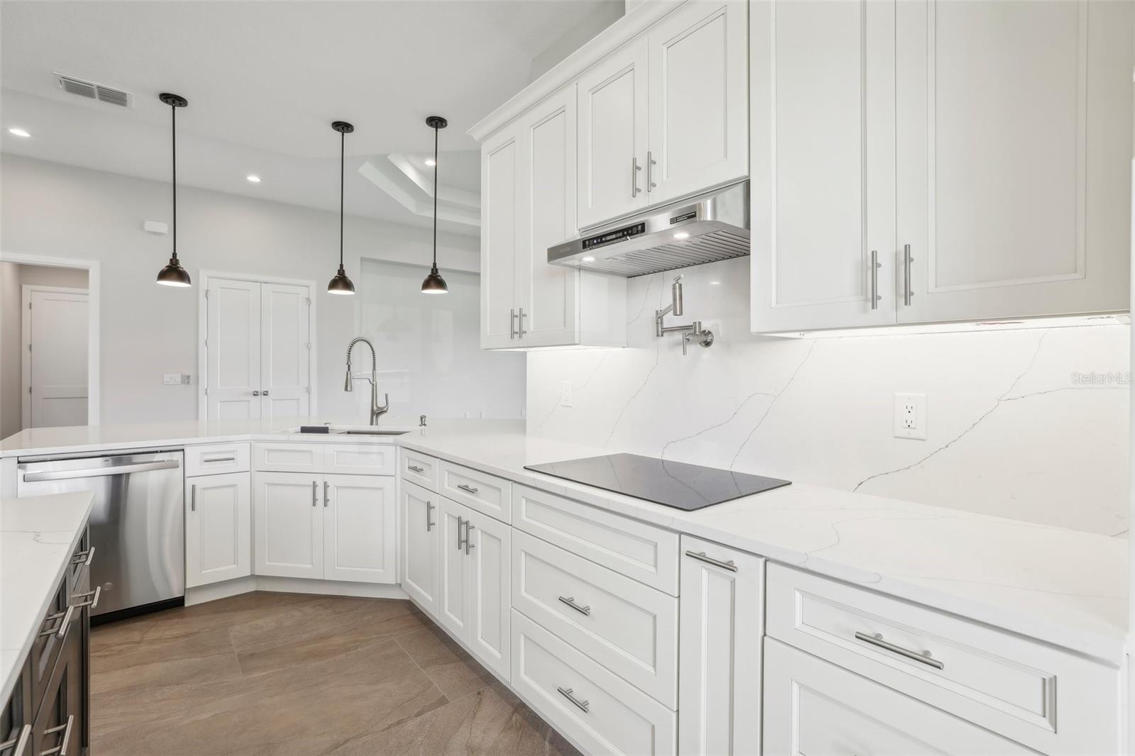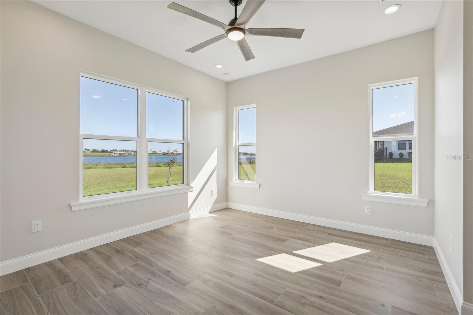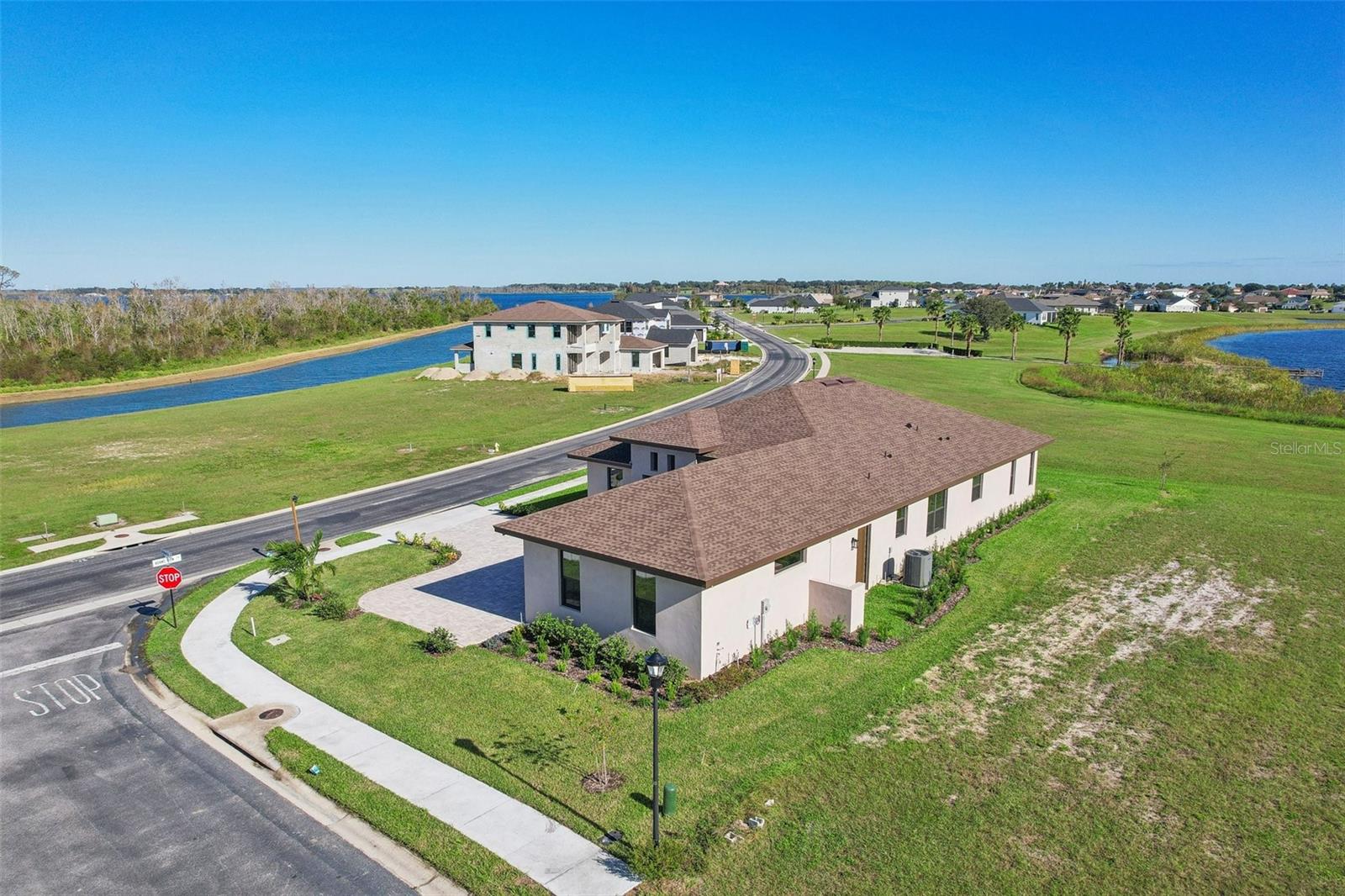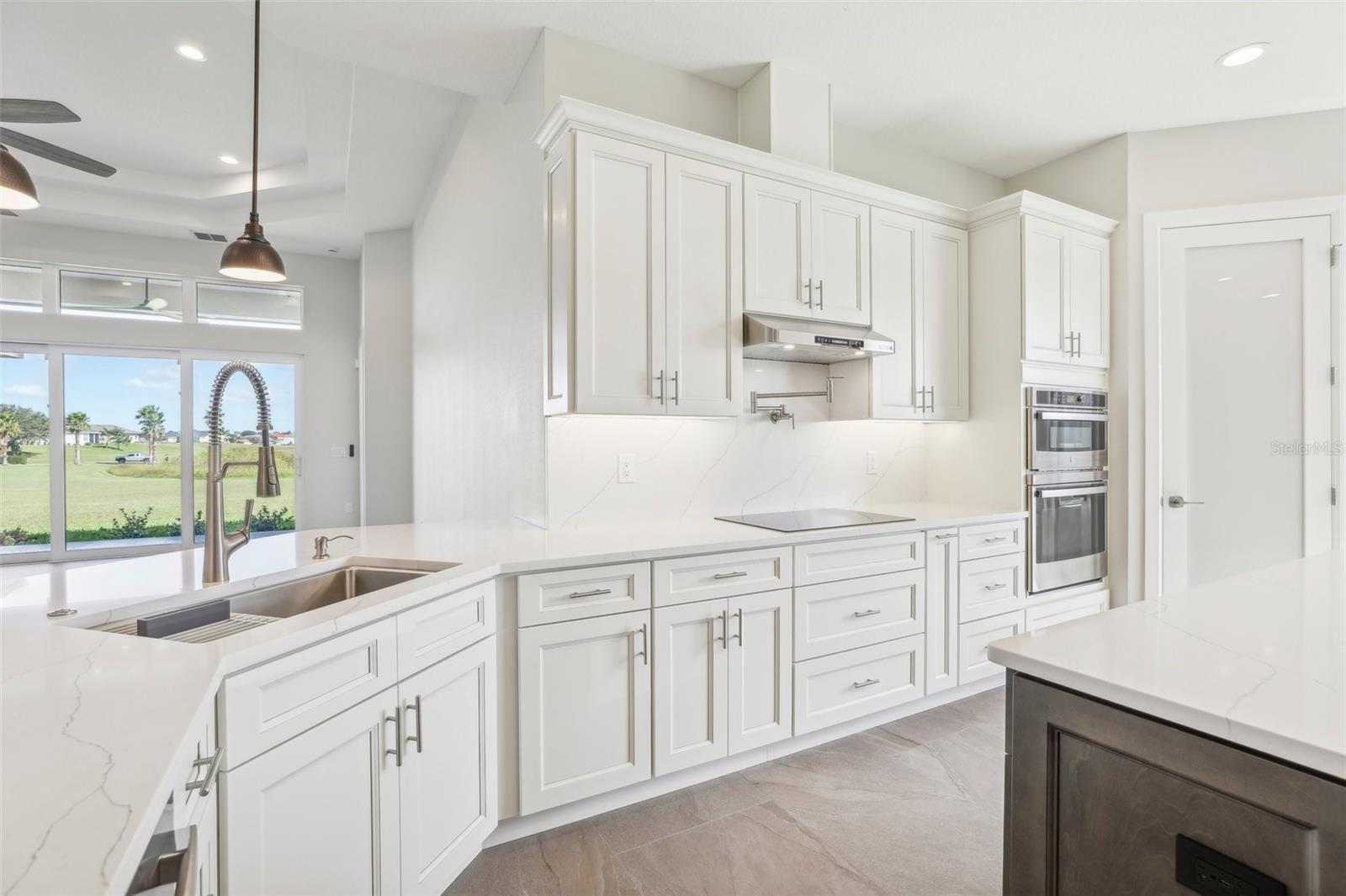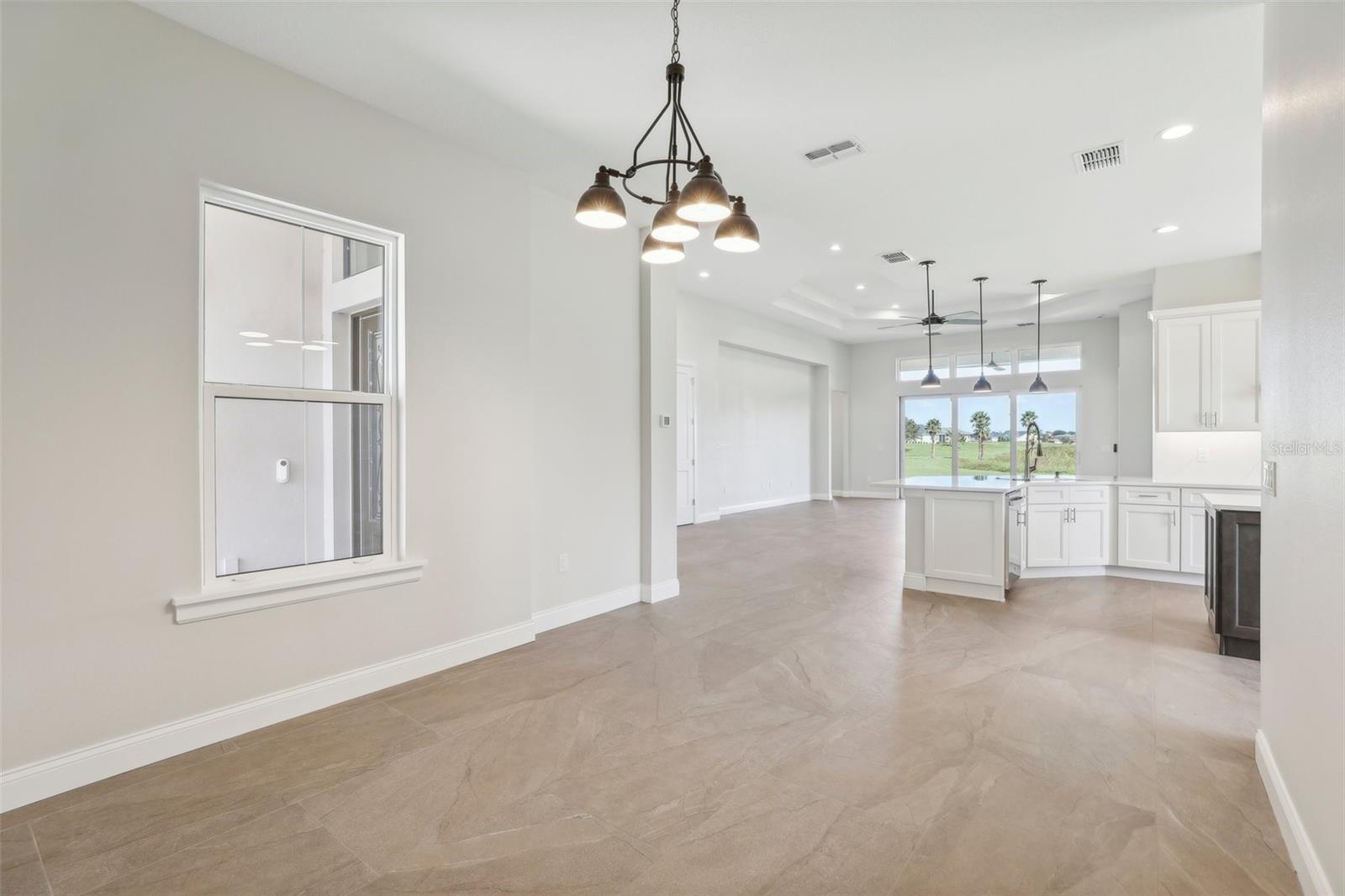 Welcome to the NEW CONSTRUCTION 2588 square foot open-concept living space connecting the living room, dining room and kitchen leading to a covere lanai for perfect indoor & outdoor flow. This 4 bedrooms, 3 full bath including a multi generation suite with a separate entrance is meticulously designed and packed with features comparable to those found in custom homes, making it stand out from the competition. Located within the highly sought-after Water Ridge community, The property sits on a 12,151 sf corner lot with a breathtaking views of Lake Medora and lush green landscape, offering maximum privacy. As you step through the double front door, the great room with a decorative tray ceiling as well as the triple sliders framing the unobstructed Lake Medora view. The large lanai tiled with the elegant decorative stone Paver and an OUTDOOR KITCHEN OUTLET. The kitchen is a chef’s dream, showcasing sleek bi-color WOOD SHAKER-STYLE cabinets with SOFT-CLOSE HARDWARE, stunning BLANC/ GOLD QUARTZ countertops, and a gray accent ISLAND equipped with USB & C CHARGING PORTS, backsplash complements the overall design. A mid size WALK IN PANTRY with glass door, while the top-of-the-line Stainless Steel GE & GE PROFILE SMART appliances ensure functionality and style in addition to the KOHLER Stainless Steel Grade 18 under mounted sink & a KOHLER SEMI PROFESSIONAL faucet with 2 functions . The master bedroom features lake view, his and hers walk-in closet, In suite Bathroom with private water closet, dual vanities topped with Blanc Gold QUARTZ as well as ILLUMINATED VANITY MIRROR with multiple settings, a FREE STANDING TUB, a walk-in shower with RAIN SHOWER HEAD. THE SPLIT-BEDROOM LAYOUT has Bedroom 2 which is another location for the spectacular green landscape and lake Medora views connected with a small hallway to bedroom 3 and jack & Jill bathroom. while the multi generation 4th room has a SEPARATE ENTRANCE, a full bathroom and a WET BAR. It can be used as an office if working from home or an In law suite. The SPACIOUS indoor laundry room has a wood cabinets for extra storage and a sink. The 3 car garage walls are finished with sanded stucco and equipped with AN OUTLET FOR AN ELECTRIC CAR CHARGER included. Most of the interior walls have R-11 Sound Proof insulation from within. All Faucets are DELTA SATIN NICKEL FINISH. Some other features includes: CAT 5 ETHERNET throughout the house perfect for THOSE WHO WORK FROM HOME. 96 inch HEIGHT MASONITE SOLID CORE PANELED DOORS WITH KWIKSET MICROBAN LEVERS. A MASONITE double front door with decorative glass equipped with YALE SMART LOCK. Top of the line energy efficient PGT DOUBLE PAN, insulated windows. EXPANDABLE ADT SECURITY SYSTEM, SMART INSULATED CLOPAY WIDE GARAGE DOORS, a VARIABLE SPEED TRANE HVAC, a SMART HUNTER HYDRAWISE 6 zones Irrigation system, A TOP OF THE LINE HYBRID, ENERGY STAR 80 GALLON, ELECTRIC AO SMITH WATER HEATER,USB CHARGING PORTS THROUGHOUT THE HOUSE . A Florida-friendly, non-toxic plants safe for pets and wild animals. The luxurious Water Ridge Community truly has it all, conveniently located between Orlando and Tampa. Easy access to major attractions such as Disney World 45 minutes, Legoland. the sandy beaches of the Gulf of Mexico. The community amenities includes 2 community boat ramps to access Lake Alfred and Lake Van for endless water sports activities, as well as on-site boat storage, 3 resort-like pools, Tennis and basketball courts, a clubhouse.