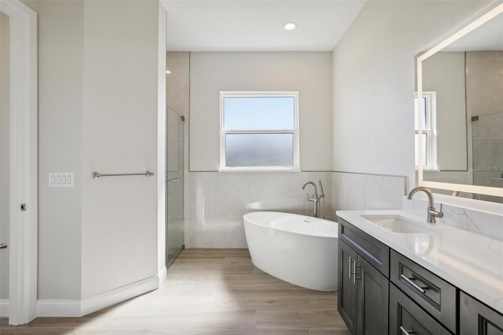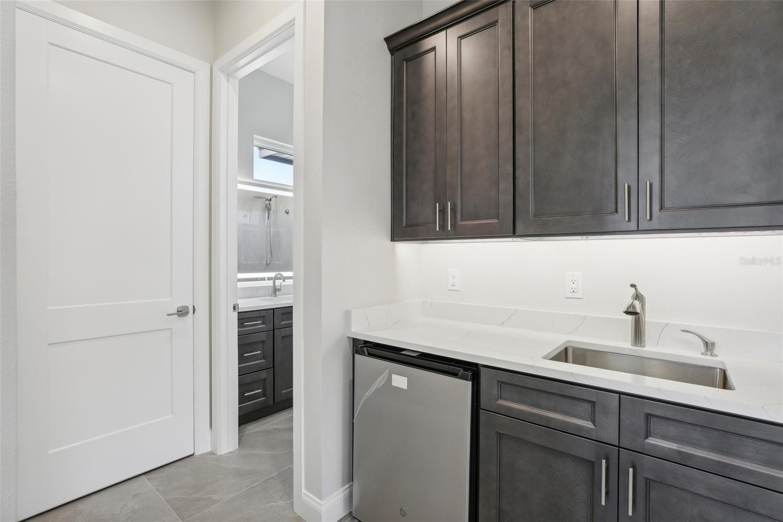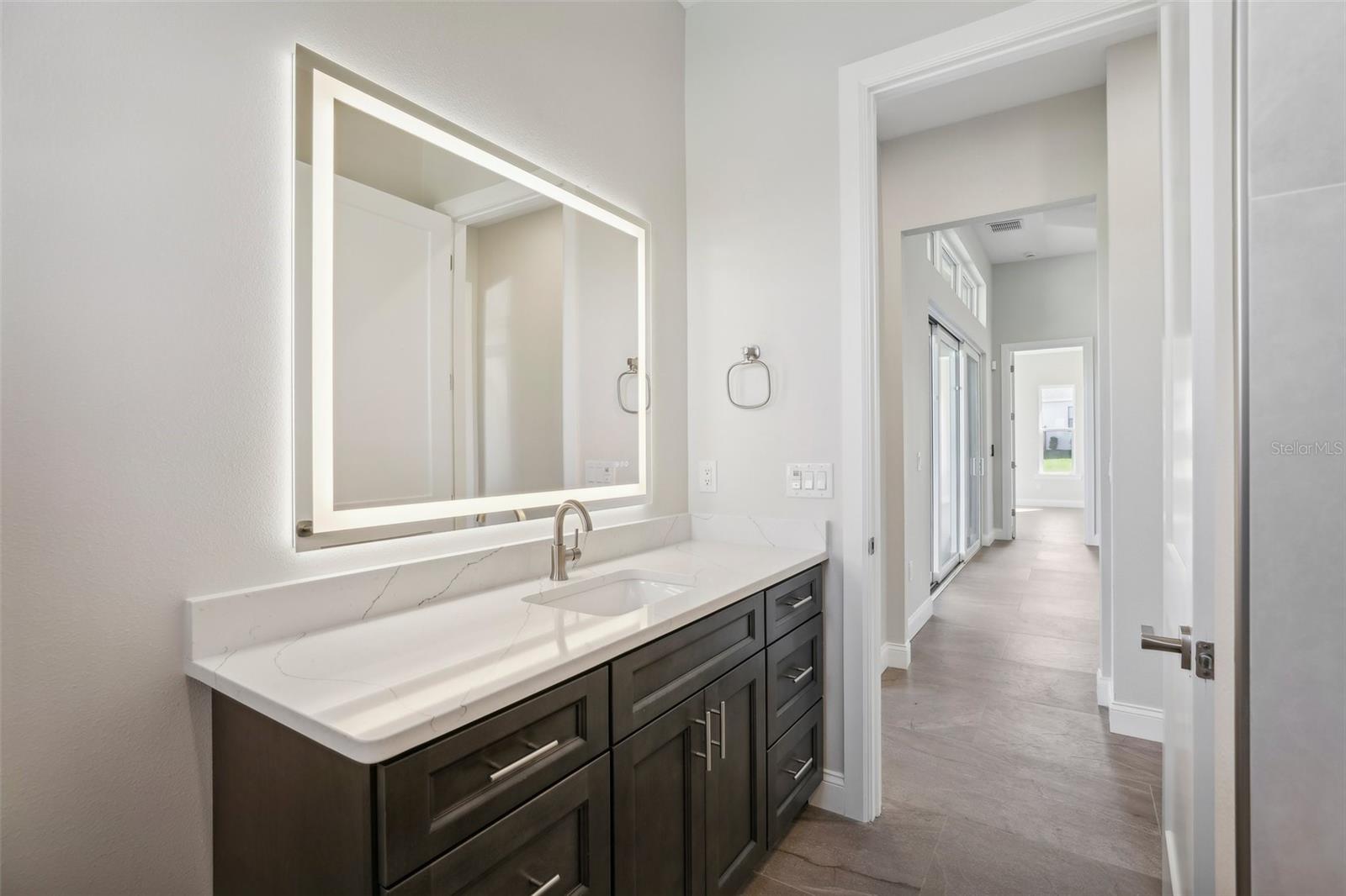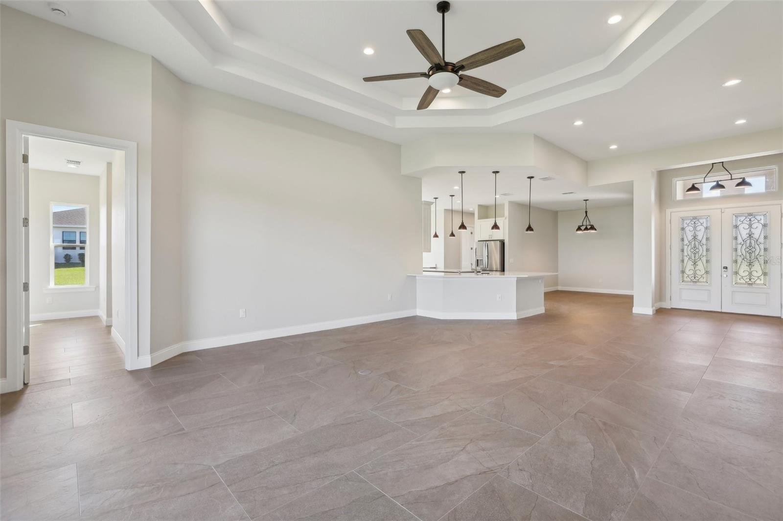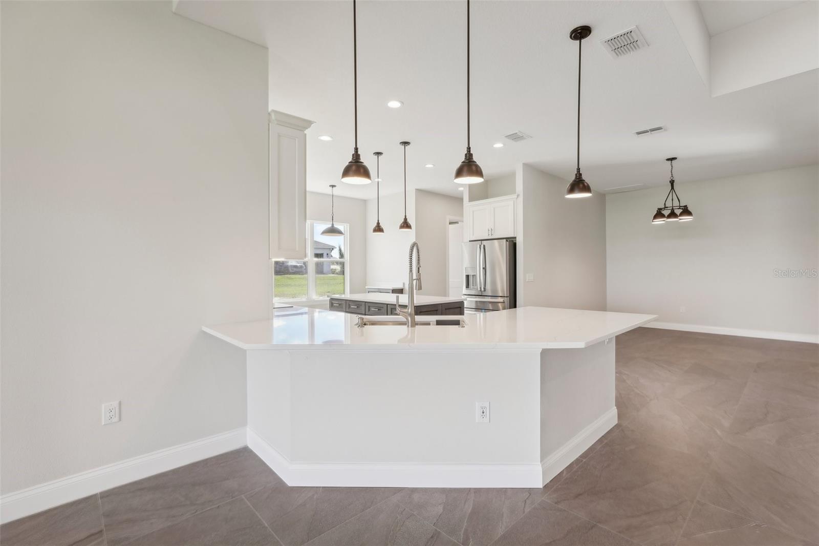 Welcome to the NEW CONSTRUCTION 2588 square foot open-concept living space connecting the living room, dining room and kitchen leading to a covere lanai for perfect indoor & outdoor flow. This 4 bedrooms, 3 full bath including a multi generation suite with a separate entrance is meticulously designed and packed with features comparable to those found in custom homes, making it stand out from the competition. Located within the highly sought-after Water Ridge community, The property sits on a 12,151 sf corner lot with a breathtaking views of Lake Medora and lush green landscape, offering maximum privacy. As you step through the double front door, the great room with a decorative tray ceiling as well as the triple sliders framing the unobstructed Lake Medora view. The large lanai tiled with the elegant decorative stone Paver and an OUTDOOR KITCHEN OUTLET. The kitchen is a chef’s dream, showcasing sleek bi-color WOOD SHAKER-STYLE cabinets with SOFT-CLOSE HARDWARE, stunning BLANC/ GOLD QUARTZ countertops, and a gray accent ISLAND equipped with USB & C CHARGING PORTS, backsplash complements the overall design. A mid size WALK IN PANTRY with glass door, while the top-of-the-line Stainless Steel GE & GE PROFILE SMART appliances ensure functionality and style in addition to the KOHLER Stainless Steel Grade 18 under mounted sink & a KOHLER SEMI PROFESSIONAL faucet with 2 functions . The master bedroom features lake view, his and hers walk-in closet, In suite Bathroom with private water closet, dual vanities topped with Blanc Gold QUARTZ as well as ILLUMINATED VANITY MIRROR with multiple settings, a FREE STANDING TUB, a walk-in shower with RAIN SHOWER HEAD. THE SPLIT-BEDROOM LAYOUT has Bedroom 2 which is another location for the spectacular green landscape and lake Medora views connected with a small hallway to bedroom 3 and jack & Jill bathroom. while the multi generation 4th room has a SEPARATE ENTRANCE, a full bathroom and a WET BAR. It can be used as an office if working from home or an In law suite. The SPACIOUS indoor laundry room has a wood cabinets for extra storage and a sink. The 3 car garage walls are finished with sanded stucco and equipped with AN OUTLET FOR AN ELECTRIC CAR CHARGER included. Most of the interior walls have R-11 Sound Proof insulation from within. All Faucets are DELTA SATIN NICKEL FINISH. Some other features includes: CAT 5 ETHERNET throughout the house perfect for THOSE WHO WORK FROM HOME. 96 inch HEIGHT MASONITE SOLID CORE PANELED DOORS WITH KWIKSET MICROBAN LEVERS. A MASONITE double front door with decorative glass equipped with YALE SMART LOCK. Top of the line energy efficient PGT DOUBLE PAN, insulated windows. EXPANDABLE ADT SECURITY SYSTEM, SMART INSULATED CLOPAY WIDE GARAGE DOORS, a VARIABLE SPEED TRANE HVAC, a SMART HUNTER HYDRAWISE 6 zones Irrigation system, A TOP OF THE LINE HYBRID, ENERGY STAR 80 GALLON, ELECTRIC AO SMITH WATER HEATER,USB CHARGING PORTS THROUGHOUT THE HOUSE . A Florida-friendly, non-toxic plants safe for pets and wild animals. The luxurious Water Ridge Community truly has it all, conveniently located between Orlando and Tampa. Easy access to major attractions such as Disney World 45 minutes, Legoland. the sandy beaches of the Gulf of Mexico. The community amenities includes 2 community boat ramps to access Lake Alfred and Lake Van for endless water sports activities, as well as on-site boat storage, 3 resort-like pools, Tennis and basketball courts, a clubhouse.