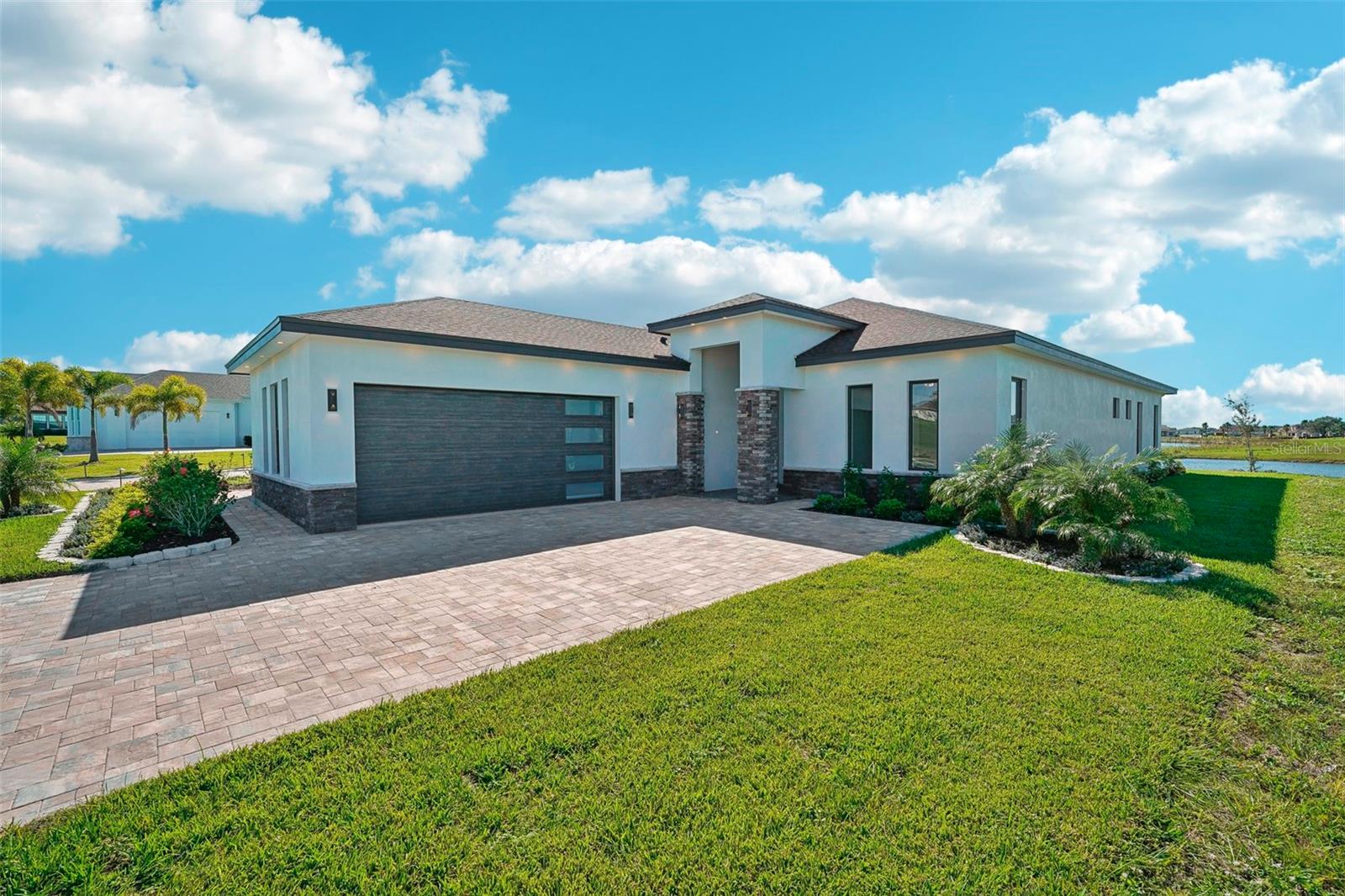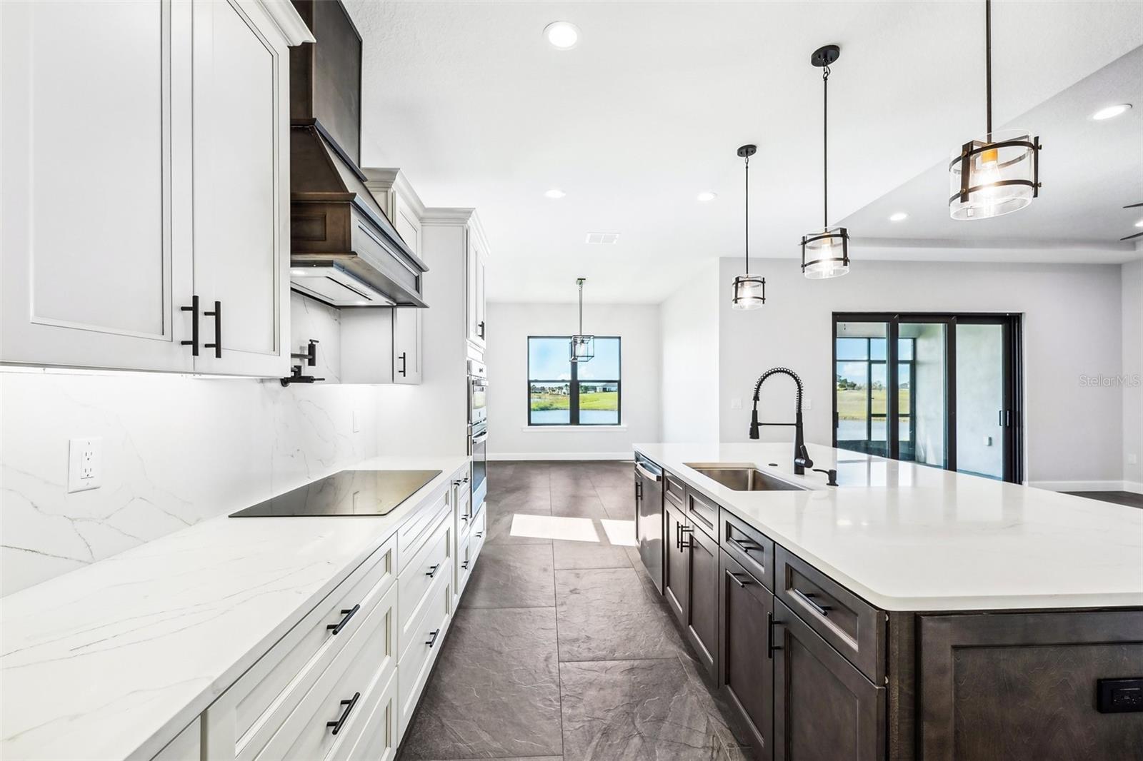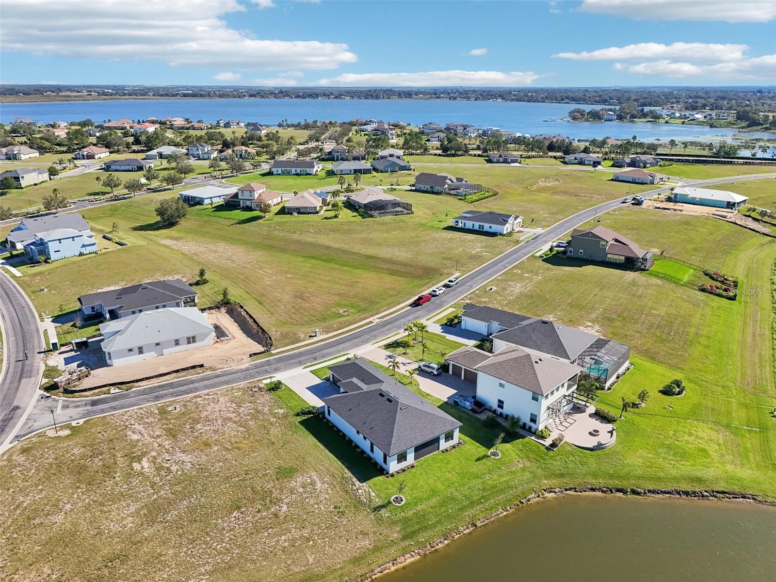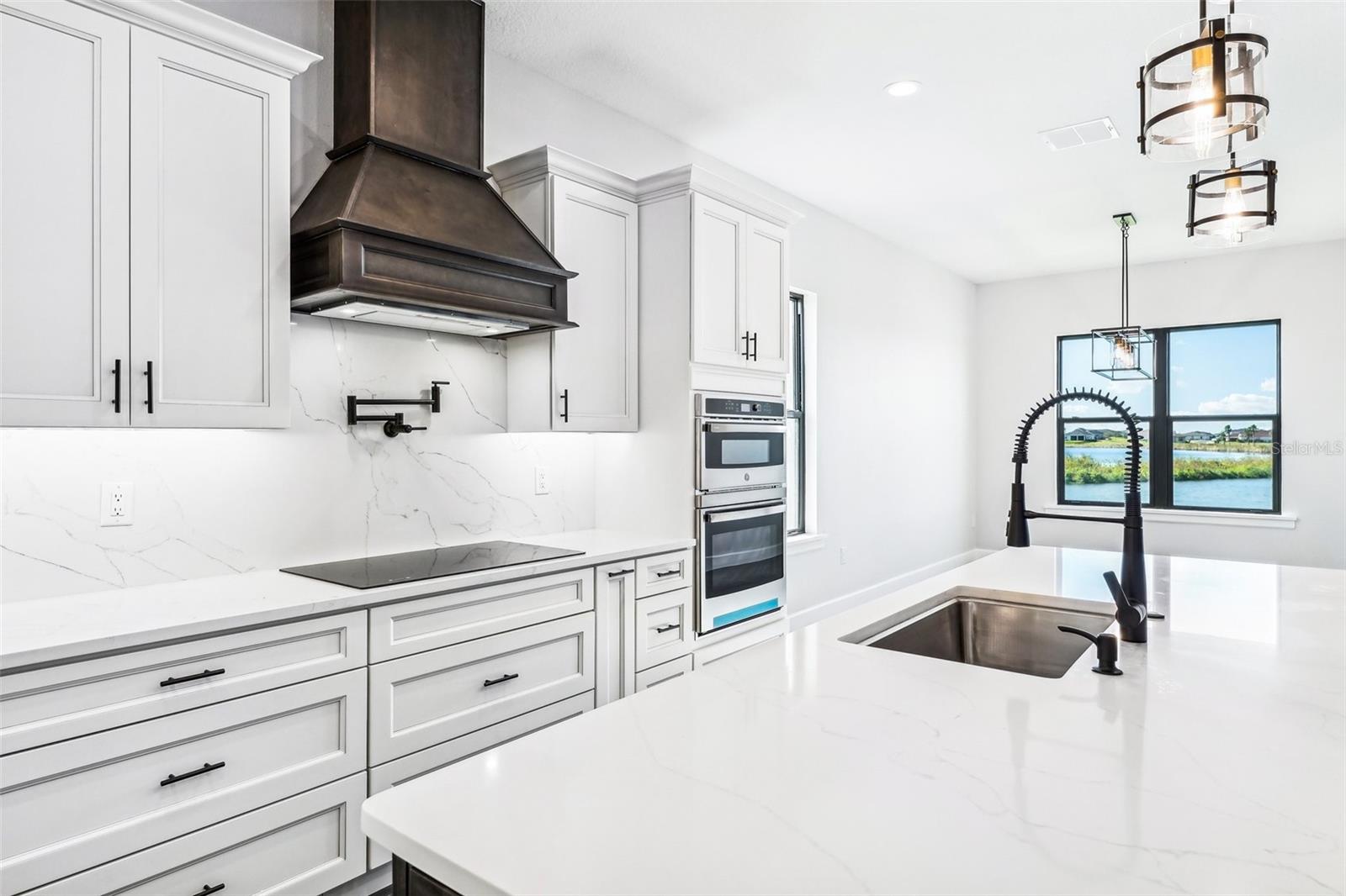 Price Reduction...Welcome the Lilly 2,533 Heated square foot 4 bedrooms, 3 full bathrooms, lakeview contemporary home designed for comfort and style. This new construction open concept living area flows from a spacious living room to a deluxe kitchen and dining space with easy access to a screened covered lanai. The kitchen which is enhanced by a premium Stainless Steel GE PROFILE ® Smart Kitchen appliance package including French-Door, ENERGY STAR® 4 doors Refrigerator with Door In Door, built-in, touch-control electric cooktop and an IKTCH variable speed Hood enclosed in a decorative Charcoal Grey enclosure, pot filler over the cooktop, a set of wall Microwave and oven, 3 drawers Dish washer, large walk-in pantry with decorative glass door and shelves, Blanc white high-quality quartz COUNTERTOP and back splash, FOREVERMARK Shaker, Bi-color, solid wood countertops with SOFT CLOSE hinges, KOHLER grade 18 stainless steel under-mounted sink finished with a SEMI-PROFESSIONAL Dark finish KOHLER faucet with 2 functions, a built in breakfast bar. Top of the line PGT Insulated windows are installed in all windows including the 3-panel, double-pane, insulated sliding doors that open to a screened rear lanai, prepped for an outdoor kitchen and overlooking a breathtaking sunset views over the lake finished with a 24X24 pavers installed on the floor. The split-bedroom floor plan offers privacy and tranquility, especially with a master suite featuring an unobstructed lake view, an en-suite bathroom, and a spacious walk-in closet with stylish shelves for organized elegance. Perfect for multi-generational living or remote work, the home includes an in-law suite with a separate entrance that can easily transform into a private office. Smart features abound, from the Cat 5 Ethernet/data cable for seamless connectivity to the energy-efficient AO Smith 80-gallon hybrid water heater and 16 SEER TRANE HVAC system with a HONEYWELL PRO SMART thermostat. Every detail has been considered, including Decorative vanity mirrors, premium tile flooring throughout, and an inside laundry room with washer and dryer hook-ups and cabinets for Extra storage. The two-car garage has sanded stucco walls, a Modern Faux Wood finish, insulated CLOPAY garage door functioning with a LIFTMASTER garage door opener with WiFi connection, an electric vehicle charging station hook-up and a man Door. All bathrooms are equipped with Top of the line DELTA Dark finish durable faucets. All doors are 8 ft MASONITE solid core doors including a fiber-glass front door with decorative glass. HARBOR BREEZE Ceiling fans with remote control installed in all rooms, KWIKSET dark finish lever/ Hardware in all doors. This exquisite home is located in the upscale gated community of Water Ridge, where residents enjoy an array of top-tier amenities a clubhouse with a spacious gathering room, hosting vibrant community events year-round. For outdoor enjoyment, residents have access to 3 sparkling community pools, lighted tennis courts, basketball courts, fitness center, sauna. Water enthusiasts can take advantage of 3 fishing piers and 2 community boat ramps to access 2 huge lakes for endless water activities. Water Ridge is golf cart-friendly. The community is 45 min away from Disney, 25 min from Legoland, 15 min from Publix and Suntrax, 20 min from Jack Brack seaplane base, in proximity to several colleges and universities.