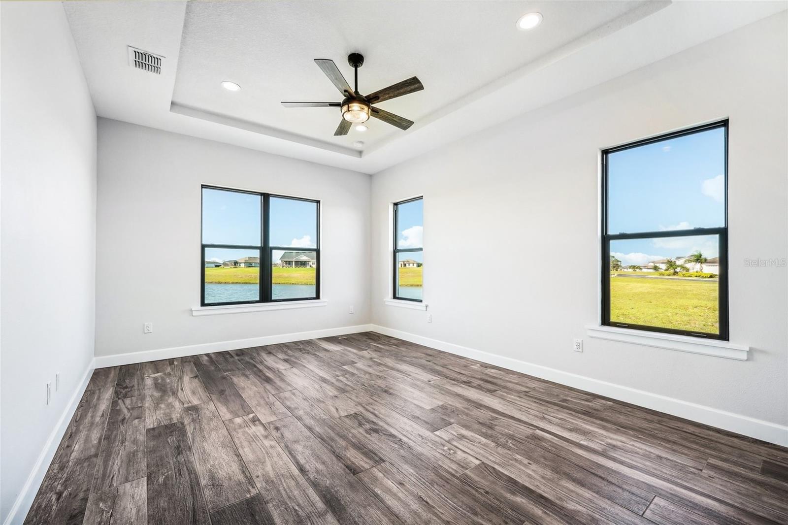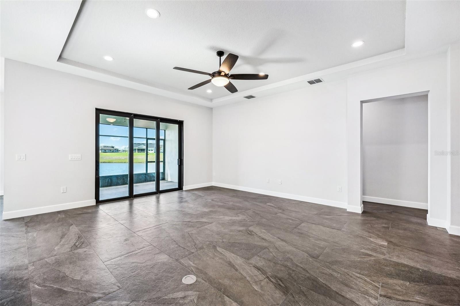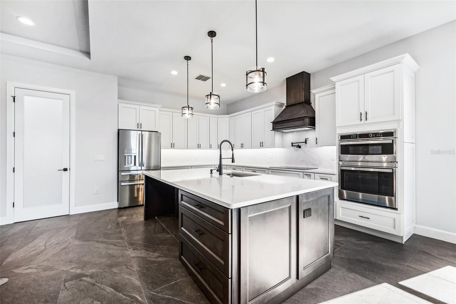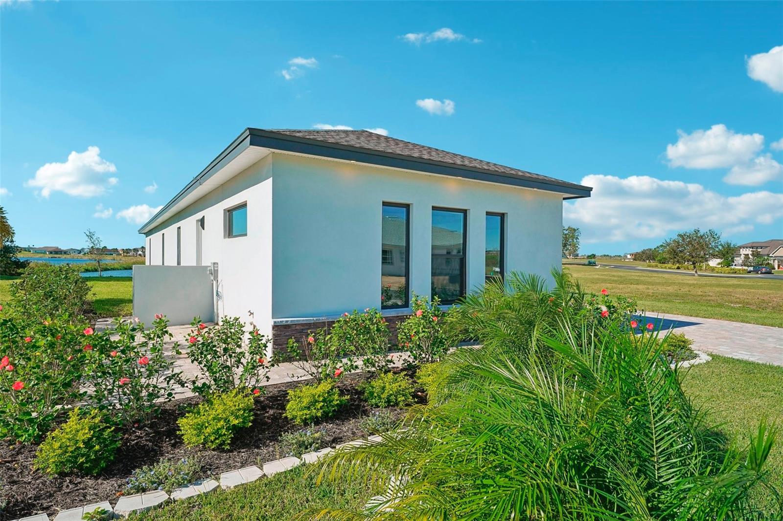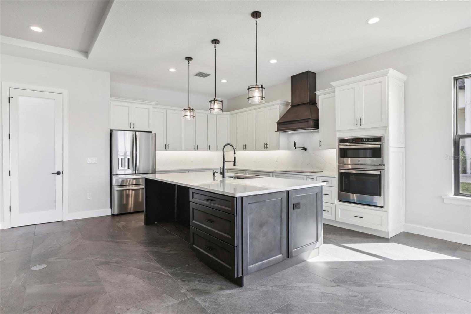 Price Reduction...Welcome the Lilly 2,533 Heated square foot 4 bedrooms, 3 full bathrooms, lakeview contemporary home designed for comfort and style. This new construction open concept living area flows from a spacious living room to a deluxe kitchen and dining space with easy access to a screened covered lanai. The kitchen which is enhanced by a premium Stainless Steel GE PROFILE ® Smart Kitchen appliance package including French-Door, ENERGY STAR® 4 doors Refrigerator with Door In Door, built-in, touch-control electric cooktop and an IKTCH variable speed Hood enclosed in a decorative Charcoal Grey enclosure, pot filler over the cooktop, a set of wall Microwave and oven, 3 drawers Dish washer, large walk-in pantry with decorative glass door and shelves, Blanc white high-quality quartz COUNTERTOP and back splash, FOREVERMARK Shaker, Bi-color, solid wood countertops with SOFT CLOSE hinges, KOHLER grade 18 stainless steel under-mounted sink finished with a SEMI-PROFESSIONAL Dark finish KOHLER faucet with 2 functions, a built in breakfast bar. Top of the line PGT Insulated windows are installed in all windows including the 3-panel, double-pane, insulated sliding doors that open to a screened rear lanai, prepped for an outdoor kitchen and overlooking a breathtaking sunset views over the lake finished with a 24X24 pavers installed on the floor. The split-bedroom floor plan offers privacy and tranquility, especially with a master suite featuring an unobstructed lake view, an en-suite bathroom, and a spacious walk-in closet with stylish shelves for organized elegance. Perfect for multi-generational living or remote work, the home includes an in-law suite with a separate entrance that can easily transform into a private office. Smart features abound, from the Cat 5 Ethernet/data cable for seamless connectivity to the energy-efficient AO Smith 80-gallon hybrid water heater and 16 SEER TRANE HVAC system with a HONEYWELL PRO SMART thermostat. Every detail has been considered, including Decorative vanity mirrors, premium tile flooring throughout, and an inside laundry room with washer and dryer hook-ups and cabinets for Extra storage. The two-car garage has sanded stucco walls, a Modern Faux Wood finish, insulated CLOPAY garage door functioning with a LIFTMASTER garage door opener with WiFi connection, an electric vehicle charging station hook-up and a man Door. All bathrooms are equipped with Top of the line DELTA Dark finish durable faucets. All doors are 8 ft MASONITE solid core doors including a fiber-glass front door with decorative glass. HARBOR BREEZE Ceiling fans with remote control installed in all rooms, KWIKSET dark finish lever/ Hardware in all doors. This exquisite home is located in the upscale gated community of Water Ridge, where residents enjoy an array of top-tier amenities a clubhouse with a spacious gathering room, hosting vibrant community events year-round. For outdoor enjoyment, residents have access to 3 sparkling community pools, lighted tennis courts, basketball courts, fitness center, sauna. Water enthusiasts can take advantage of 3 fishing piers and 2 community boat ramps to access 2 huge lakes for endless water activities. Water Ridge is golf cart-friendly. The community is 45 min away from Disney, 25 min from Legoland, 15 min from Publix and Suntrax, 20 min from Jack Brack seaplane base, in proximity to several colleges and universities.