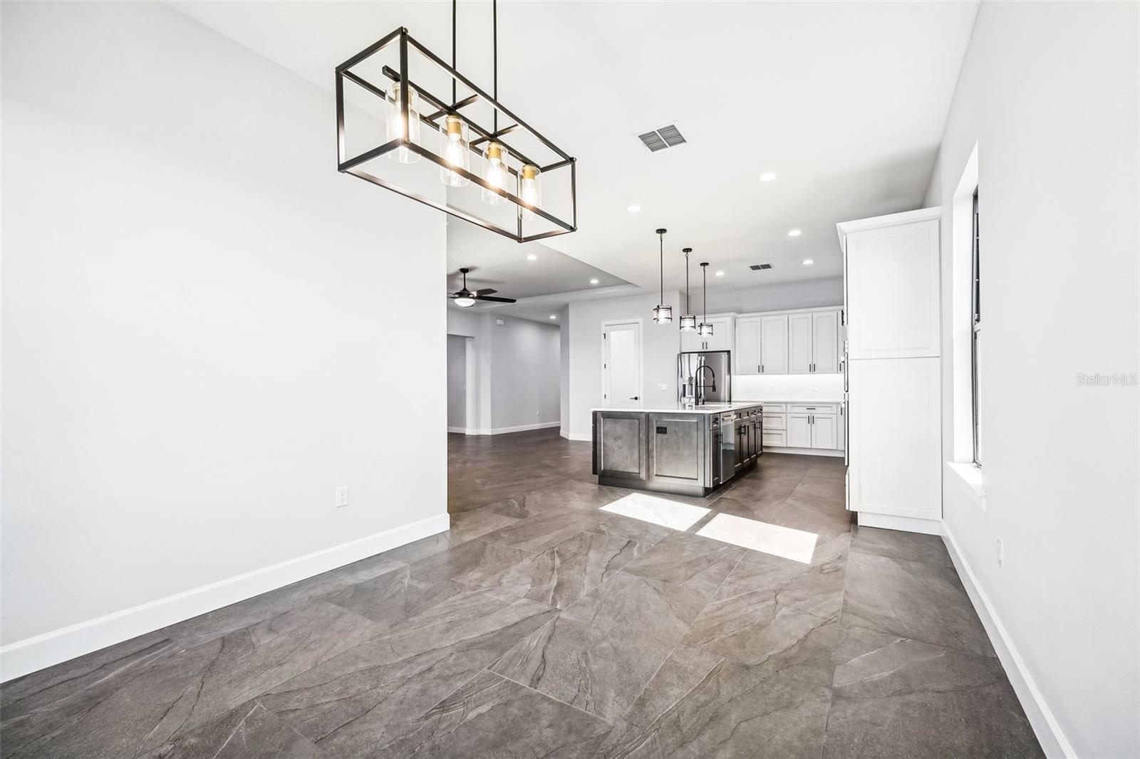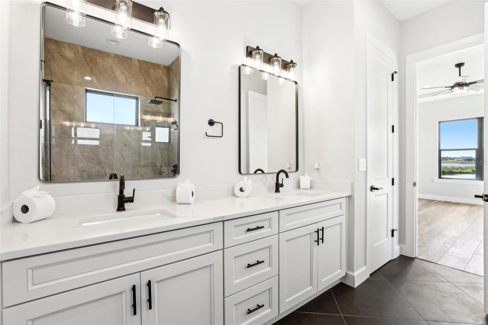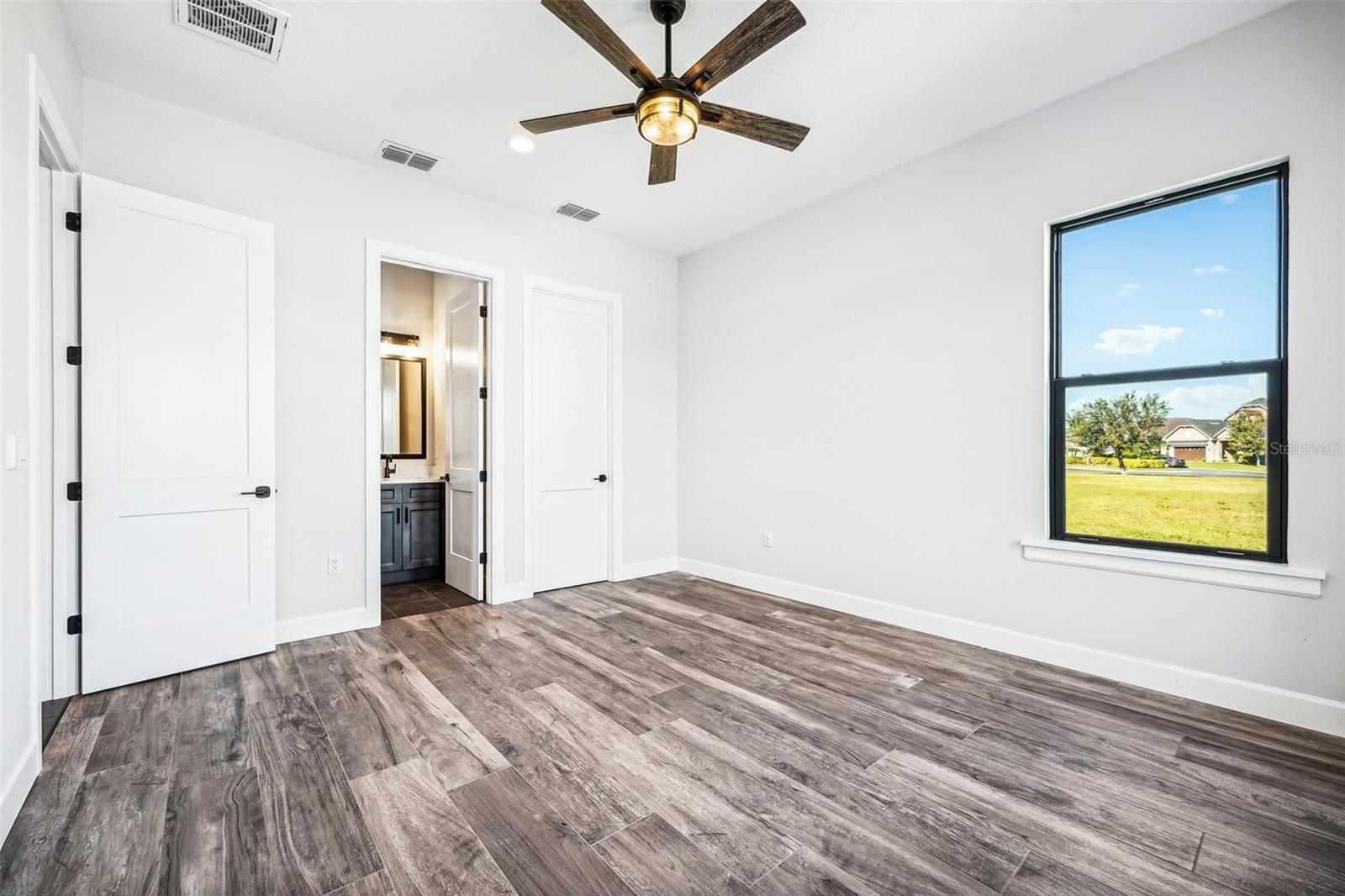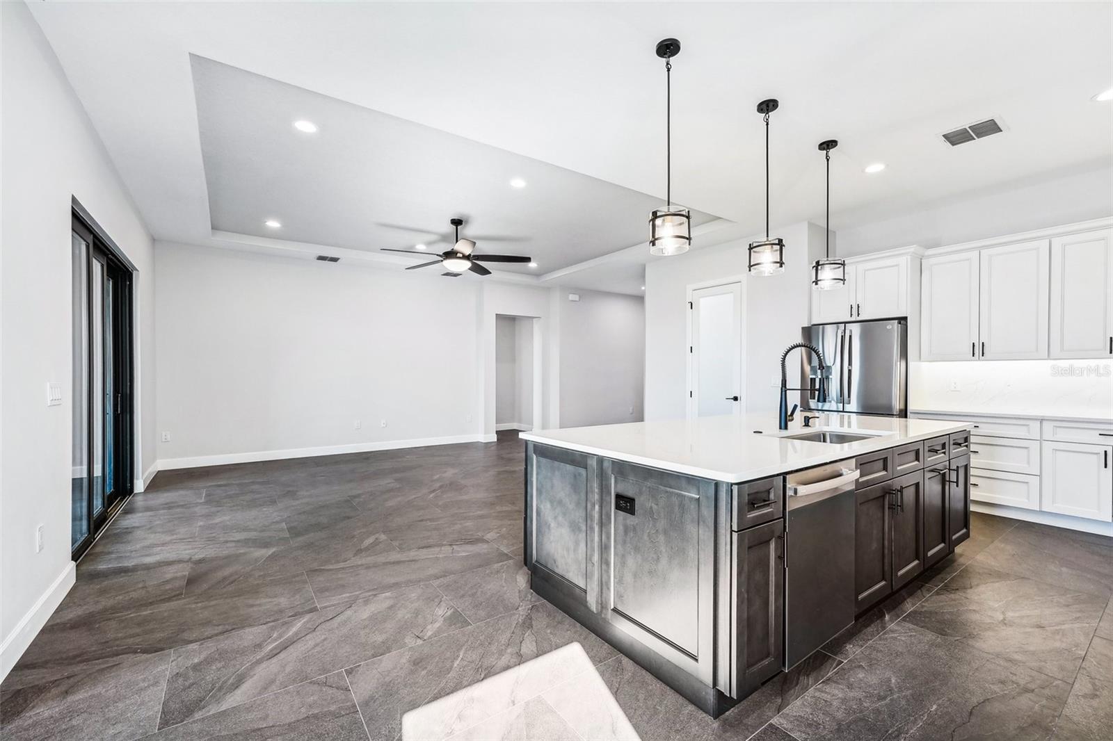 Price Reduction...Welcome the Lilly 2,533 Heated square foot 4 bedrooms, 3 full bathrooms, lakeview contemporary home designed for comfort and style. This new construction open concept living area flows from a spacious living room to a deluxe kitchen and dining space with easy access to a screened covered lanai. The kitchen which is enhanced by a premium Stainless Steel GE PROFILE ® Smart Kitchen appliance package including French-Door, ENERGY STAR® 4 doors Refrigerator with Door In Door, built-in, touch-control electric cooktop and an IKTCH variable speed Hood enclosed in a decorative Charcoal Grey enclosure, pot filler over the cooktop, a set of wall Microwave and oven, 3 drawers Dish washer, large walk-in pantry with decorative glass door and shelves, Blanc white high-quality quartz COUNTERTOP and back splash, FOREVERMARK Shaker, Bi-color, solid wood countertops with SOFT CLOSE hinges, KOHLER grade 18 stainless steel under-mounted sink finished with a SEMI-PROFESSIONAL Dark finish KOHLER faucet with 2 functions, a built in breakfast bar. Top of the line PGT Insulated windows are installed in all windows including the 3-panel, double-pane, insulated sliding doors that open to a screened rear lanai, prepped for an outdoor kitchen and overlooking a breathtaking sunset views over the lake finished with a 24X24 pavers installed on the floor. The split-bedroom floor plan offers privacy and tranquility, especially with a master suite featuring an unobstructed lake view, an en-suite bathroom, and a spacious walk-in closet with stylish shelves for organized elegance. Perfect for multi-generational living or remote work, the home includes an in-law suite with a separate entrance that can easily transform into a private office. Smart features abound, from the Cat 5 Ethernet/data cable for seamless connectivity to the energy-efficient AO Smith 80-gallon hybrid water heater and 16 SEER TRANE HVAC system with a HONEYWELL PRO SMART thermostat. Every detail has been considered, including Decorative vanity mirrors, premium tile flooring throughout, and an inside laundry room with washer and dryer hook-ups and cabinets for Extra storage. The two-car garage has sanded stucco walls, a Modern Faux Wood finish, insulated CLOPAY garage door functioning with a LIFTMASTER garage door opener with WiFi connection, an electric vehicle charging station hook-up and a man Door. All bathrooms are equipped with Top of the line DELTA Dark finish durable faucets. All doors are 8 ft MASONITE solid core doors including a fiber-glass front door with decorative glass. HARBOR BREEZE Ceiling fans with remote control installed in all rooms, KWIKSET dark finish lever/ Hardware in all doors. This exquisite home is located in the upscale gated community of Water Ridge, where residents enjoy an array of top-tier amenities a clubhouse with a spacious gathering room, hosting vibrant community events year-round. For outdoor enjoyment, residents have access to 3 sparkling community pools, lighted tennis courts, basketball courts, fitness center, sauna. Water enthusiasts can take advantage of 3 fishing piers and 2 community boat ramps to access 2 huge lakes for endless water activities. Water Ridge is golf cart-friendly. The community is 45 min away from Disney, 25 min from Legoland, 15 min from Publix and Suntrax, 20 min from Jack Brack seaplane base, in proximity to several colleges and universities.