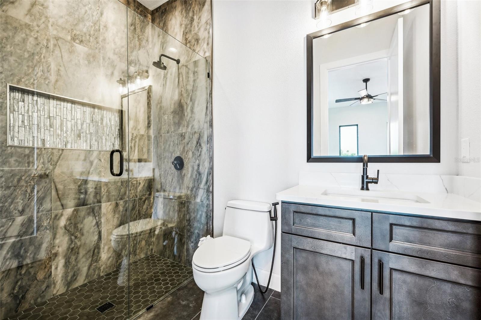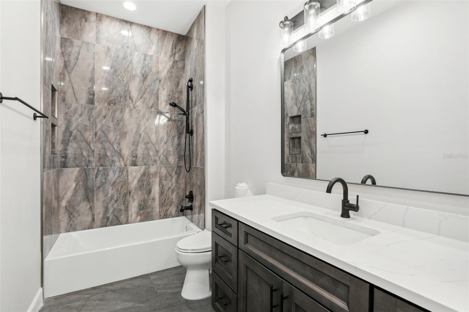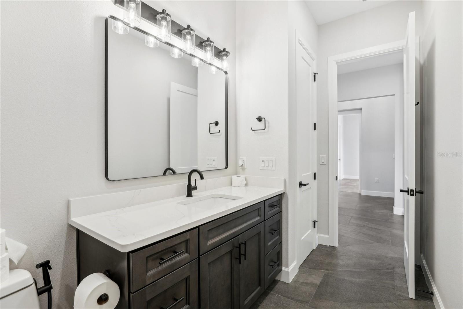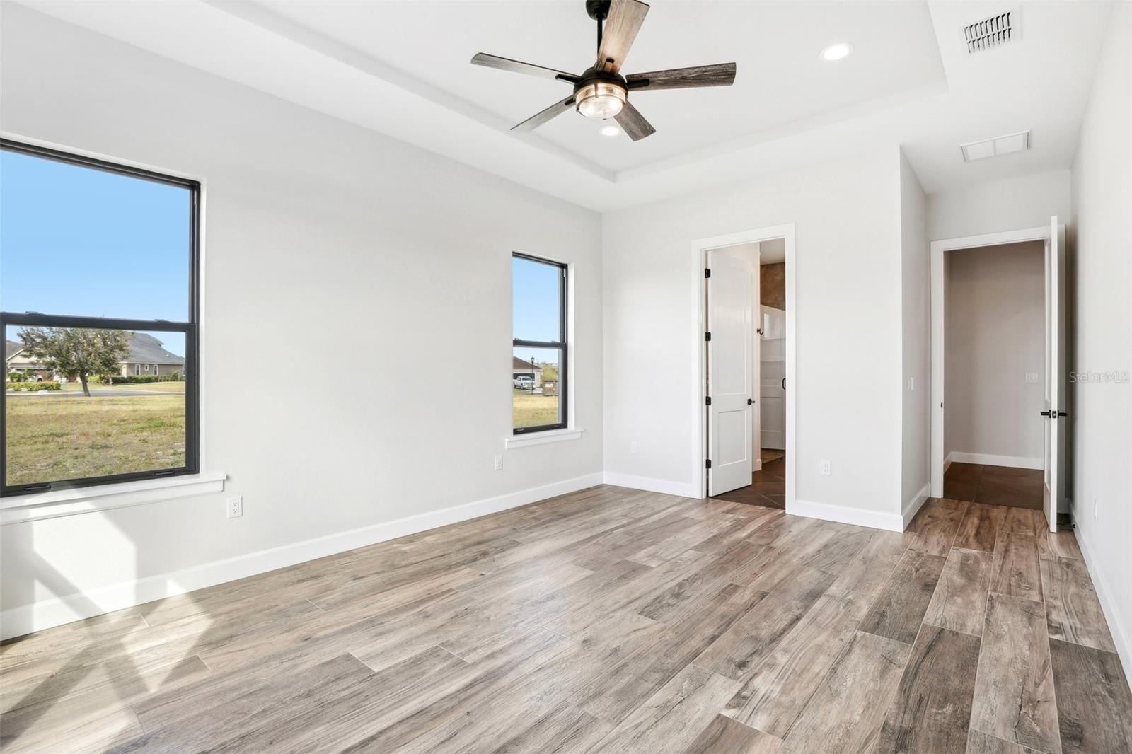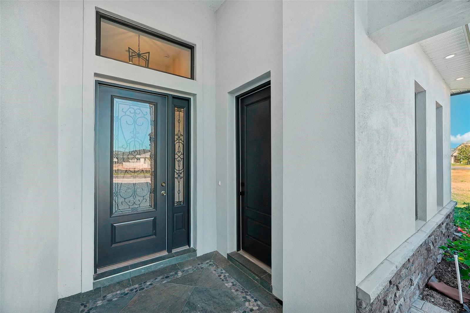 Price Reduction...Welcome the Lilly 2,533 Heated square foot 4 bedrooms, 3 full bathrooms, lakeview contemporary home designed for comfort and style. This new construction open concept living area flows from a spacious living room to a deluxe kitchen and dining space with easy access to a screened covered lanai. The kitchen which is enhanced by a premium Stainless Steel GE PROFILE ® Smart Kitchen appliance package including French-Door, ENERGY STAR® 4 doors Refrigerator with Door In Door, built-in, touch-control electric cooktop and an IKTCH variable speed Hood enclosed in a decorative Charcoal Grey enclosure, pot filler over the cooktop, a set of wall Microwave and oven, 3 drawers Dish washer, large walk-in pantry with decorative glass door and shelves, Blanc white high-quality quartz COUNTERTOP and back splash, FOREVERMARK Shaker, Bi-color, solid wood countertops with SOFT CLOSE hinges, KOHLER grade 18 stainless steel under-mounted sink finished with a SEMI-PROFESSIONAL Dark finish KOHLER faucet with 2 functions, a built in breakfast bar. Top of the line PGT Insulated windows are installed in all windows including the 3-panel, double-pane, insulated sliding doors that open to a screened rear lanai, prepped for an outdoor kitchen and overlooking a breathtaking sunset views over the lake finished with a 24X24 pavers installed on the floor. The split-bedroom floor plan offers privacy and tranquility, especially with a master suite featuring an unobstructed lake view, an en-suite bathroom, and a spacious walk-in closet with stylish shelves for organized elegance. Perfect for multi-generational living or remote work, the home includes an in-law suite with a separate entrance that can easily transform into a private office. Smart features abound, from the Cat 5 Ethernet/data cable for seamless connectivity to the energy-efficient AO Smith 80-gallon hybrid water heater and 16 SEER TRANE HVAC system with a HONEYWELL PRO SMART thermostat. Every detail has been considered, including Decorative vanity mirrors, premium tile flooring throughout, and an inside laundry room with washer and dryer hook-ups and cabinets for Extra storage. The two-car garage has sanded stucco walls, a Modern Faux Wood finish, insulated CLOPAY garage door functioning with a LIFTMASTER garage door opener with WiFi connection, an electric vehicle charging station hook-up and a man Door. All bathrooms are equipped with Top of the line DELTA Dark finish durable faucets. All doors are 8 ft MASONITE solid core doors including a fiber-glass front door with decorative glass. HARBOR BREEZE Ceiling fans with remote control installed in all rooms, KWIKSET dark finish lever/ Hardware in all doors. This exquisite home is located in the upscale gated community of Water Ridge, where residents enjoy an array of top-tier amenities a clubhouse with a spacious gathering room, hosting vibrant community events year-round. For outdoor enjoyment, residents have access to 3 sparkling community pools, lighted tennis courts, basketball courts, fitness center, sauna. Water enthusiasts can take advantage of 3 fishing piers and 2 community boat ramps to access 2 huge lakes for endless water activities. Water Ridge is golf cart-friendly. The community is 45 min away from Disney, 25 min from Legoland, 15 min from Publix and Suntrax, 20 min from Jack Brack seaplane base, in proximity to several colleges and universities.