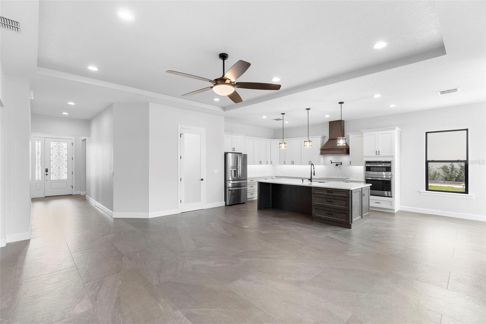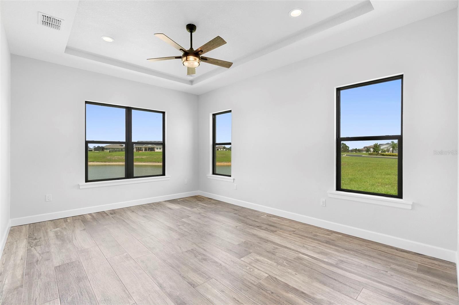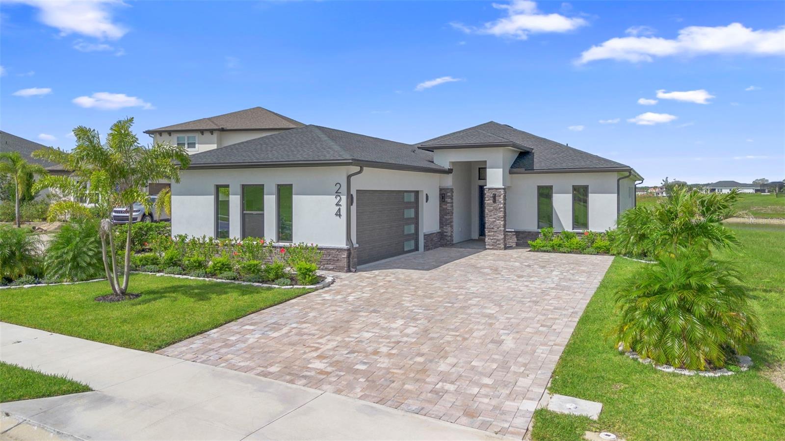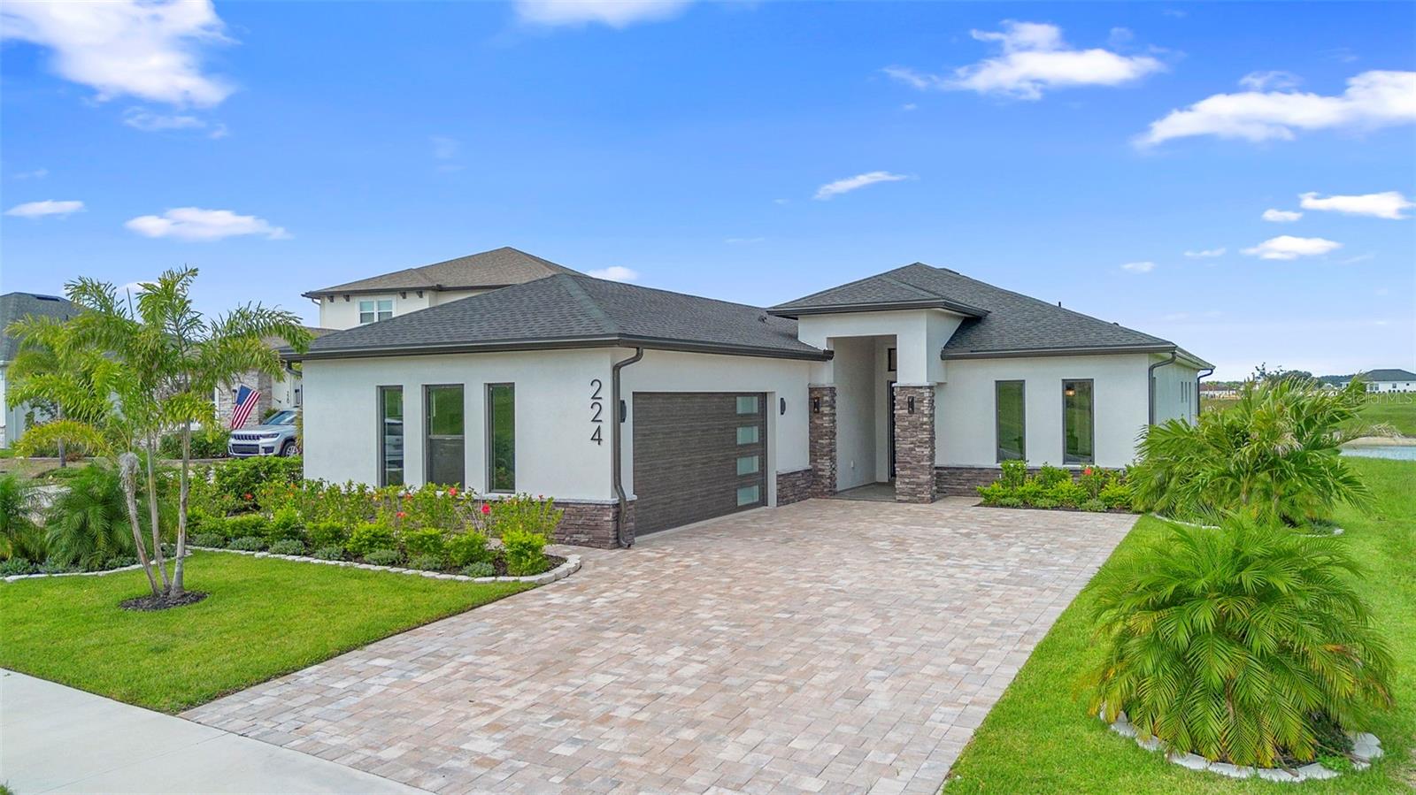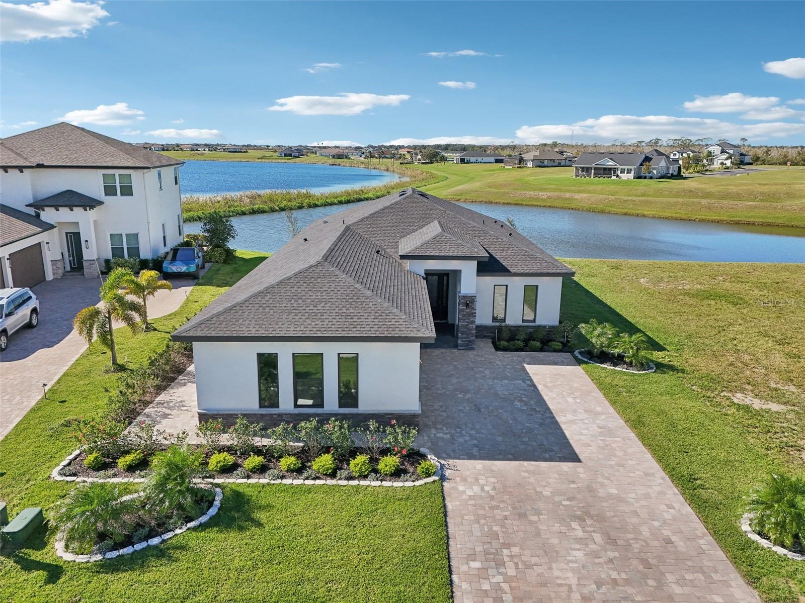 A stunning, New Construction single-family home has been thoughtfully designed with every detail in mind, creating a space that is as functional as it is beautiful. The carefully planned floor plan includes a versatile multi-generational suite with its own private entrance and bathroom—ideal for extended family, guests, or endless other uses, while offering comfort and privacy. A large driveway welcomes you home, providing ample space for multiple cars. Inside, the heart of the home features a gourmet kitchen that will delight any chef, complete with upgraded stainless steel GE Profile appliances, an expansive kitchen island with abundant storage, and custom cabinetry designed for organization. The porcelain tile floors were carefully chosen to complement the finishes and hardware, adding an elegant touch throughout. Enjoy unobstructed views of serene Lake Medora from nearly every room, or step out to the screened lanai, perfectly positioned to capture the beauty of the water. An outdoor kitchen outlet is ready for entertaining, making this the perfect setting for both quiet evenings and lively gatherings. The owner’s suite is a true retreat, showcasing breathtaking lake views, a spacious walk-in closet with custom shelving, and a spa-inspired bathroom. Additional upgrades include finished garage walls with an insulated garage door, a top-of-the-line AO Smith hybrid water heater, energy-efficient insulated windows, and a three-panel sliding door that seamlessly blends indoor and outdoor living. This home is more than a place to live—it’s a lifestyle designed for comfort, luxury, and everyday enjoyment. Just 35 min away from Disney. 50 Min away from Orlando International Airport.