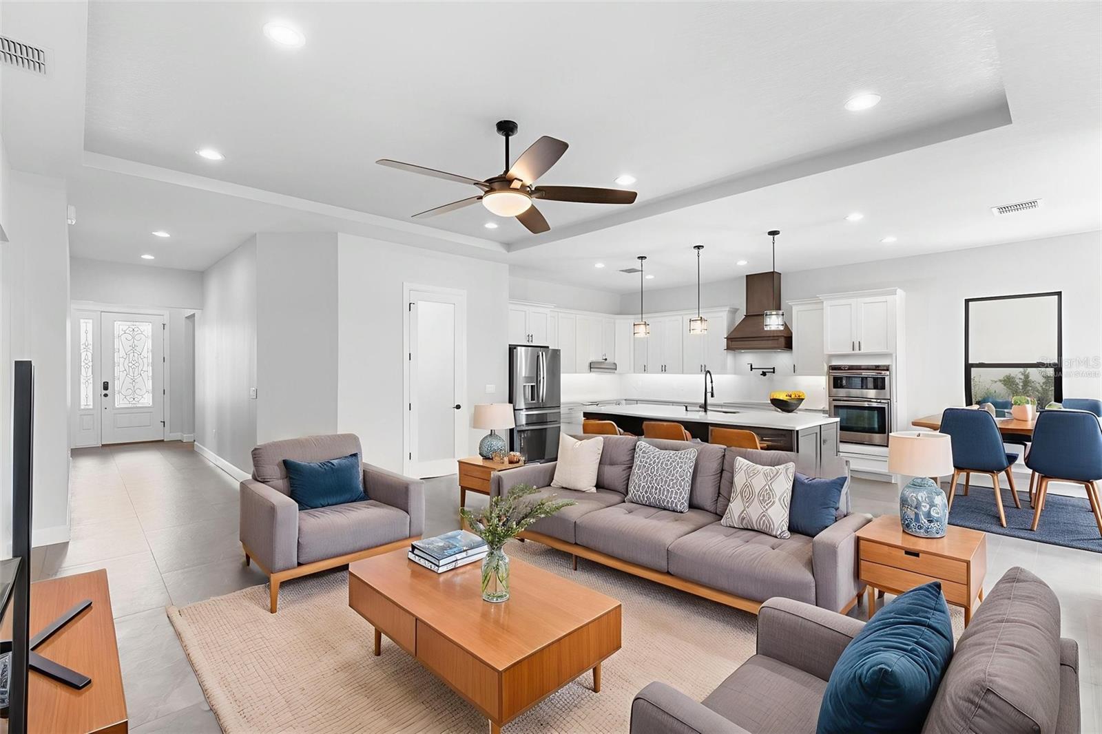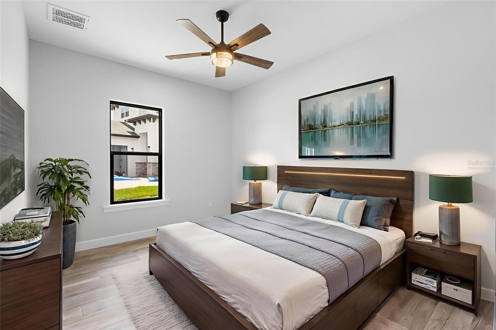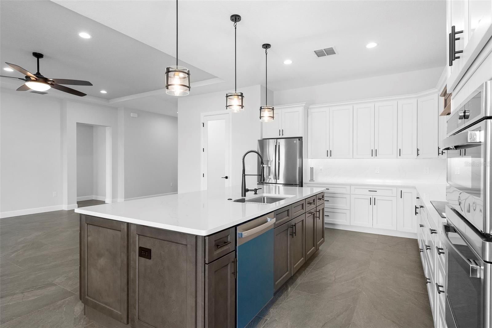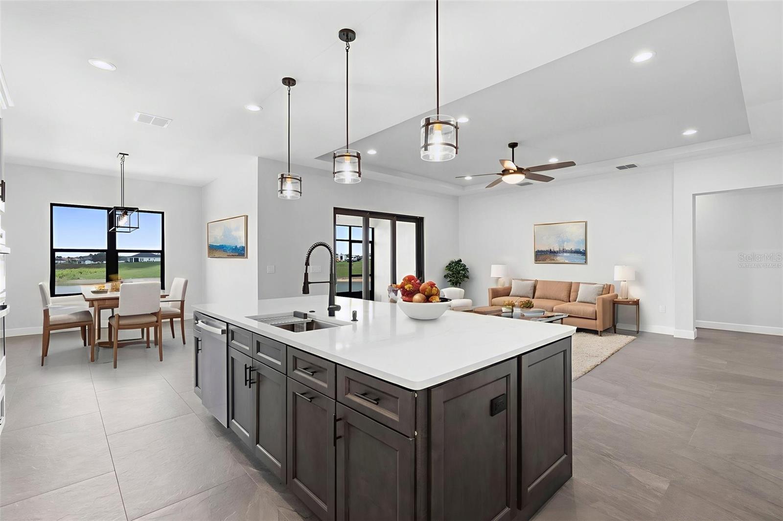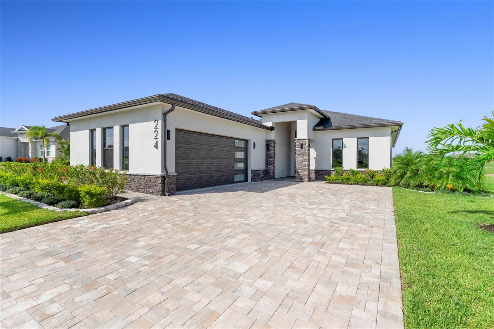 A stunning, New Construction single-family home has been thoughtfully designed with every detail in mind, creating a space that is as functional as it is beautiful. The carefully planned floor plan includes a versatile multi-generational suite with its own private entrance and bathroom—ideal for extended family, guests, or endless other uses, while offering comfort and privacy. A large driveway welcomes you home, providing ample space for multiple cars. Inside, the heart of the home features a gourmet kitchen that will delight any chef, complete with upgraded stainless steel GE Profile appliances, an expansive kitchen island with abundant storage, and custom cabinetry designed for organization. The porcelain tile floors were carefully chosen to complement the finishes and hardware, adding an elegant touch throughout. Enjoy unobstructed views of serene Lake Medora from nearly every room, or step out to the screened lanai, perfectly positioned to capture the beauty of the water. An outdoor kitchen outlet is ready for entertaining, making this the perfect setting for both quiet evenings and lively gatherings. The owner’s suite is a true retreat, showcasing breathtaking lake views, a spacious walk-in closet with custom shelving, and a spa-inspired bathroom. Additional upgrades include finished garage walls with an insulated garage door, a top-of-the-line AO Smith hybrid water heater, energy-efficient insulated windows, and a three-panel sliding door that seamlessly blends indoor and outdoor living. This home is more than a place to live—it’s a lifestyle designed for comfort, luxury, and everyday enjoyment. Just 35 min away from Disney. 50 Min away from Orlando International Airport.