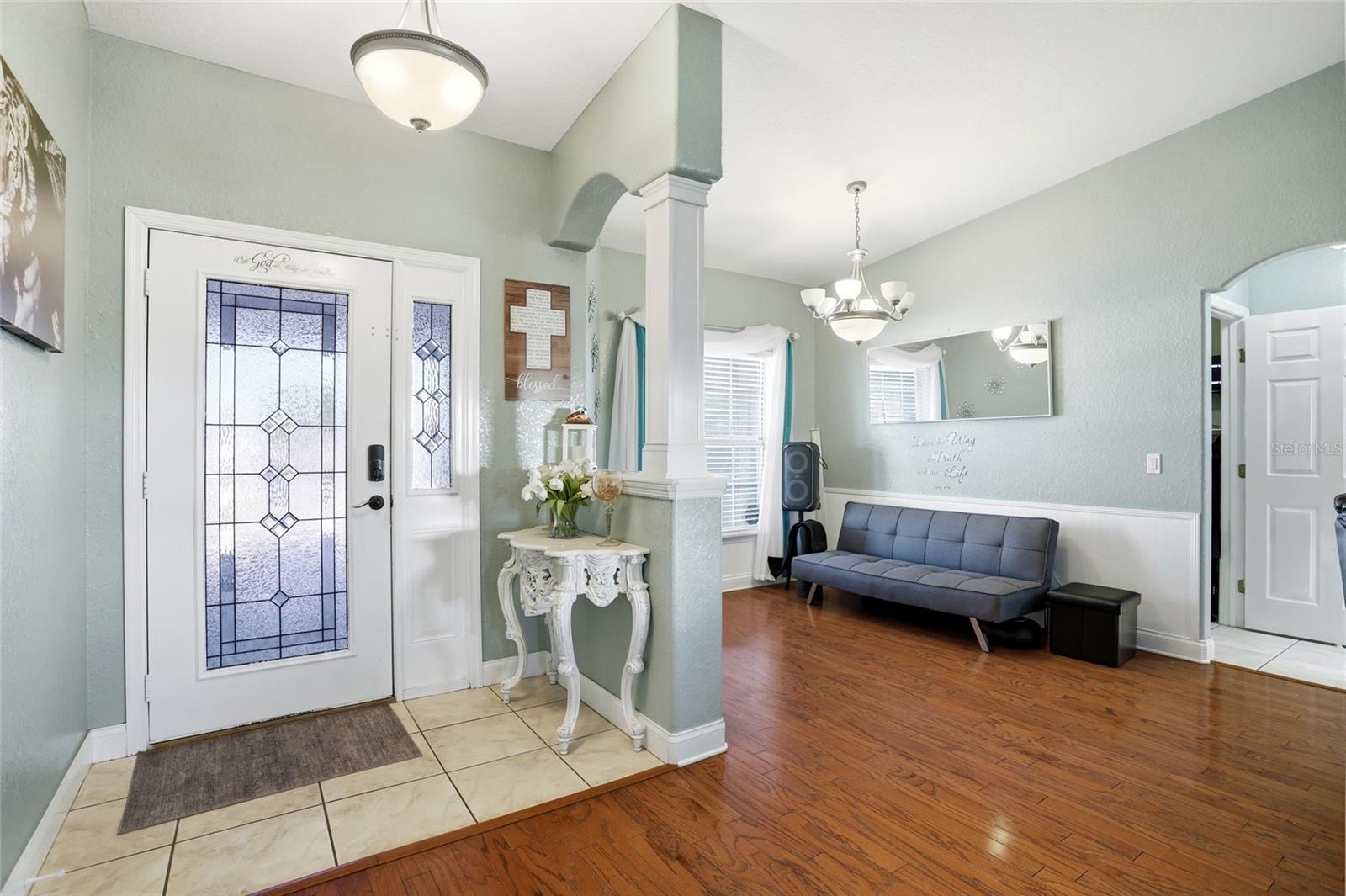 BACK ON THE MARKET! WON'T LAST! Price reduced by $18,000 and priced aggressively to sell! Beautifully renovated 3-bedroom, 2-bathroom pool home with 2-car garage on a desirable corner lot in Bentley Oaks. Over $40,000 in recent upgrades and an estimated appraised value above $381,800 provide built-in equity and great value. Features include fresh landscaping with decorative rock accents, a new palm tree, and a paver circular driveway leading to covered porches. Interior highlights include tile flooring, vaulted ceilings, and abundant natural light. The split plan offers a spacious primary suite with trey ceilings, dual walk-in closets, dual sinks, a garden tub, and tiled rain shower. The kitchen has stainless steel appliances, a smart refrigerator, tiled backsplash, and breakfast nook. Enjoy the screened-in pool, covered patio, and vinyl-fenced backyard. Newer roof (2022), new A/C (Oct 2023), and security system add peace of mind. Minutes from downtown Auburndale, Lake Alfred, schools, shopping, and Polk County?s cable water park. One or more photos have been virtually staged.