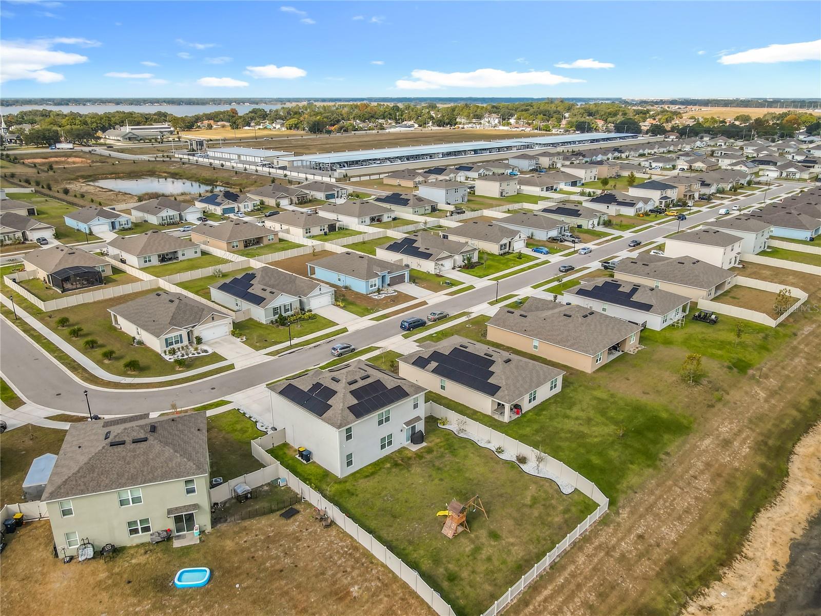Discover this impressive home in a quaint and charming community ideally between Orlando and Tampa. With easy access to Interstate 4 and just 30 minutes from Walt Disney World®, this location offers the ideal blend of convenience and Central Florida living. Residents also enjoy nearby parks, recreation, and the vibrant restaurants and shops of downtown Auburndale, just minutes away. Set within a community featuring a refreshing pool and cabana, this home showcases peaceful water views and no rear neighbors, providing exceptional privacy and serenity. This impressive, all-concrete-block-constructed single-family home offers five bedrooms and three baths, thoughtfully designed to maximize space and comfort with an open-concept layout. The kitchen overlooks the dining and great room, creating an inviting space for entertaining and everyday living. Ample windows and glass doors fill the home with natural light, while the backyard provides a large, versatile space for outdoor enjoyment. The well-appointed kitchen features a spacious island with bar seating and plentiful cabinet and counter space, making cooking and hosting effortless. The first floor also includes a flex room, a bedroom and a full bath, ideal for guests or a home office. Upstairs, the primary suite includes an en-suite bath and generous closet space. Three additional bedrooms surround a loft area, offering extra room for a media space, play area or lounge. A full bath and a convenient laundry area complete the second floor. Additional features include a security system, solar panels and a smart home technology package, allowing you to control various home features from your smart device, whether home or away. With its spacious layout, serene water views and conservation views, this home is a place to enjoy comfort, style and wonderful Florida living.