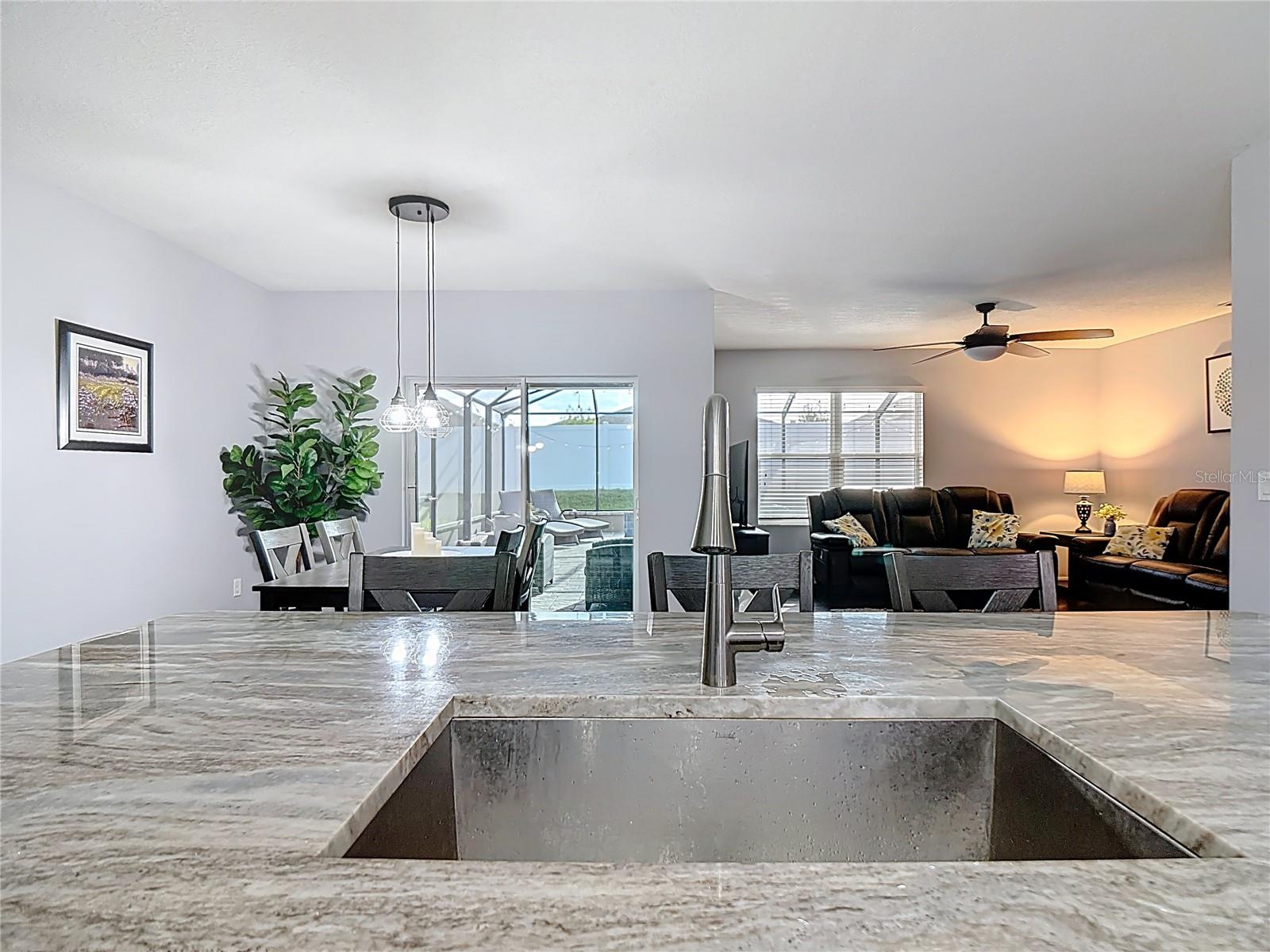 Amazing sparkling POOL HOME! This beautifully upgraded 4/2 split floorplan retreat in the serene community of Lake Van features a NEWER ROOF (2023) for additional peace of mind, and tasteful design elements such as new interior neutral paint, marble-like granite counter tops and island in the kitchen with farmhouse style sink, large walk-in pantry, FINGERPRINT RESISTANT STEEL GE APPLIANCES and included WASHER AND DRYER! Ceramic tile throughout and plush carpet in the bedrooms. As you walk in, you are greeted by a large foyer, and down the wide hallway, the open floor plan makes the home feel light and spacious, and the living and dining room flow together perfectly for entertaining family and friends. The sliding doors open to your own super private oasis, where your covered lanai and deck with pavers provide additional seating space, a shed for storage, and enjoy swimming and relaxing in the 14 x 28 HEATED SALT WATER POOL, where the whole backyard is surrounded by a high vinyl fence, shielding the rest of the world from view. The primary bedroom offers generous space for larger furniture pieces and includes a luxurious en suite bath featuring a walk-in shower with elegant subway tile and a built-in seat, a dual-sink vanity, a private toilet room, and an expansive walk-in closet. Three additional bedrooms provide comfortable, well-sized accommodations, while the hallway guest bathroom showcases granite countertops and a bathtub-shower combo with a stylish subway-tile surround. A 2 car garage rounds off this ideal home for the Florida Lifestyle. The LOW HOA community includes a playground and lake access. Conveniently located near I-4, makes for effortless commute to both Tampa and Orlando, while placing you just minutes from popular attractions and everyday conveniences. Enjoy nearby outdoor destinations such as Auburndale City Park, known for its playgrounds, picnic areas, and community events, as well as Lake Myrtle Sports Park, a major hub for soccer, baseball, and local tournaments. You’ll also be close to beautiful lakes like Lake Ariana, perfect for fishing, boating, and relaxing by the water. For dining, shopping, and local flavor, Auburndale’s downtown offers beloved spots such as Peebles Bar-B-Q, Haven Coffee Roastery & Bakery, and The Shake Shoppe. Don’t miss out on the chance to live near all the recreation, charm, and convenience this thriving Central Florida town presents —schedule your showing today!