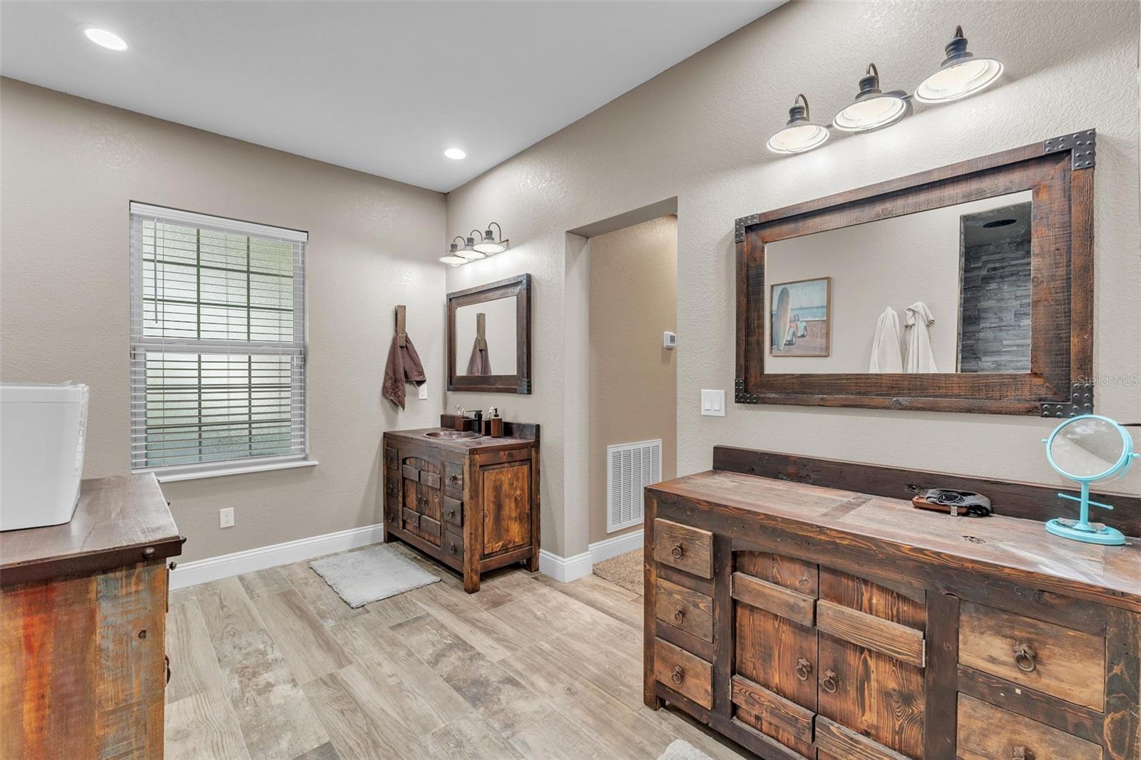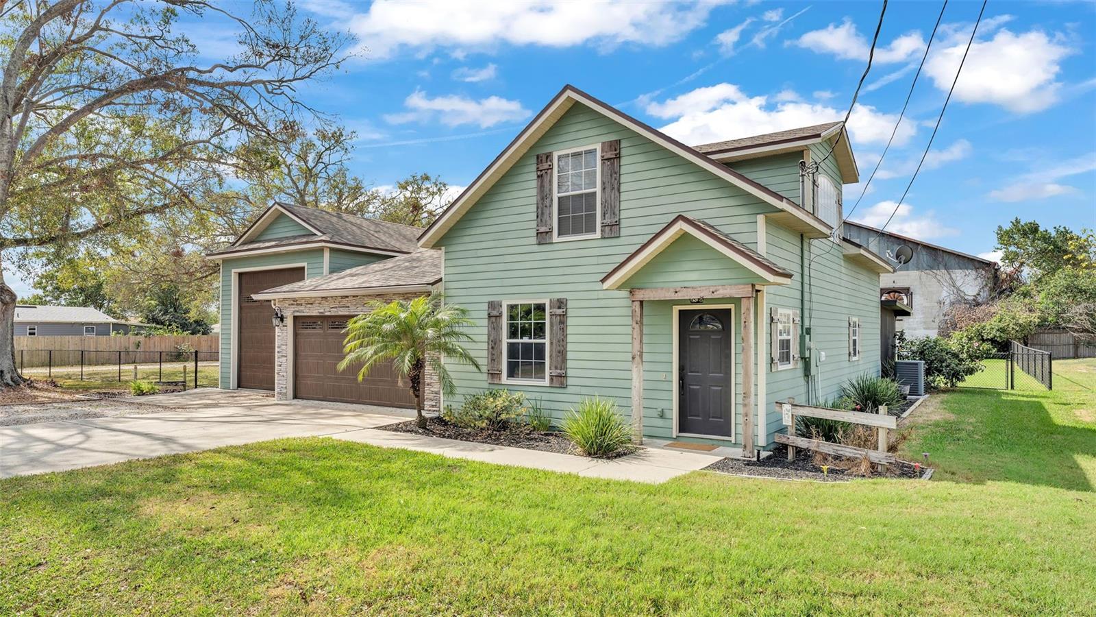 Welcome to this beautifully captivating home offering luxury and rustic appeal. This exquisite home provides three bedrooms with the primary bedroom located on the first floor and features a delightful bathroom which includes a shower with stone walls and a walk-in closet. This stunningly unique bathroom exudes luxury and comfort with gorgeous dual vanities. There are two bedrooms located on the second floor with a bathroom offering a split plan. The kitchen offers stainless steel appliances, wood cabinets, granite countertops accentuated with crown molding. After preparing a meal in this exceptional kitchen, you can find your way to an outdoor oasis. The lanai is perfect for a quiet evening enjoying the peace of the outdoors or entertaining family and friends. This home offers a large two car garage with an additional RV/boat garage. The 415 square foot mother-in-law/office suite is located behind the residence and includes a bathroom and prewiring for a kitchen. The large yard including an additional lot, offers a cookout area and kennels for dogs or chickens. This custom-designed Craftsman home provides a luxurious residence with expansive property to welcome a garden and chickens! The central location combines a homesteader's heart and a love of richness. Call today to view this beautiful property as it is a once in a lifetime property!