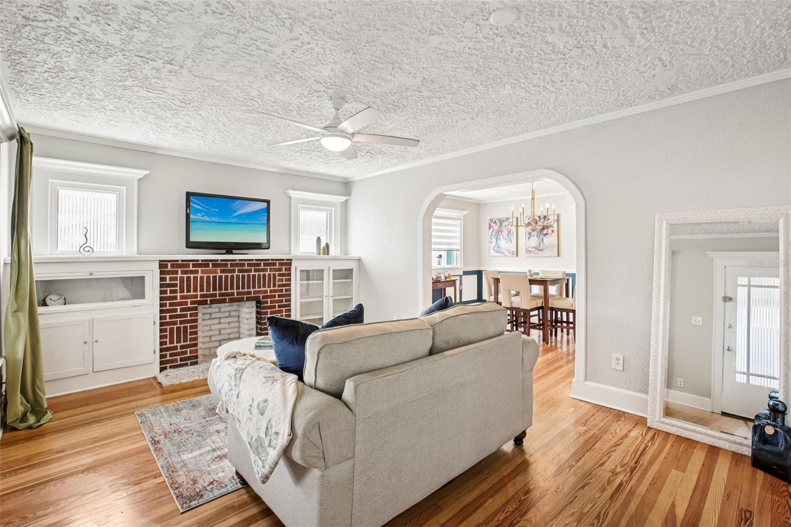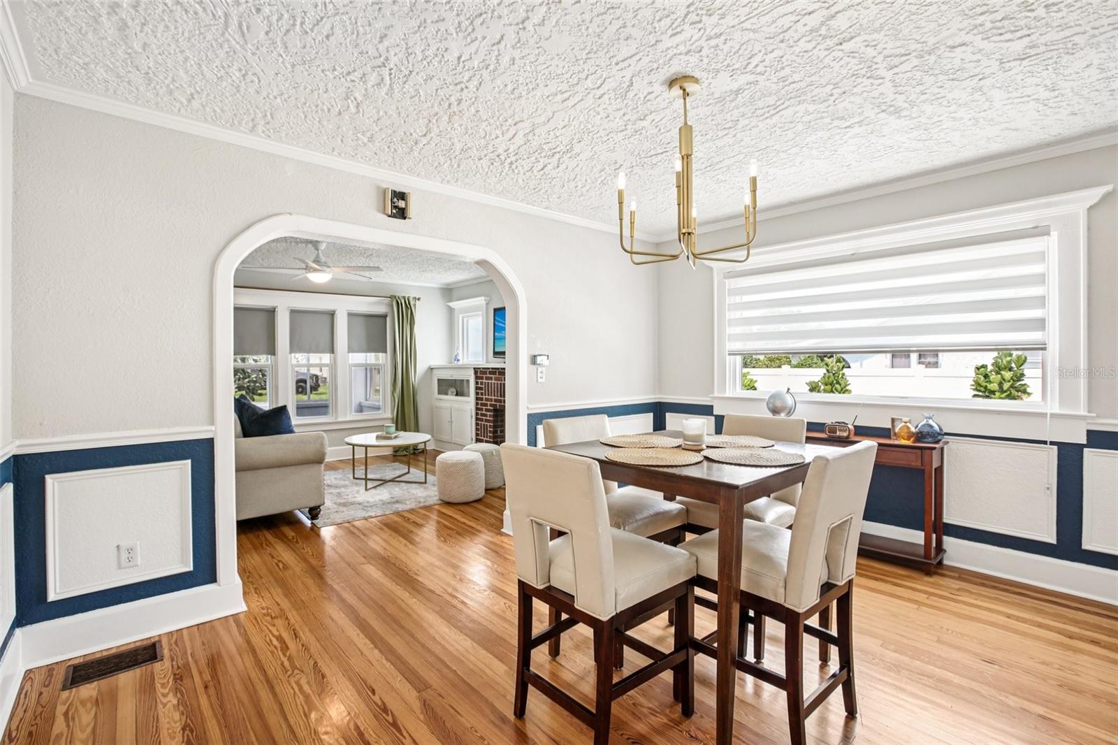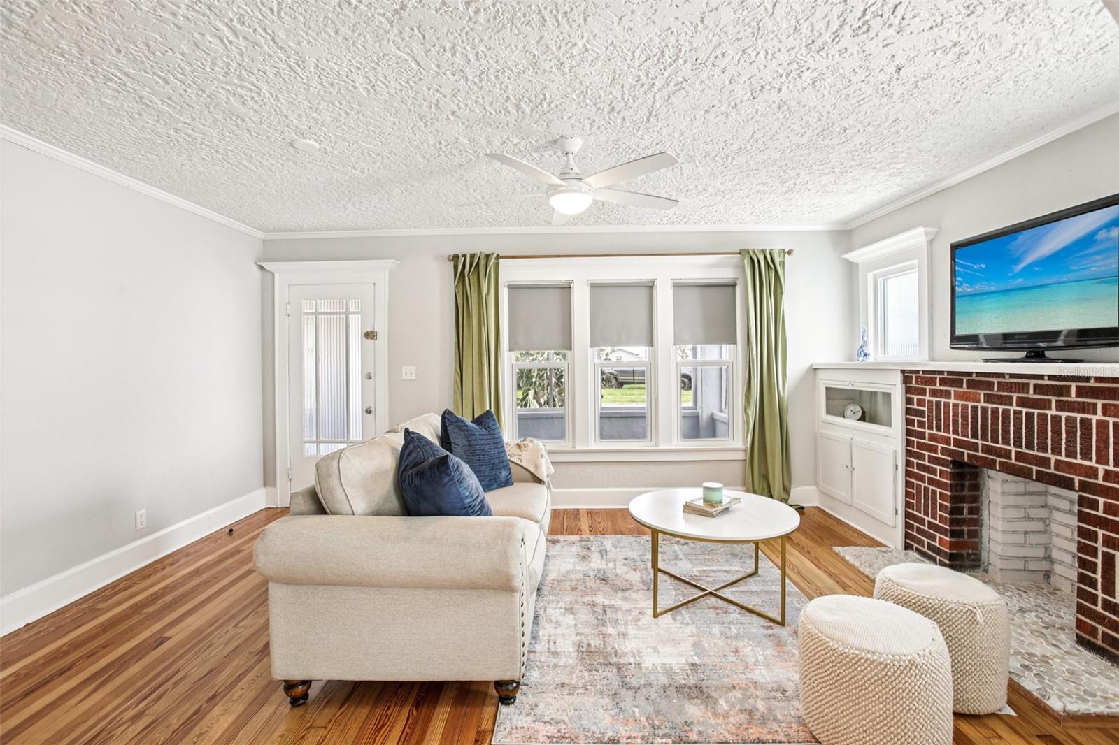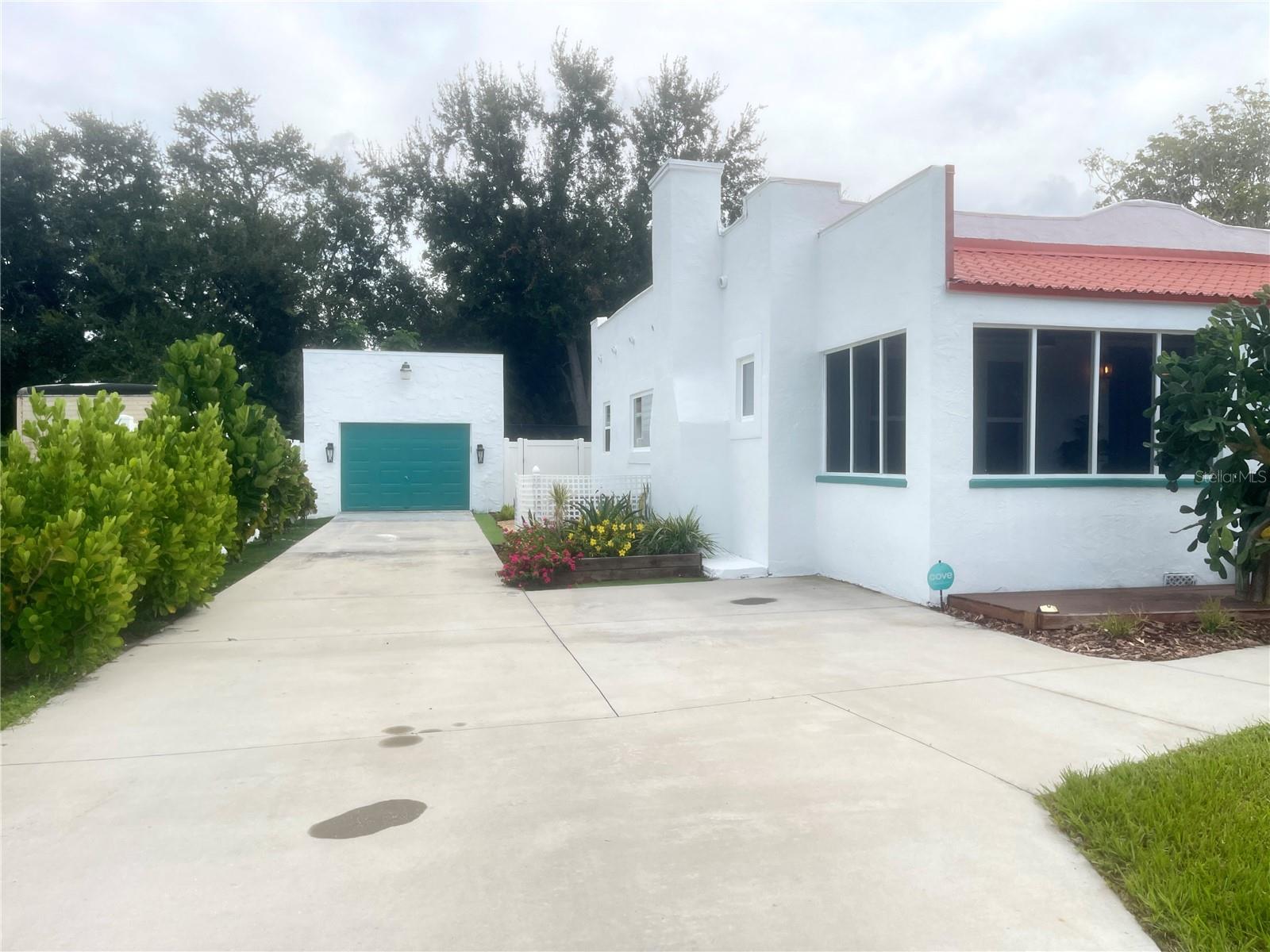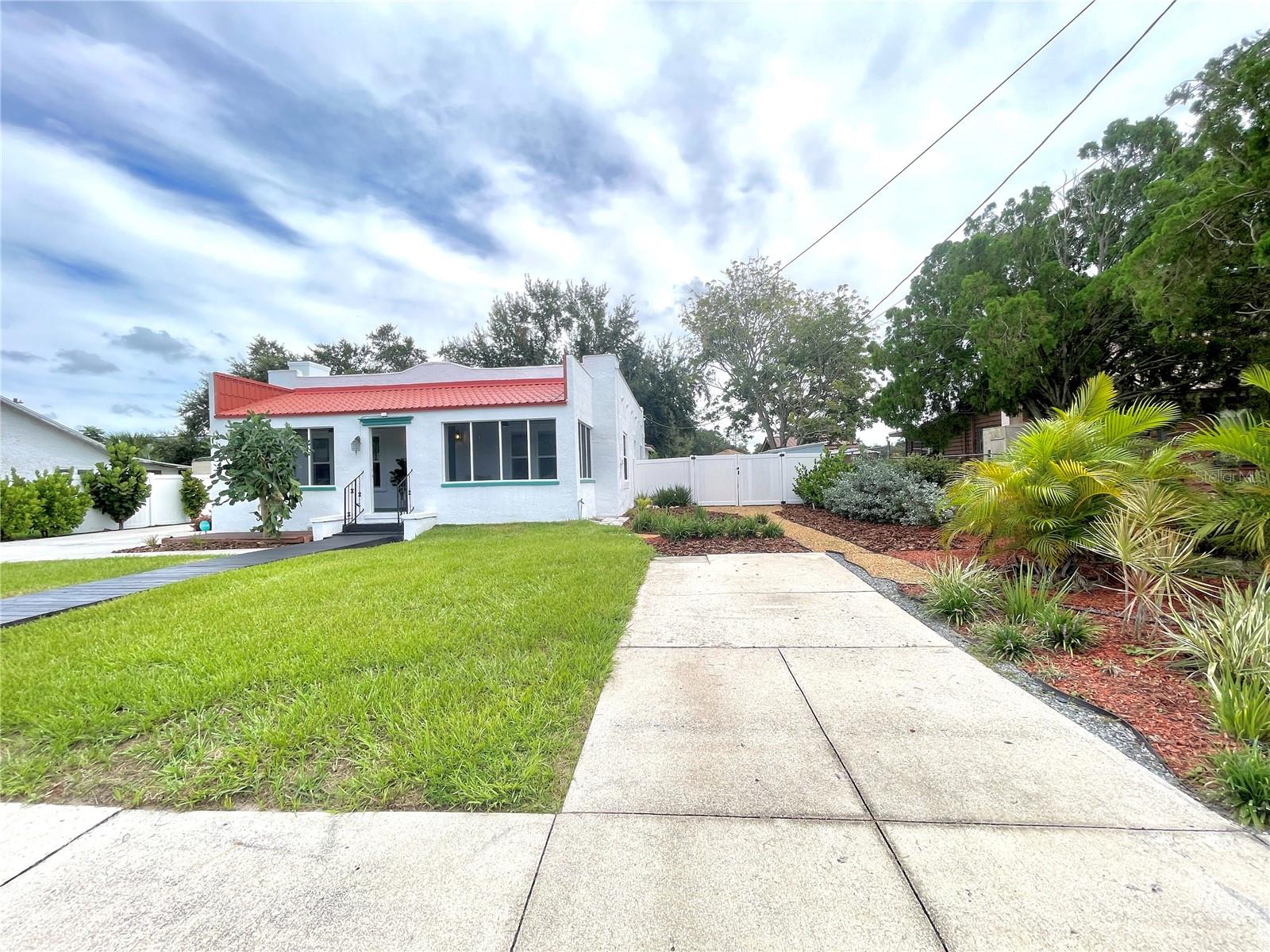 ***MOTIVATED SELLER*** This recently upgraded Spanish-style residence beautifully preserves its original charm. This elegant home features an expansive screened-in front porch, ideal for hosting gatherings. Upon entering, the home's distinctive character is immediately apparent. It boasts wood flooring, soft white walls and ceilings, and complementary bronze and brick finishes, creating a welcoming atmosphere. The striking exposed brick fireplace, flanked by built-in shelving, adds further character to the exceptionally spacious living room. The dining room, accessed through a stunning archway, offers ample space and features two-toned walls with decorative railing, a stylish chandelier, and a panoramic window. The kitchen, accessible via a swing door, is a dream, with chic tiled floors, warm granite countertops, two-toned cabinets with brass hardware, soft-close lower cabinets, stainless steel appliances, and a deep sink. The guest bedroom, located at the front of the house, offers generous space and natural light. The guest bathroom is exquisite, with pendant lighting reflecting off the white and black tile floor, complemented by an elegant clawfoot tub. The master suite immediately draws the eye with its crown molding and tray ceilings, which enhance the room's already impressive size. The en-suite bathroom is equipped with dual vanity granite countertops, a garden tub, and a separate walk-in shower. Additional features include an inside laundry room, a detached one-car garage, with a workshop that was started and a fully fenced backyard oasis's with a fountain. The home has Newer Windows, the AC 2021 with a warranty, the home was Replumed in 2007 with CPVC/PVC, the Electrical Panel was replaced in 2002, the roof is 2014, but was recoated in the last year or two, and the hot water tank 2019. This exceptional home is truly unique and is a must see!