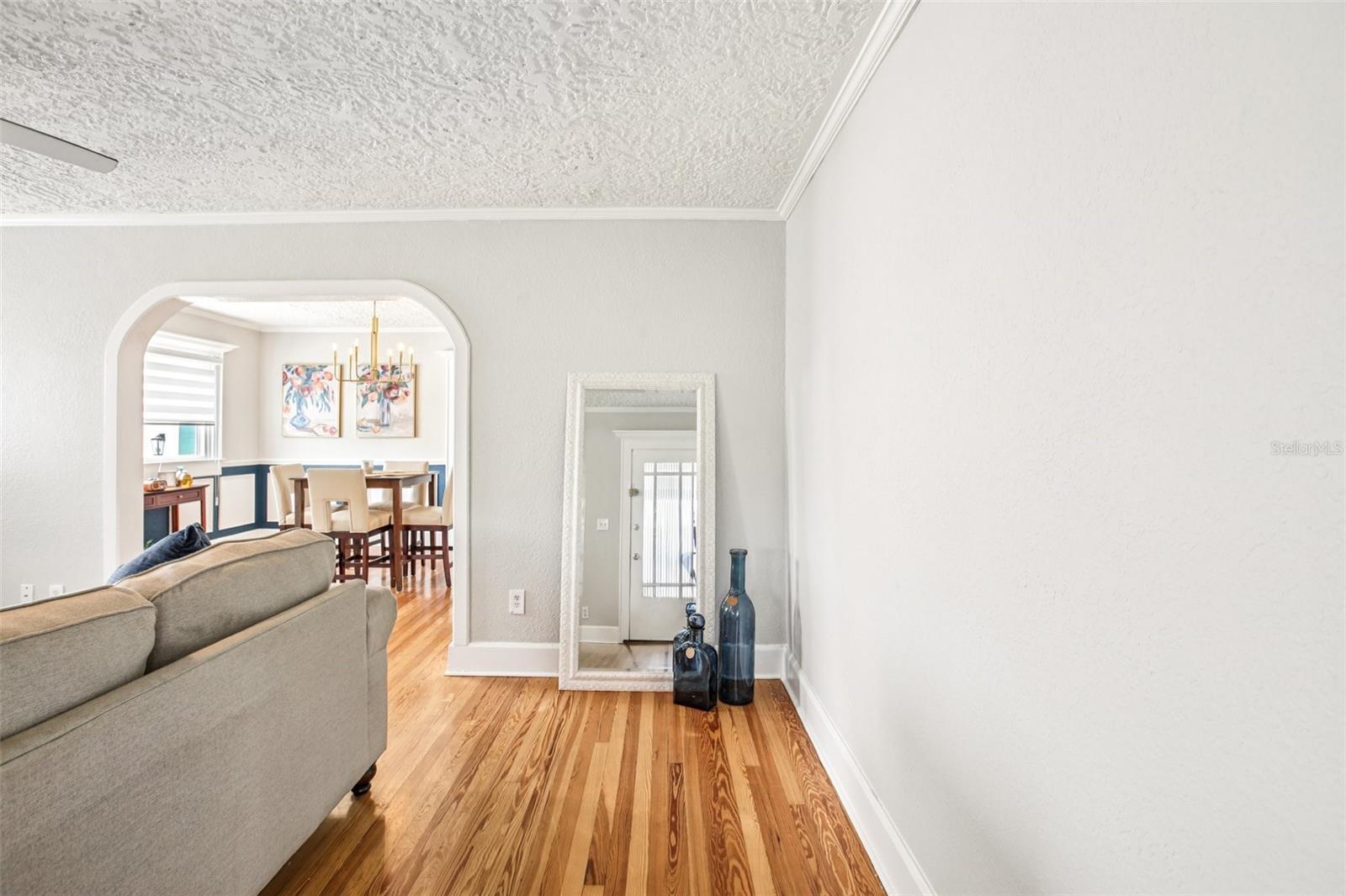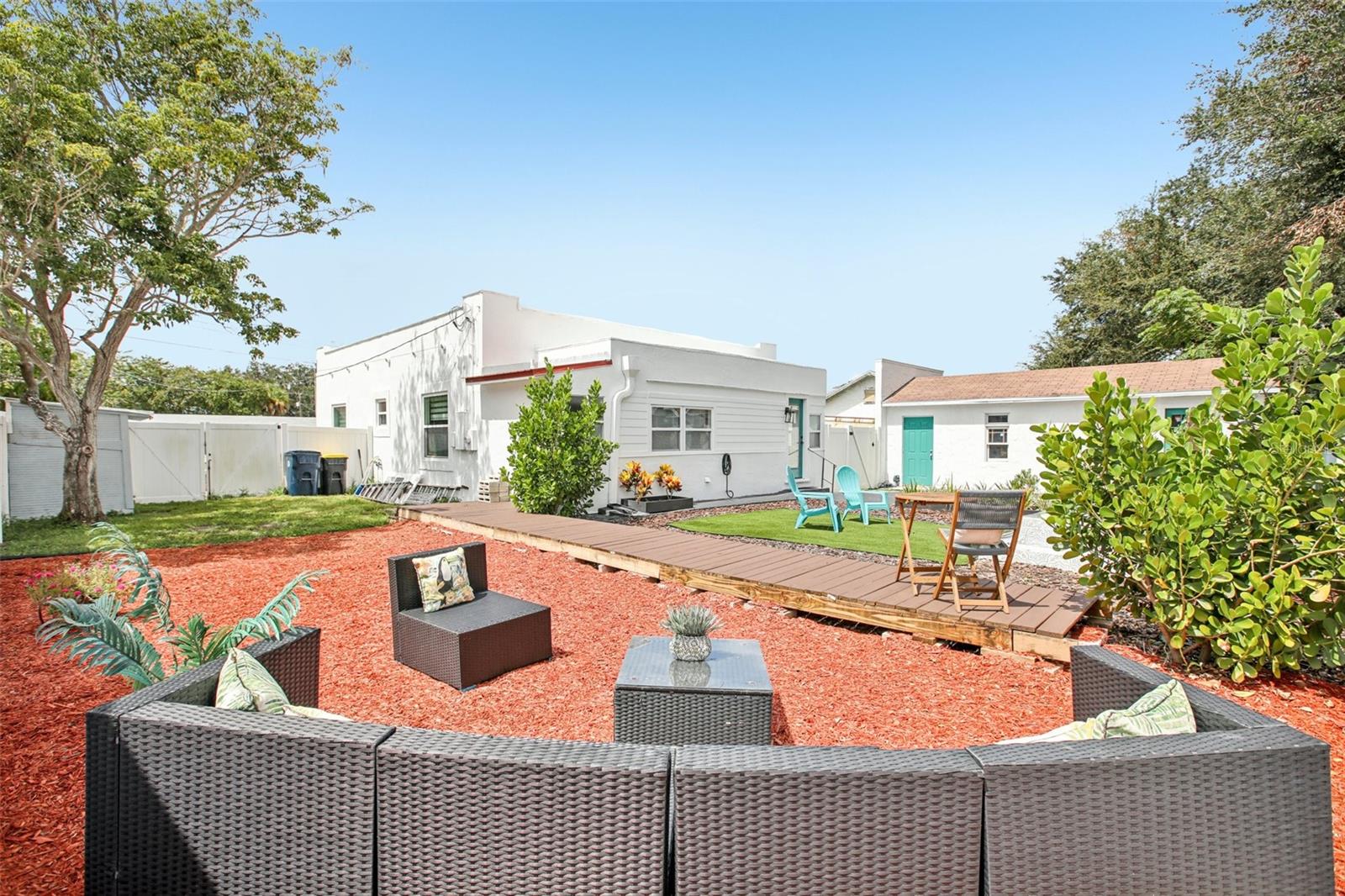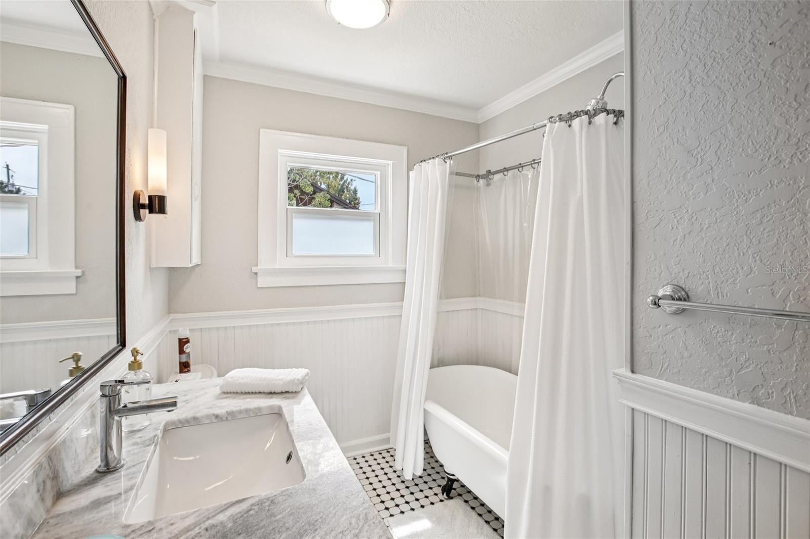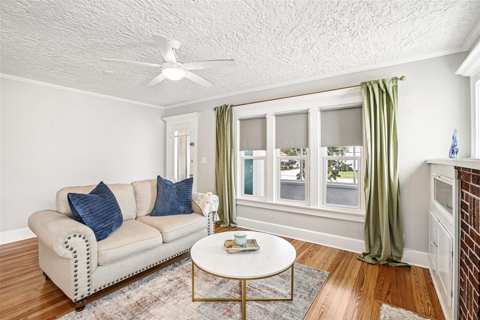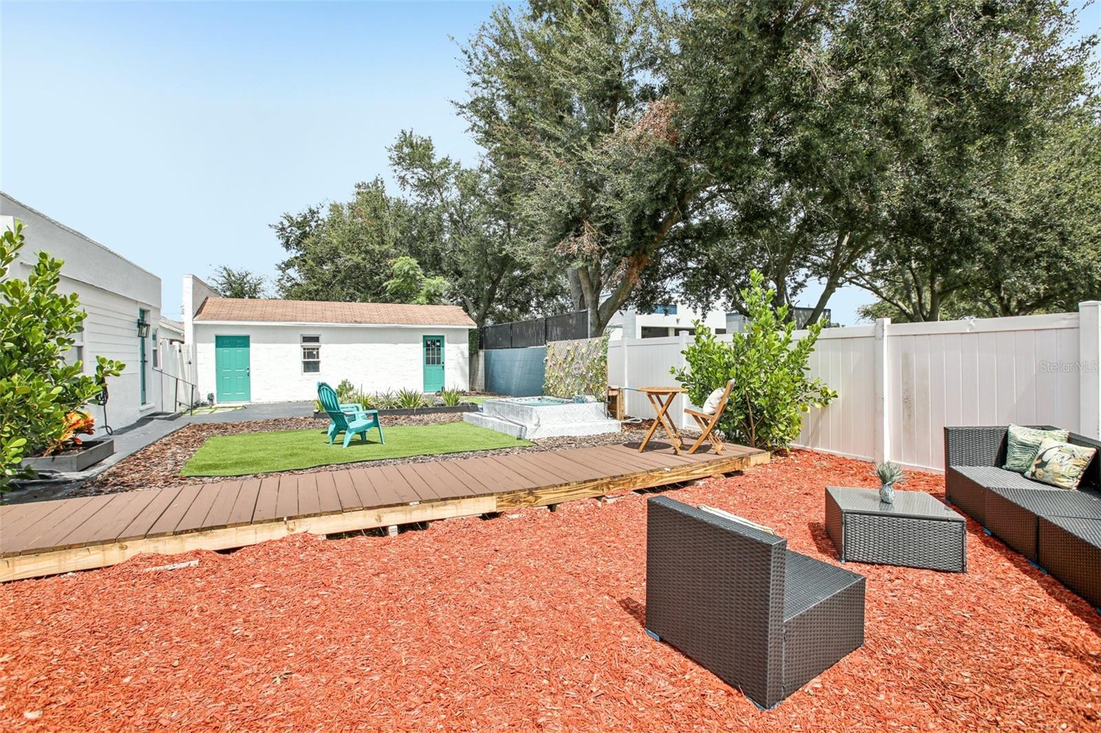 ***MOTIVATED SELLER*** This recently upgraded Spanish-style residence beautifully preserves its original charm. This elegant home features an expansive screened-in front porch, ideal for hosting gatherings. Upon entering, the home's distinctive character is immediately apparent. It boasts wood flooring, soft white walls and ceilings, and complementary bronze and brick finishes, creating a welcoming atmosphere. The striking exposed brick fireplace, flanked by built-in shelving, adds further character to the exceptionally spacious living room. The dining room, accessed through a stunning archway, offers ample space and features two-toned walls with decorative railing, a stylish chandelier, and a panoramic window. The kitchen, accessible via a swing door, is a dream, with chic tiled floors, warm granite countertops, two-toned cabinets with brass hardware, soft-close lower cabinets, stainless steel appliances, and a deep sink. The guest bedroom, located at the front of the house, offers generous space and natural light. The guest bathroom is exquisite, with pendant lighting reflecting off the white and black tile floor, complemented by an elegant clawfoot tub. The master suite immediately draws the eye with its crown molding and tray ceilings, which enhance the room's already impressive size. The en-suite bathroom is equipped with dual vanity granite countertops, a garden tub, and a separate walk-in shower. Additional features include an inside laundry room, a detached one-car garage, with a workshop that was started and a fully fenced backyard oasis's with a fountain. The home has Newer Windows, the AC 2021 with a warranty, the home was Replumed in 2007 with CPVC/PVC, the Electrical Panel was replaced in 2002, the roof is 2014, but was recoated in the last year or two, and the hot water tank 2019. This exceptional home is truly unique and is a must see!