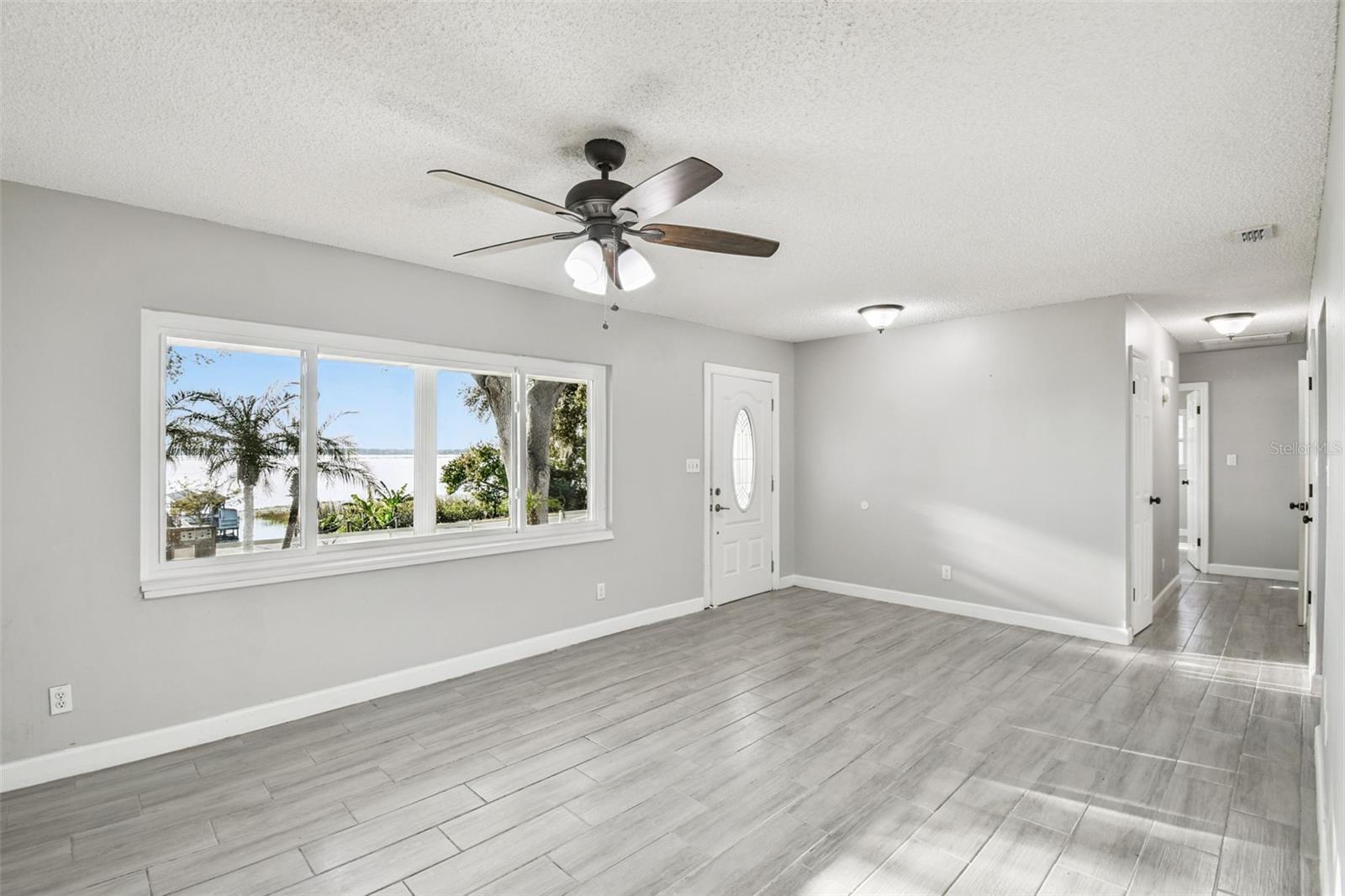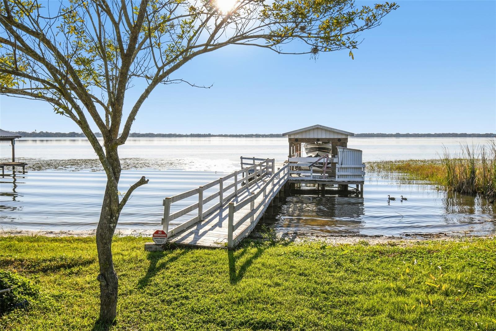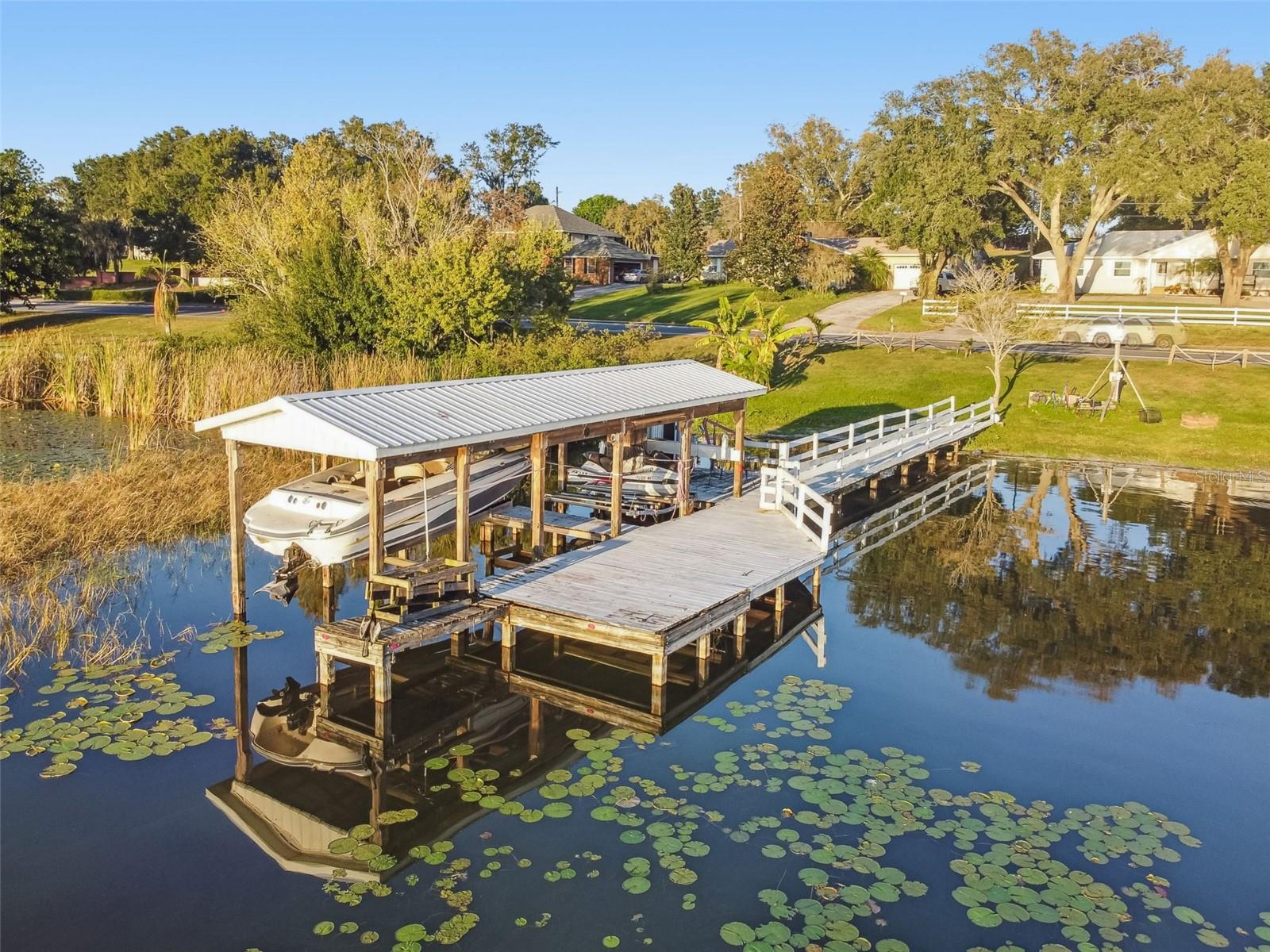 Set on .37 acres and packed with exceptional upgrades, this waterfront home is all about Lake Ariana living. This 3-bedroom home with a versatile flex space—perfect as a 4th bedroom, office, or playroom—was designed to maximize breathtaking lake views and effortless indoor-outdoor living. From the circular driveway, step onto the covered front porch, an ideal shaded retreat any time of day. Inside, you’re welcomed by an open family room framed by expansive lake views that immediately set the tone. The adjoining dining area and kitchen feature granite countertops, a breakfast bar, stainless steel appliances, and three pantries for exceptional storage. Just beyond the kitchen is the 20x20 garage, complete with storage shelving on both sides, and an indoor utility room with additional shelving and ample storage space. The flex room off the kitchen offers endless possibilities to suit your lifestyle needs. The dining room is a true showstopper, featuring a 220-gallon established saltwater aquarium that conveys with the home—complete with live coral, plants, and fish. Down the hall, you’ll find three generously sized bedrooms, with Bedrooms 2 and 3 offering direct lake views. The primary suite includes a private bath with a walk-in shower, while the second full bath features a shower and jet tub. Two additional hallway storage closets add even more convenience. Step outside and discover a lush, productive landscape with mature fruit trees including guava, pear, plum, tangerine, and fig, plus a dedicated area ready for your future vegetable garden. Along the side of the home, mature pineapple plants are expected to be ready for harvest by mid-summer. The lakefront is where this property truly shines. The private dock features a boat lift, double jet ski lift, and engine hoist, along with ample deck space for entertaining. Built-in waterproof speakers keep the vibe going, while a storage shed with a mini fridge ensures cold drinks are always within reach. As the sun sets, gather by the lakeside fire pit with plenty of seating for evening relaxation. Dockside amenities include running water from the lake and an irrigation pump for the yard. Additional highlights include a metal roof, newer HVAC system (2019), storm shutters, new double-pane windows with lifetime warranty, new ductwork, added air returns, and an Air Knight ionization system for cleaner, fresher indoor air. Enjoy endless sunrises and sunsets, true lake life living, and NO HOA restrictions. This exceptional waterfront home is a rare find—schedule your private or virtual showing today before it’s gone.