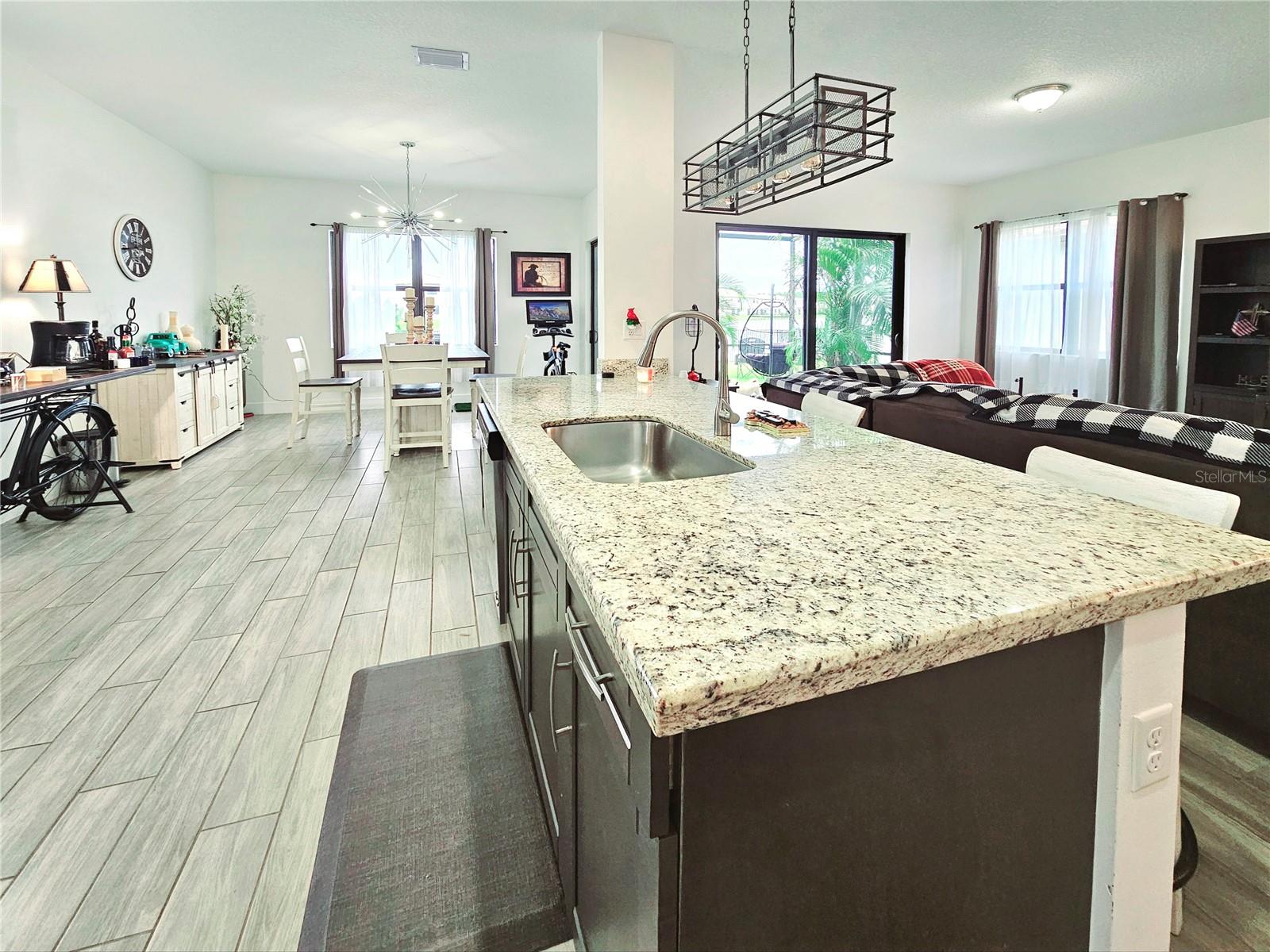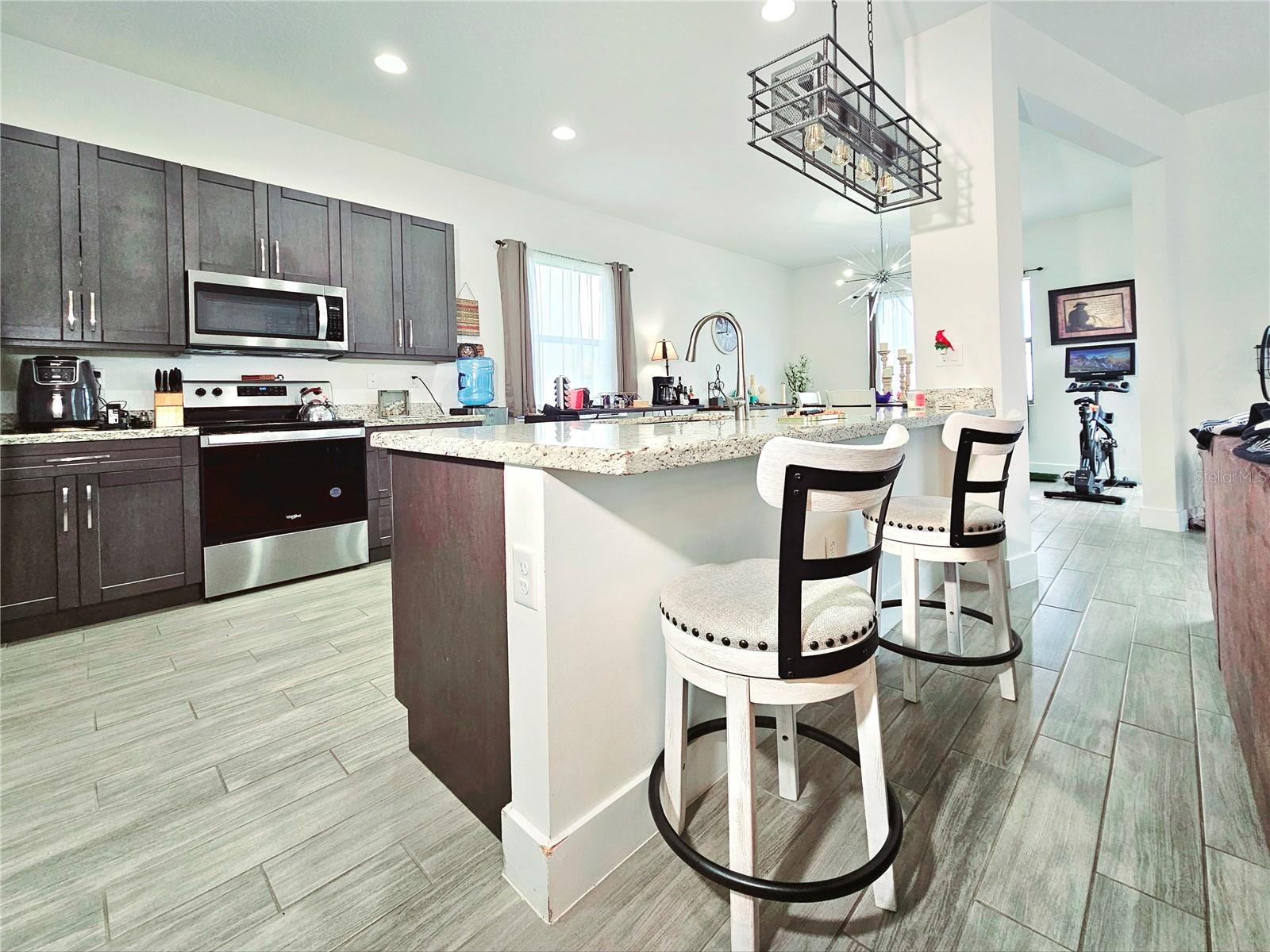 Welcome to the popular Balboa model in the award-winning town of Ave Maria. This beautifully upgraded 3-bedroom, 2.5-bath home offers over 1,933 sq. ft. under air and is situated on a premium lakefront lot with serene sunset views framed by lush banana palms. The home is built for both style and durability, featuring impact-resistant windows and doors, wood plank tile flooring throughout the first floor, and luxury vinyl plank upstairs. The staircase has been upgraded with a sleek metal handrail and round silver balusters, giving a modern and refined feel. The open-concept kitchen offers granite countertops, stainless steel appliances, updated designer light fixtures, and flows seamlessly into the living and dining areas. Additional upgrades include impact-resistant laminate flooring, custom lighting, and recessed hi-hats with smart switch controls. Outdoors, you’ll find extended pavers in the front and back, a screened-in lanai, and an oversized driveway that fits up to three cars. The fully fenced backyard is illuminated with dual floodlights and overlooks the tranquil lake, creating the perfect outdoor oasis. Living in Maple Ridge means enjoying access to Ave Maria’s unmatched amenities. The community clubhouse features a resort-style pool, fully equipped exercise room, conference rooms, a full exhibition kitchen, grill area, and a sauna—ideal for social gatherings and wellness. Residents also have access to tennis courts, a several playgrounds, and brand-new pickleball courts. The town is built for active lifestyles, offering extensive walking and golf cart trails, a family-friendly waterpark, and two large outdoor parks each with dedicated dog parks. Sports enthusiasts will appreciate the four baseball fields and two football/soccer fields available within the community. Convenience is at your fingertips with everything you need located within the town itself. Just minutes from your doorstep are Publix, Ace Hardware, Dunkin’ Donuts, multiple restaurants, medical offices, dentists, eye doctors, and even a nearby gas station and fire station. Education is also a highlight, with Ave Maria University, a well-established middle school, and a brand-new elementary school currently under construction all located within the community. Plus, golf lovers will appreciate proximity to two top-rated courses: The National Golf & Country Club and Panther Run Golf Club. Whether you’re looking for a full-time residence, seasonal retreat, or investment opportunity, this home offers the perfect blend of luxury, comfort, recreation, and everyday convenience in one of Southwest Florida’s most vibrant and fast-growing communities. Schedule your private tour today and experience the lifestyle in Ave Maria.