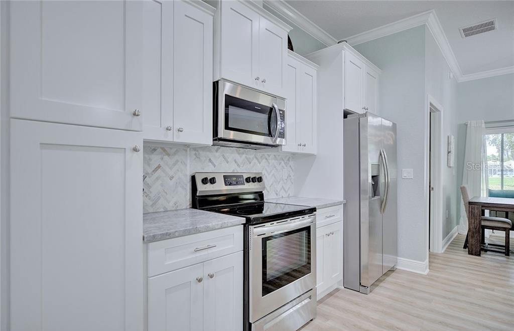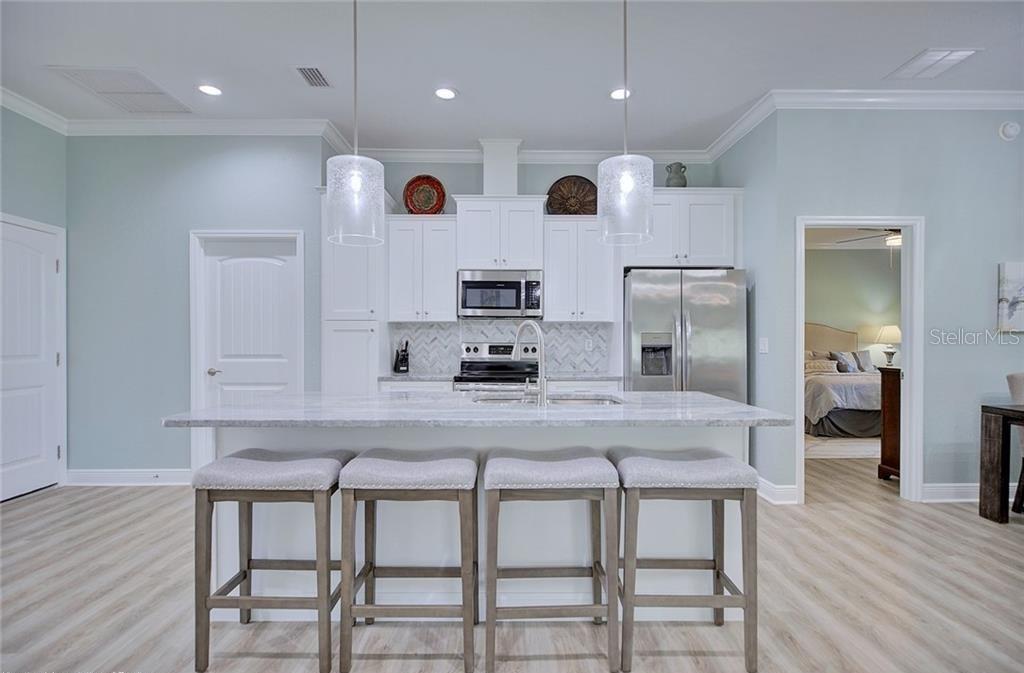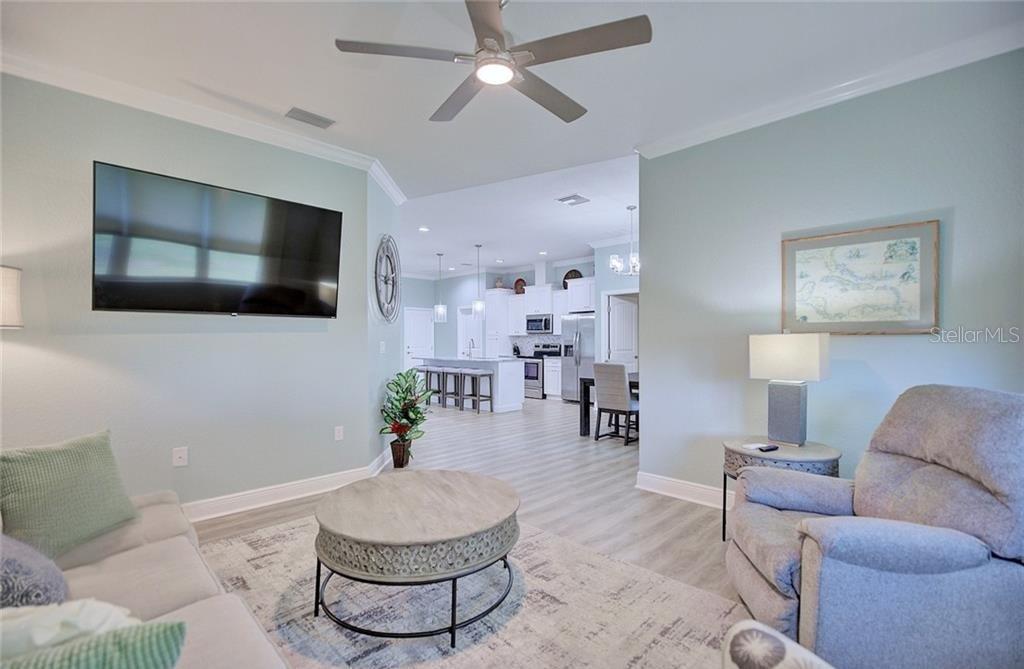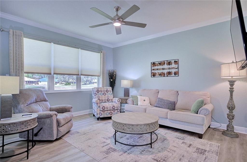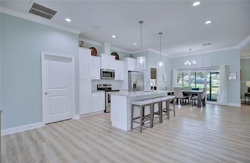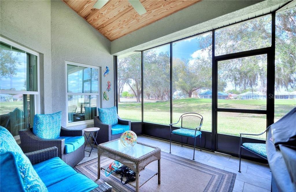 BEAUTIFUL NEARLY NEW 2 BEDROOM + DEN GOLF COURSE VILLA (Turnberry Model) at The Villages of Highlands Ridge in Avon Park, Fl., an active gated 55+ golfing community. Enjoy relaxing with a cup of morning coffee on the back screened lanai while watching golfers putt on the 9th green or enjoy swimming and lounging at the nearby Villa Pool. This home has a modern open-concept design, vinyl plank flooring, high ceilings, chef-inspired kitchen with white cabinets, granite counters, SS appliances, large center island, breakfast bar and pantry. Master suite features large walk-in closet and spa-like bath with walk-in shower. The 2 bedrooms + den has a split floor plan offering privacy with plenty of room for family and guests. In addition to golf, this friendly community offers 2 pools, a fitness center, pickleball & tennis courts, shuffleboard, bocci ball, a community clubhouse, a boardwalk leading to Lake Bonnet for fishing, and a boat launch. Boat and RV parking is located within the community. The HOA covers the lawn mowing and edging, use of the amenities and upkeep of the common areas. Whether you are year round or winter guests come join us for the resort-style, maintenance-free, lifestyle Highlands Ridge has to offer.