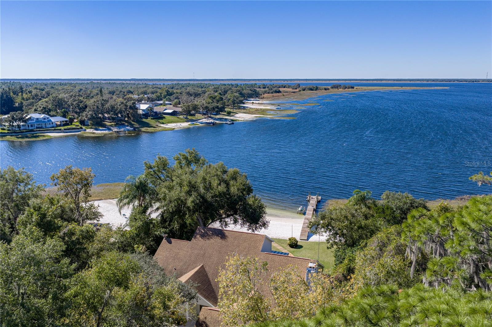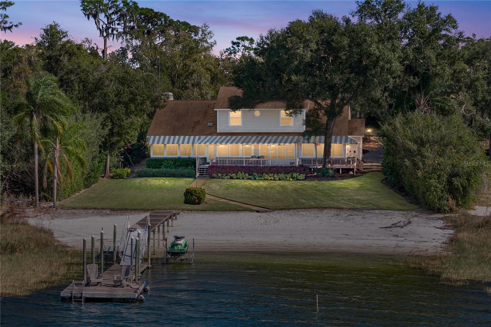 Spectacular Crooked Lakefront Estate! This custom-built residence offers 4 bedrooms, 3.5 baths, and 3,893 square feet of living space, all set on 1.54 beautifully wooded acres with breathtaking lake views and unforgettable sunsets. Designed as a private retreat, this exceptional home captures the essence of relaxed lakefront living. Enjoy endless days of boating, fishing, bird watching, or simply unwinding on the expansive covered deck overlooking the water. A newly upgraded Florida room with double-pane windows provides a peaceful sunroom setting with panoramic lake views year-round. The property features a meticulously maintained white sand beach and a hybrid wooden dock, offering easy access to the lake and an ideal setting for waterfront enjoyment. For peace of mind, the home is equipped with a whole-house (45 KW Generac) generator, ensuring comfort during stormy weather. This rare Crooked Lake property combines natural beauty, thoughtful upgrades, and a serene lifestyle—your lakefront oasis awaits.