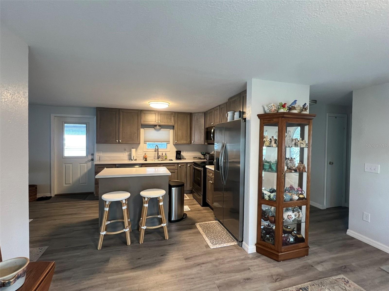 This UPDATED & MOVE-IN READY 2 Bedroom, 2 Bathroom manufactured home in the 55+ Floral Lakes Community in Bartow, FL is situated waterfront on Lake Flora. Interior walls and ceilings have been finished in drywall; double pane windows with shades have been installed throughout; whole home has been replumbed; new metal roof and new water heater in 2022; new A/C in 2019; PLUS dock with composite decking and electrical. This home features a spacious Kitchen with breakfast bar, stainless finish appliances, breakfast bar and a closet pantry; a separate Dining Area; Living Room with beautiful lake views; a second living area in the front of the home; Primary Bedroom with en-suite bathroom; spacious 2nd Bedroom with bay windows; screen enclosed rear porch; workshop storage; inside laundry room (washer and dryer included); 3 carport spaces for vehicles and golf carts with privacy panel and beautiful new landscaping to include Christmas Palms and Crape Mytles. The Primary Bedroom with dual closets (mirrored door) and en-suite bathroom features a custom tiled shower enclosure, single vanity, and linen closet. The Guest Bathroom features a single vanity and custom tiled shower. Located in central Florida, between Tampa and Orlando, this golf cart friendly community is near the Bartow Civic Center, Bartow Public Library, and Mary Holland Park. Here you OWN YOUR LAND (no lot rent) and pay low monthly HOA fees. The Floral Lakes community offers access to a stocked pond with community boat ramp and dock. Clubhouse amenities include recreation space, shuffleboard, putting green, and large heated swimming pool. Social clubs, dances, exercise, pot lucks, and MORE! Association approval is required for purchase. Call your Realtor today for more information and to schedule a showing!