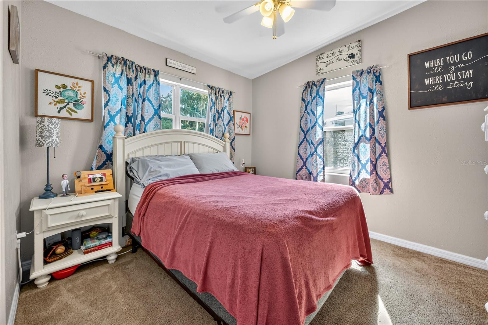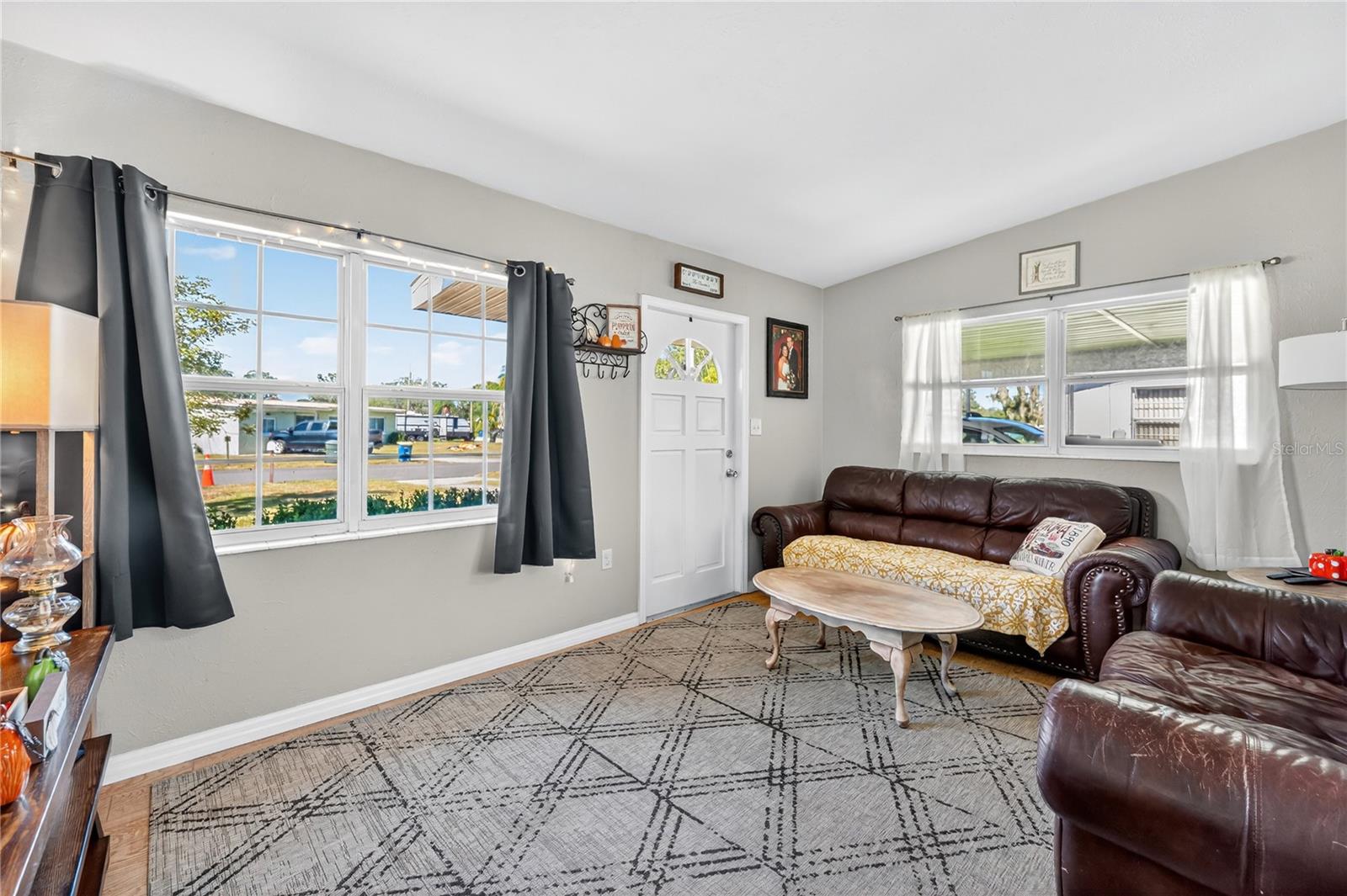 Charming block home with a massive fenced backyard! Featuring 3 bedrooms and 1 bathroom, this adorable bungalow provides tons of natural light, vaulted ceilings, an updated kitchen with shaker cabinets, granite countertops, and stainless steel appliances. HIGHLIGHTS include wood-look plank tile, double-pane windows, new bedroom doors, new HVAC and thermostat in 2024, newer water heater from 2020, newer roof in good condition, and a 1-year transferable termite bond! NO HOA! The home has been freshly pressure-washed and all carpets shampooed, ready for you to make it your own! Outside, enjoy the massive fenced backyard—perfect for entertaining, relaxing, or letting pets play. This move-in ready home is ideal for first-time buyers, downsizers, or investors seeking a low-maintenance property.