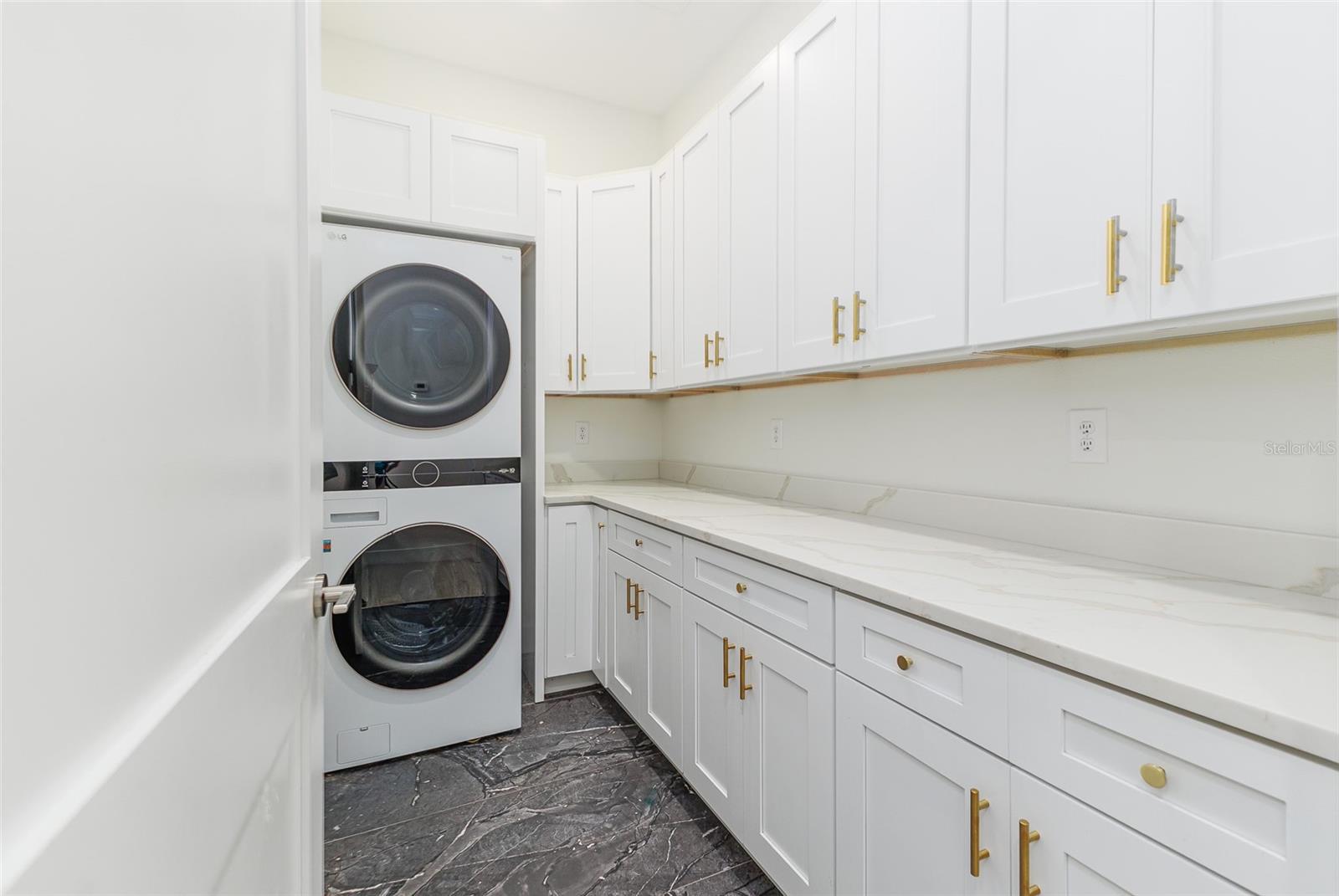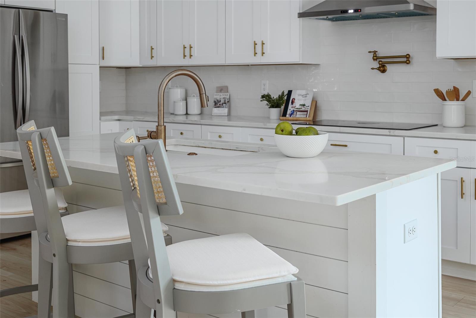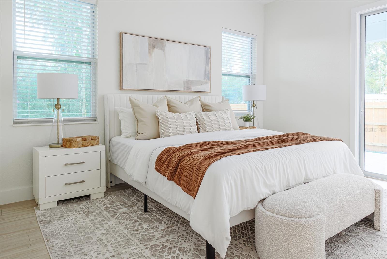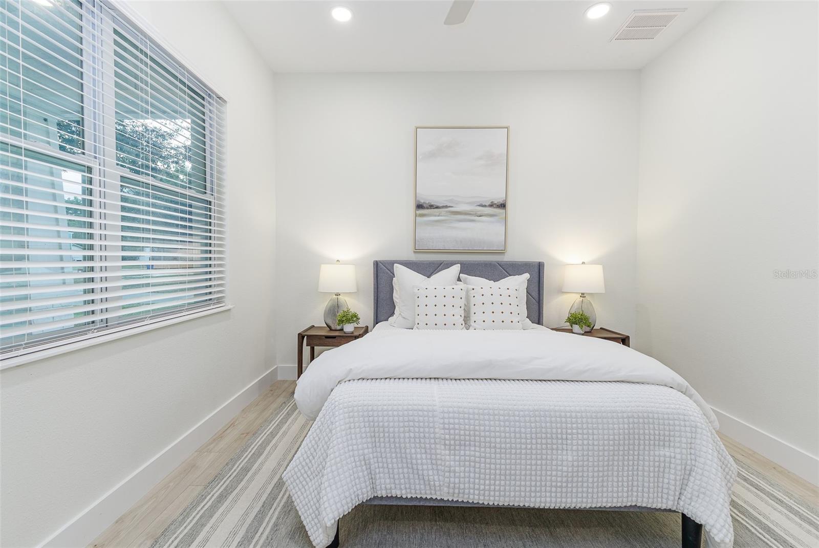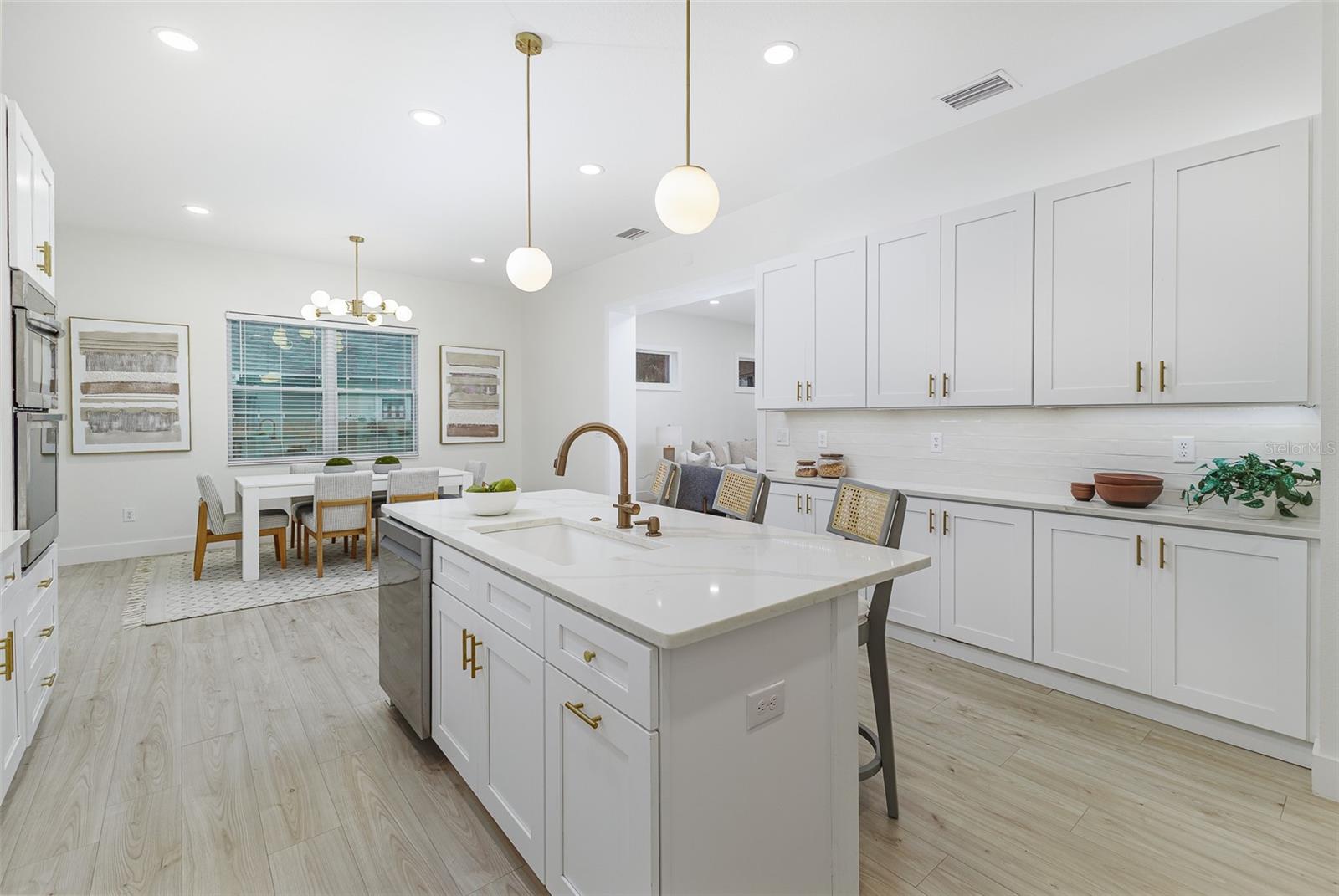 Built in March 2024, this almost-new, custom 4-bedroom, 3.5-bath residence offers high-end finishes, thoughtful design, and exceptional functionality. Situated on a spacious corner lot in an established neighborhood, the home features two large, separate driveways with parking for 8+ vehicles—ideal for gatherings, multi-vehicle households, or recreational parking. Inside, you’ll find a luxurious, oversized kitchen and laundry room designed for both beauty and efficiency. The kitchen features 42” upper cabinets, quartz countertops throughout, and includes all appliances. The first floor boasts 8-foot doors and custom closets throughout, adding to the home’s upscale feel. A commercial-grade reverse osmosis drinking water system supplies filtered water directly to the refrigerator and pot filler—an exceptional upgrade for both convenience and quality. The laundry room is equipped with a premium LG WashTower washer and dryer. Built with performance in mind, the home includes foam block insulation for enhanced energy efficiency, along with low-E windows and doors to help maintain comfortable indoor temperatures year-round. Outdoor living is equally impressive with a large covered tiled front porch, a tiled rear covered patio, and a generously sized, fully fenced backyard with a 6-foot privacy fence—perfect for entertaining, pets, or relaxing in your own private space. This is a truly turnkey, high-quality home that combines modern construction, custom details, and an ideal lot layout. Staging furniture is available for purchase separately, making this an easy move-in opportunity. Conveniently located close to Bartow, Bartow High School, and Downtown Bartow—home to local events and beloved community parades. Just minutes from Mary Holland Park, the Bartow Library, youth baseball and soccer fields, middle schools, and a short drive to Nye Jordan Park featuring pickleball courts and basketball courts. This home presents a rare opportunity to move into a custom newer build without the wait of new construction.