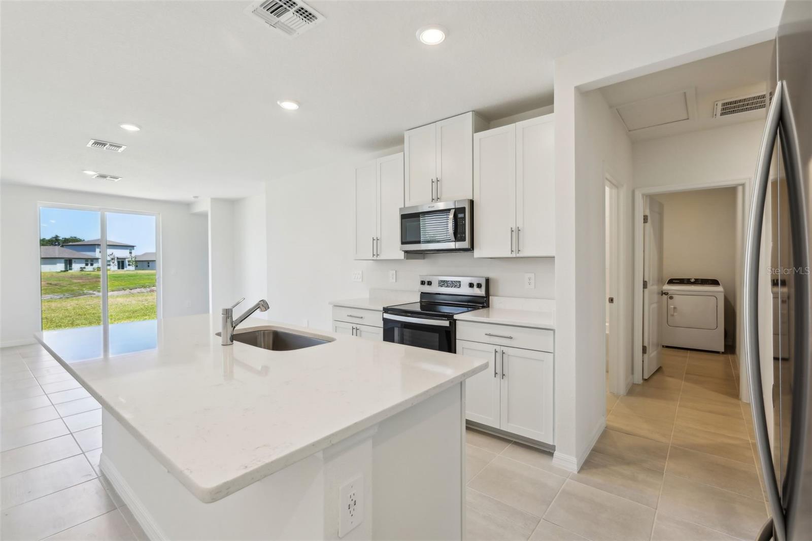 Brand new, energy-efficient home ready NOW! Looking for a new home in Bartow? This home's elongated foyer impresses upon entry. A chef-inspired kitchen overlooks the great room, dining nook and patio. Primary suite in the back of home features dual-sink vanity, walk-in shower and walk-in closet. This home features a pond view from the backyard. Inside, our Elemental design package includes 6x24 Resemblance Light Gray wood tile in the main areas of the home, upgraded Cotton Whi granite countertops, and whi shaker-style cabinetry with 42" uppers in the kitchen. A side-by-side fridge, full-sized washer/dryer, and 2" whi faux wood window blinds are also included making this home truly move-in ready! The Grove at Stuart Crossing Premier Series offers single-family homes with open-concept floorplans in Bartow, FL. Convenient to several major highways, this community is ideal for those who commute to Lakeland, Tampa and Orlando. Residents will enjoy amazing amenities that include a resort-style pool, clubhouse, fitness center, pickleball courts, playground, dog park, and trails in a beautiful "old Florida" setting. Each of our homes is built with innovative, energy-efficient features designed to help you enjoy more savings, better health, real comfort and peace of mind.