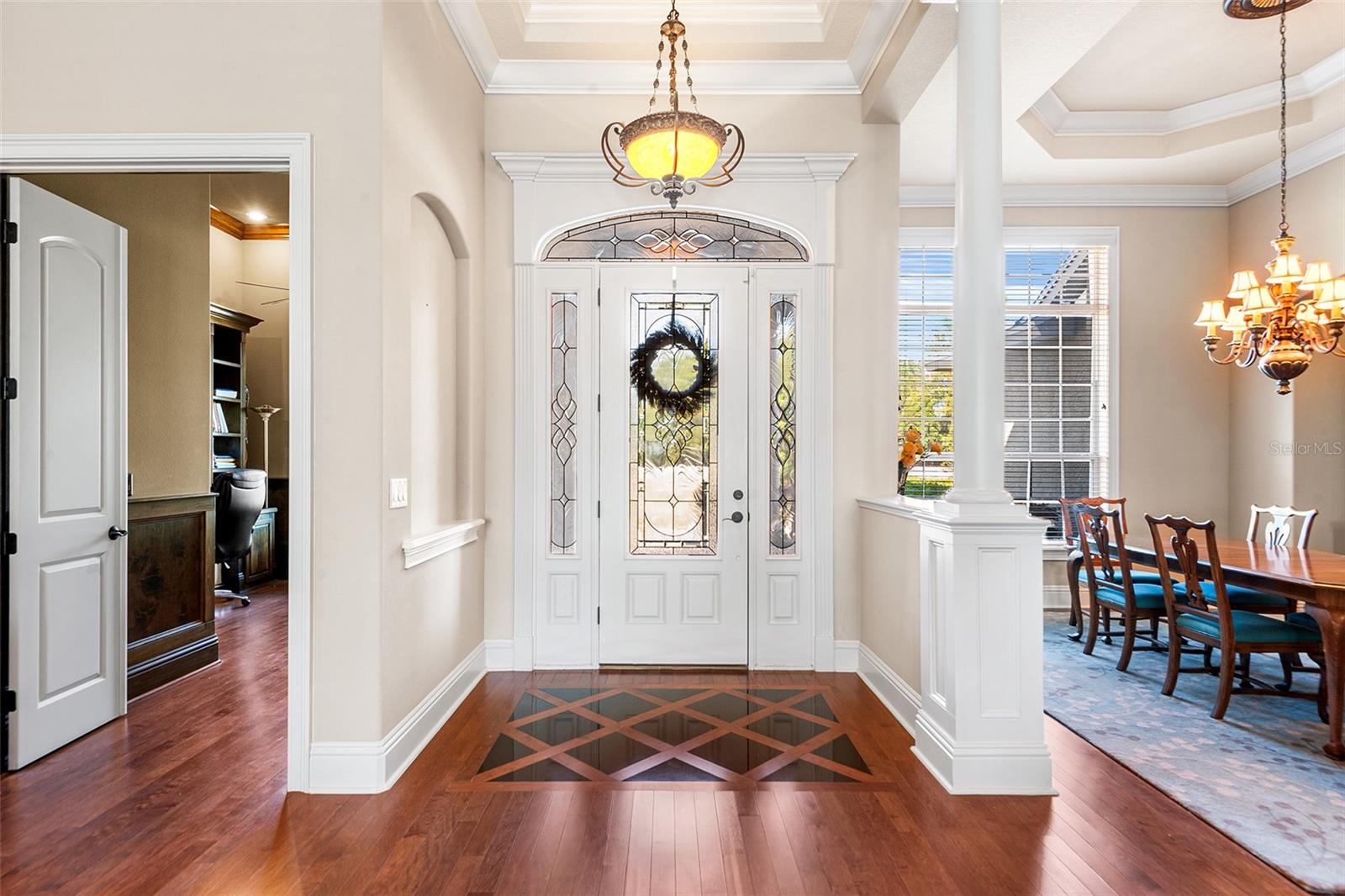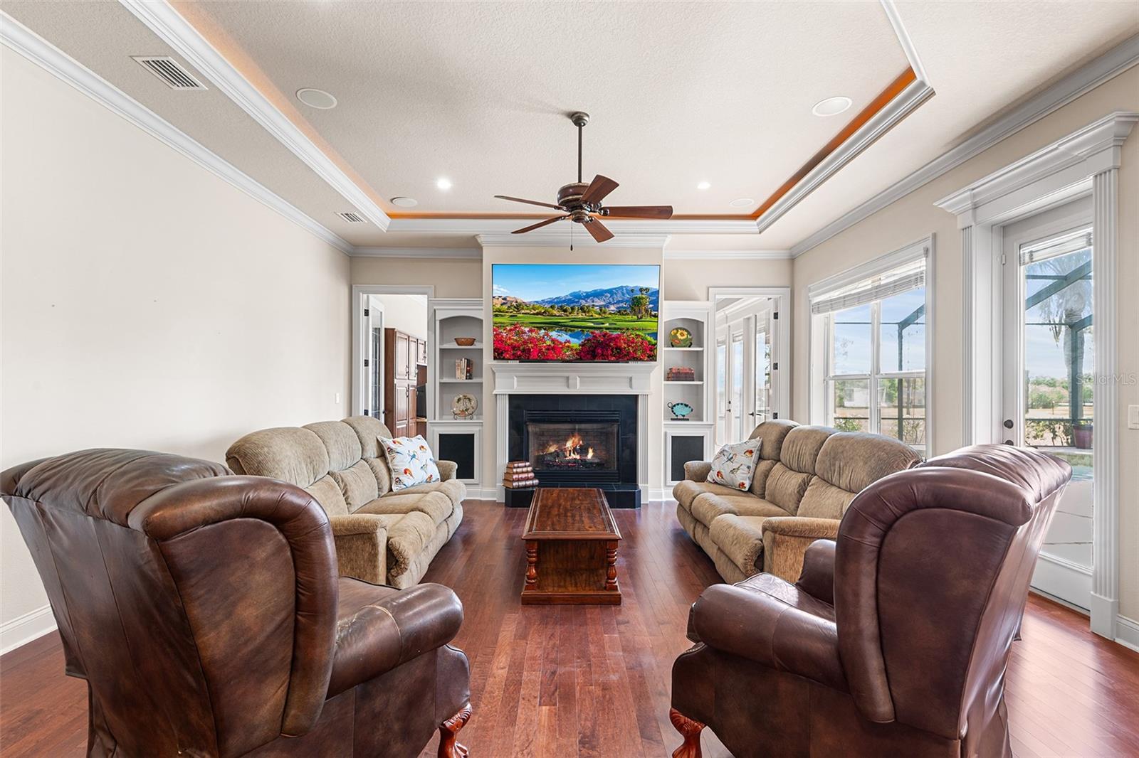 Set on a generous .98-acre homesite, this custom-built residence offers a thoughtful blend of space, function, and refined design. A highly desirable triple split floorplan provides privacy and flexibility, making it ideal for both everyday living and hosting guests. From the moment you enter you will notice the elevated finishes-crown molding, tray and coffered ceilings, and expansive living areas that create an open yet inviting atmosphere. Designed with both entertaining and everyday comfort in mind, the home features a variety of distinct living spaces, including a formal dining room and formal living room for hosting gatherings, as well as a spacious family room anchored by a natural gas fireplace. A versatile bonus room adds even more flexibility- perfect for a playroom, media room, or additional lounge space- while a separate dedicated office provides a quiet, private environment ideal for working from home. The heart of the home is the well-appointed kitchen, showcasing granite counter tops, a natural gas cooktop and a built-in oven- ideal for those who love to cook. The layout flows seamlessly into the main living areas, while an inside laundry room adds convenience to daily routines. Step outside to your private backyard retreat, complete with a saltwater pool and a patio already plumbed for a gas grill- ready for effortl3ess outside entertaining. Whether relaxing poolside or hosting guests, this outdoor space is designed to be enjoyed year-round. The spacious primary suite serves a true sanctuary, offering a ensuite bath with a jetted tub, standalone shower and plenty of room to unwind. Three additional bedrooms and 2 full baths provide comfortable accommodations for family or guests. Car enthusiasts, hobbyists, or those needing extra storage will appreciate the rare combination of a 3-car attached garage, plus an additional 2-car detached garage/workshop. With nearly an acre of land, upscale features, and a smart, functional layout, this home delivers both luxury and practicality in a serene setting. Conveniently located near shopping, schools, a hospital and between both Tampa and Orlando attractions and international airports. Schedule your showing today!