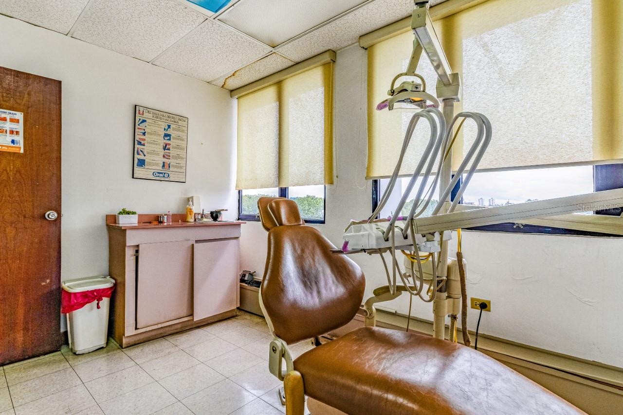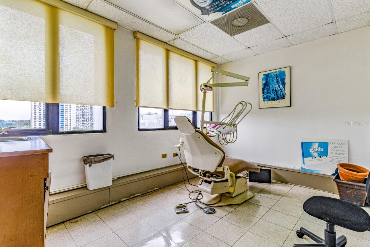 This 1,044 sq. ft. medical office, located in Bayamón, Puerto Rico, is a well-designed medical facility optimized for patient care and comfort. The space is divided into multiple functional areas, including examination rooms, waiting areas, and specialized treatment spaces. Each room is equipped with dental chairs, overhead lighting, and X-ray machines. The waiting areas feature comfortable seating arrangements, with Large windows in some rooms that allow natural light to filter in, brightening the space. The office maintains a clean, professional appearance with tiled floors and drop ceilings with integrated lighting. Storage solutions are integrated throughout the office to keep supplies organized and easily accessible. The office's layout is designed for efficient patient flow, with clearly marked rooms and ample space for staff to move between areas. Despite its compact size, the 1,044 sq. ft. space is well-utilized, providing a comprehensive range of dental services in a comfortable, professional environment.