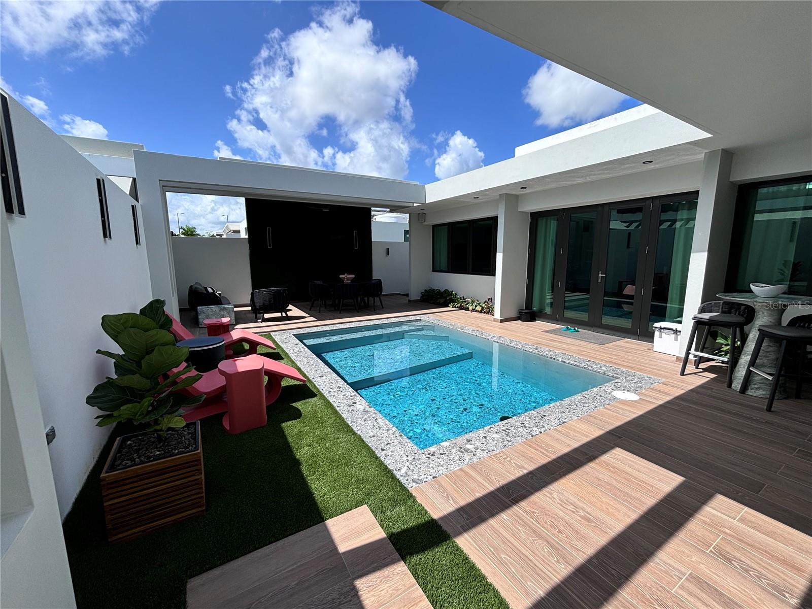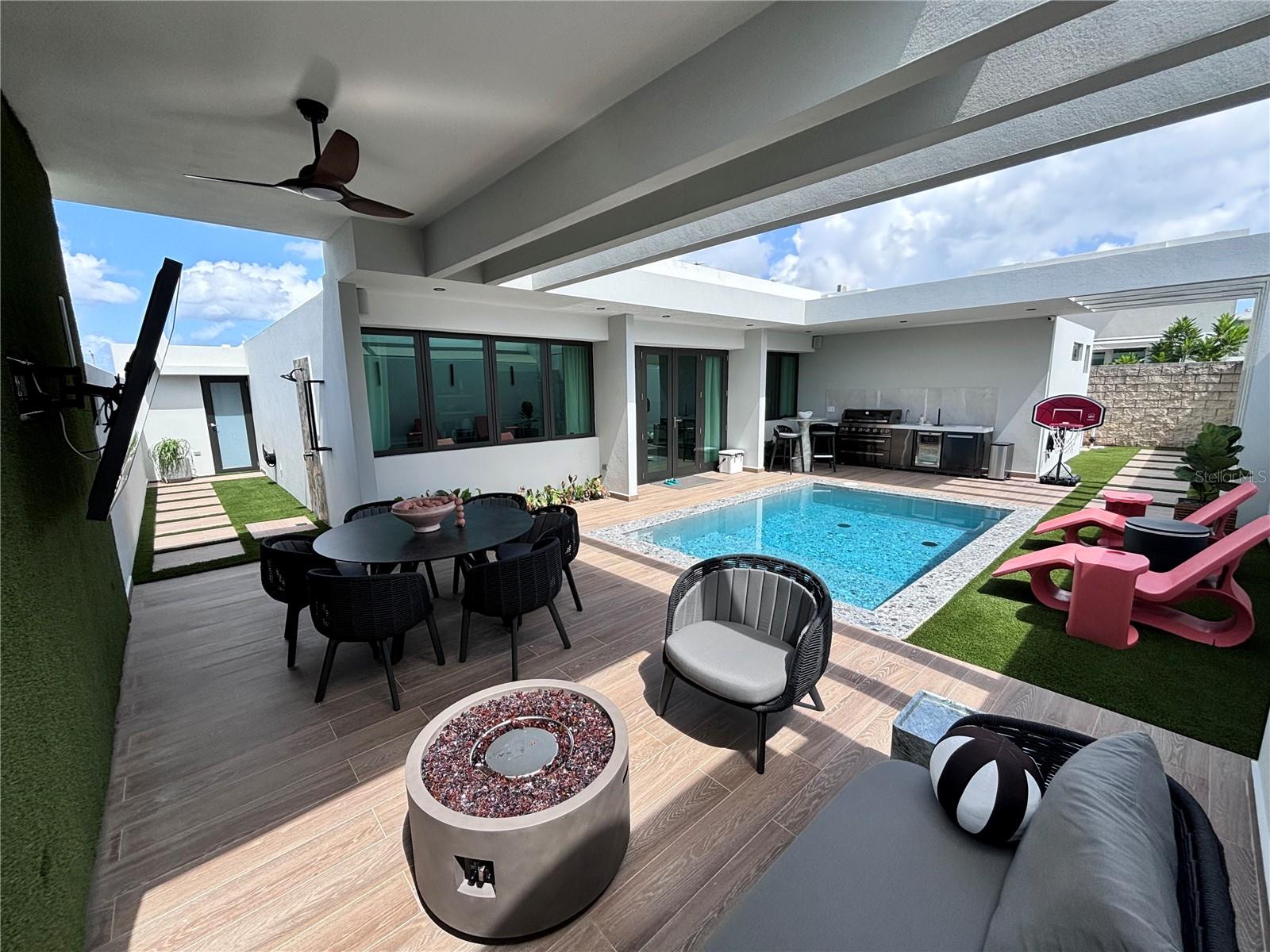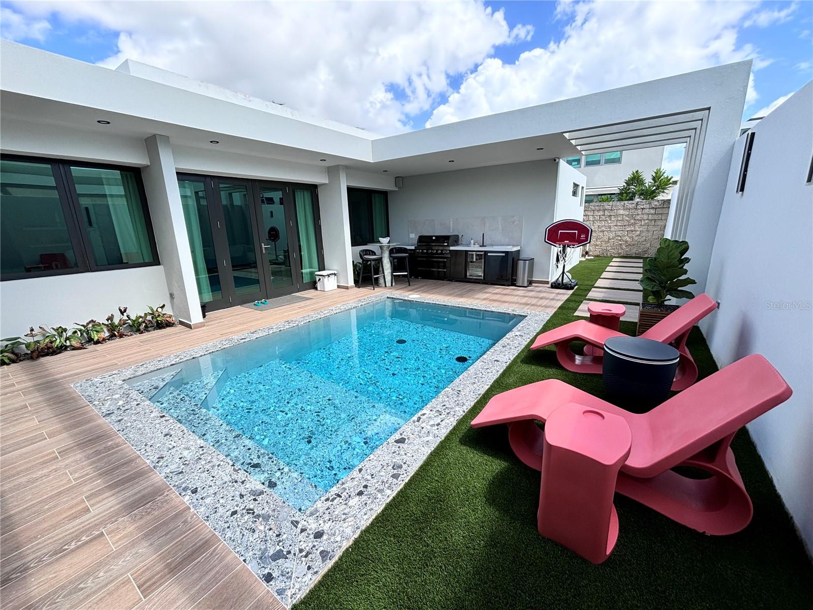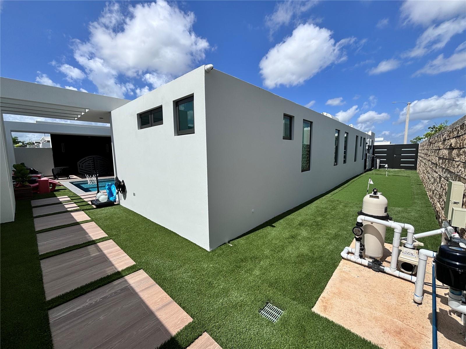 Lavish home located in the exclusive gated community of Residences at Rio on a cul-de-sac in a corner lot. It features 4 bedrooms with A/C inverters, 3 full bathrooms and 2 half bathrooms, 486 m2, 2,324 GLA, including a master suite with walk in closet and remodeled bathroom, a junior suite with its own private bathroom, and two additional bedrooms connected by a Jack & Jill bathroom. Spacious living area with a fascia roof and lighting adds a modern vibe. Every closet and the pantry have been revamped and customized. Exterior Doors have been upgraded including the garage door, the side gate entrance as well as the main entrance. Beautiful custom shades with curtains have been installed throughout the property. The backyard has a one of a kind terrace, where a state of the art pool with salt water is centered alongside a stunning BBQ area/ kitchen-bar and a golf chip and putt perfect to relax or entertain guests as well as an outdoor bathroom with a refreshing shower. It has a double car indoor garage with a new storage closet. The property has solar panels, Tesla battery, a water cistern, water softener, and a solar water heater. Monthly HOA is $325.00. Located at Ave. Los Filtros at the intersection of Bayamon and Guaynabo, Residences at Rio offers a fashionable lifestyle with many amenities. 24-hour security, clubhouse with pools, waterfalls, beach tennis, a well-equipped gym, playground, and basketball court.