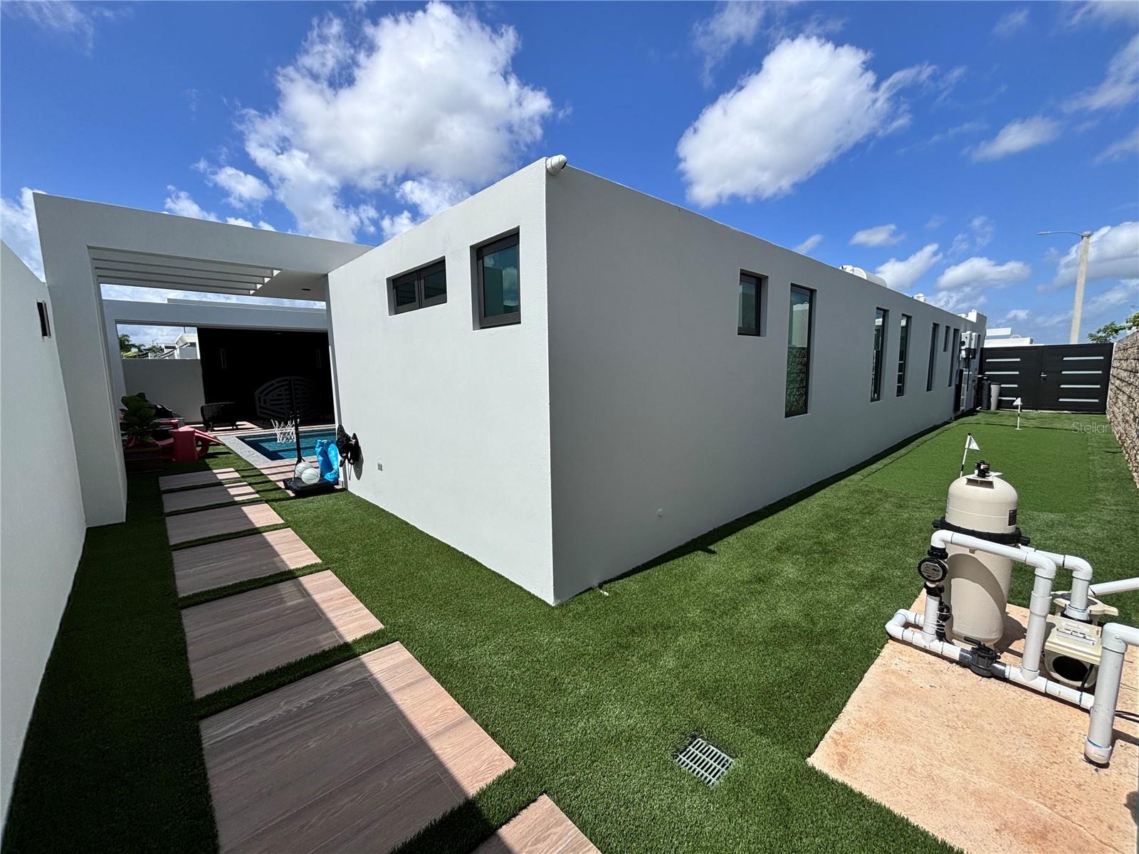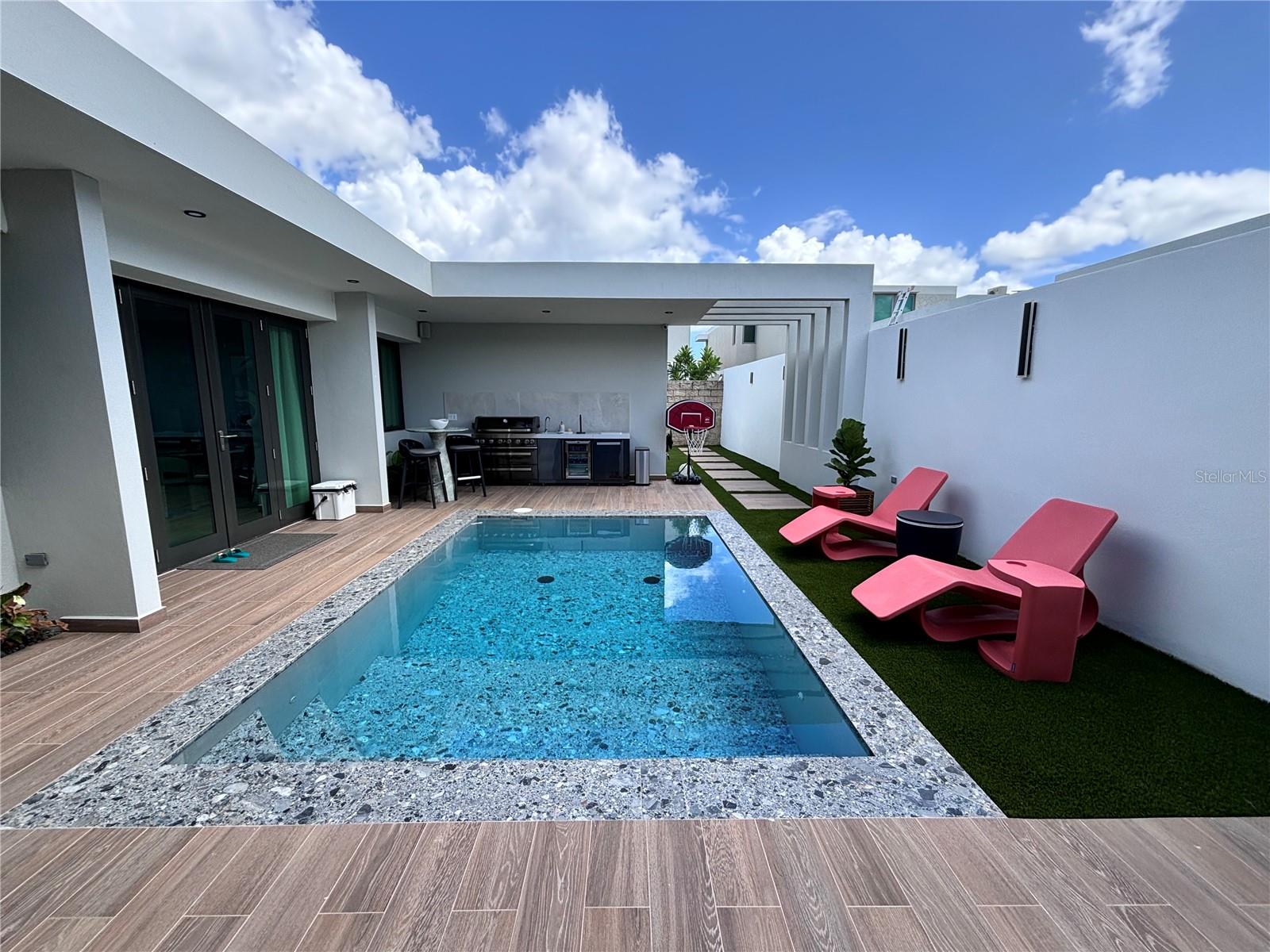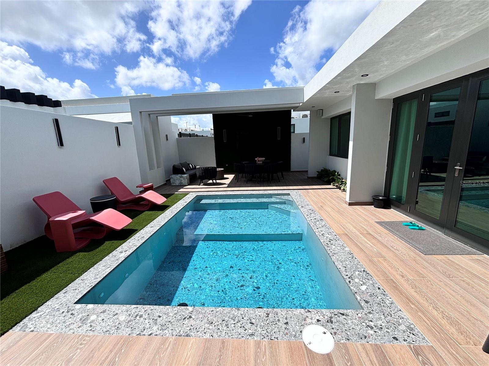 Lavish home located in the exclusive gated community of Residences at Rio on a cul-de-sac in a corner lot. It features 4 bedrooms with A/C inverters, 3 full bathrooms and 2 half bathrooms, 486 m2, 2,324 GLA, including a master suite with walk in closet and remodeled bathroom, a junior suite with its own private bathroom, and two additional bedrooms connected by a Jack & Jill bathroom. Spacious living area with a fascia roof and lighting adds a modern vibe. Every closet and the pantry have been revamped and customized. Exterior Doors have been upgraded including the garage door, the side gate entrance as well as the main entrance. Beautiful custom shades with curtains have been installed throughout the property. The backyard has a one of a kind terrace, where a state of the art pool with salt water is centered alongside a stunning BBQ area/ kitchen-bar and a golf chip and putt perfect to relax or entertain guests as well as an outdoor bathroom with a refreshing shower. It has a double car indoor garage with a new storage closet. The property has solar panels, Tesla battery, a water cistern, water softener, and a solar water heater. Monthly HOA is $325.00. Located at Ave. Los Filtros at the intersection of Bayamon and Guaynabo, Residences at Rio offers a fashionable lifestyle with many amenities. 24-hour security, clubhouse with pools, waterfalls, beach tennis, a well-equipped gym, playground, and basketball court.