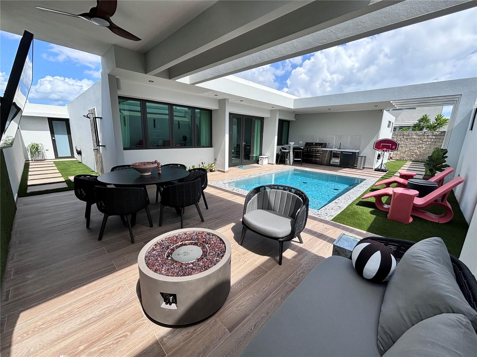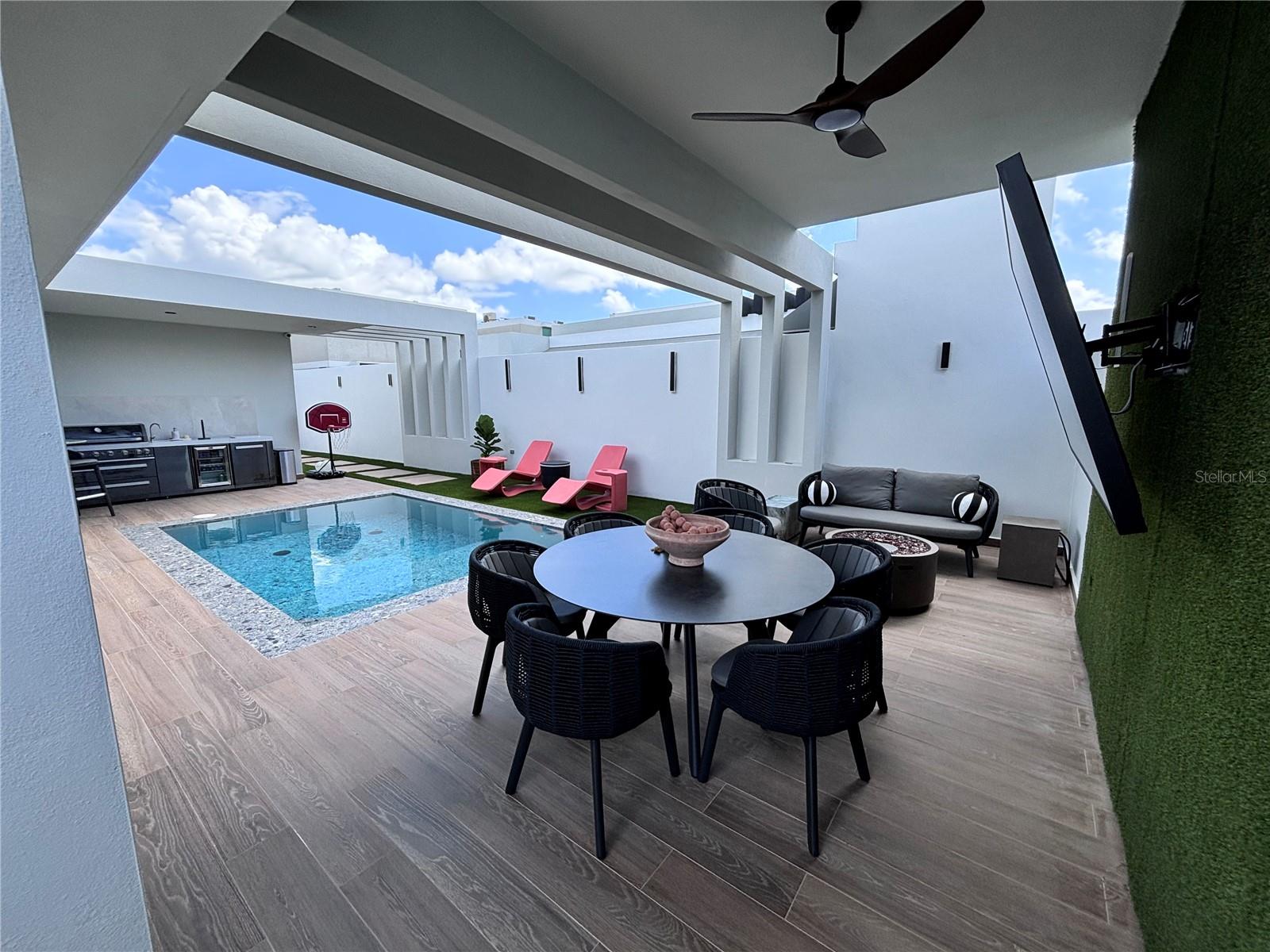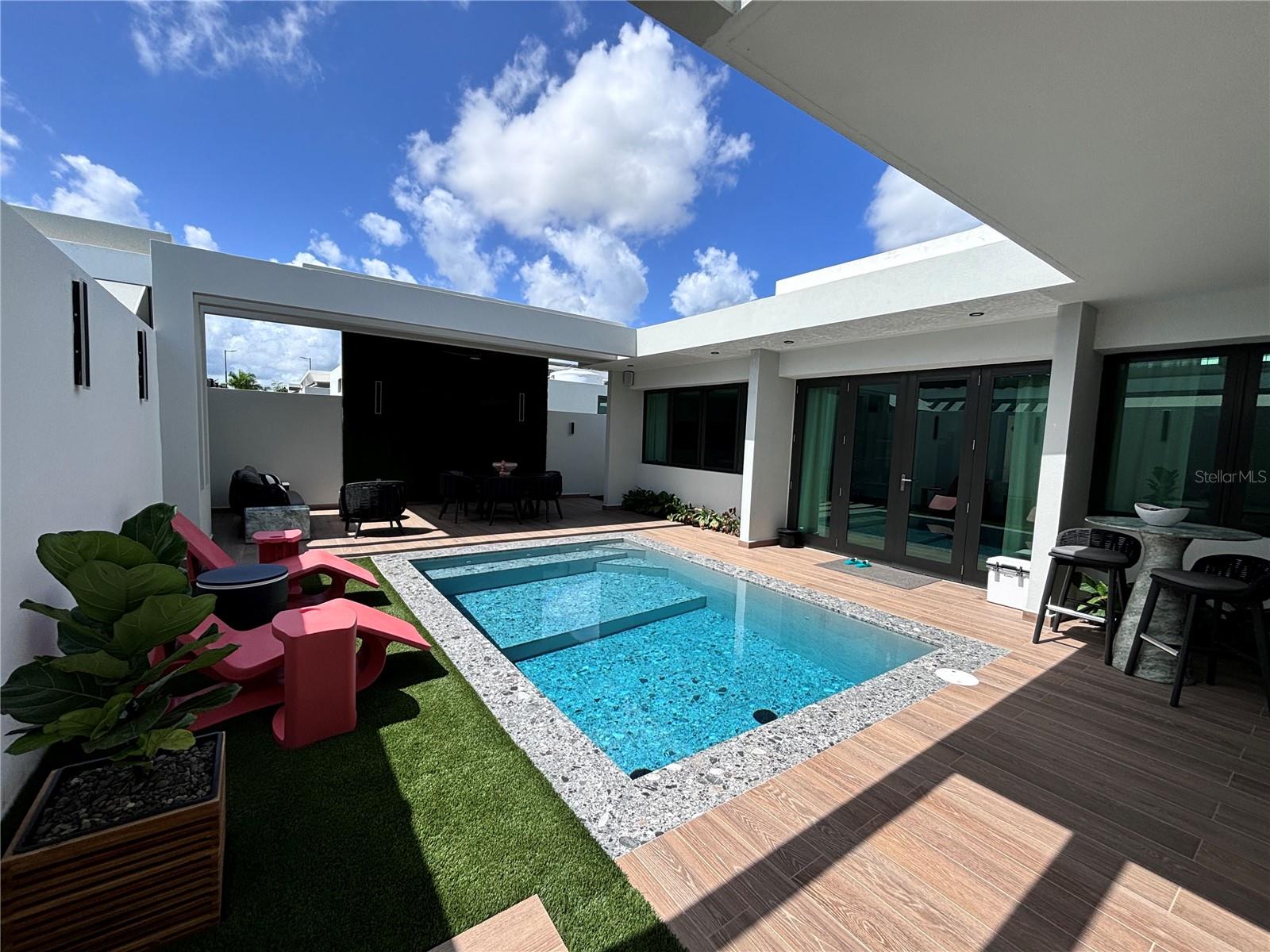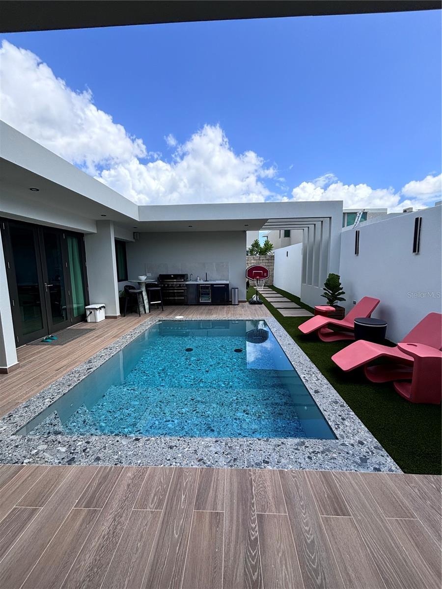 Lavish home located in the exclusive gated community of Residences at Rio on a cul-de-sac in a corner lot. It features 4 bedrooms with A/C inverters, 3 full bathrooms and 2 half bathrooms, 486 m2, 2,324 GLA, including a master suite with walk in closet and remodeled bathroom, a junior suite with its own private bathroom, and two additional bedrooms connected by a Jack & Jill bathroom. Spacious living area with a fascia roof and lighting adds a modern vibe. Every closet and the pantry have been revamped and customized. Exterior Doors have been upgraded including the garage door, the side gate entrance as well as the main entrance. Beautiful custom shades with curtains have been installed throughout the property. The backyard has a one of a kind terrace, where a state of the art pool with salt water is centered alongside a stunning BBQ area/ kitchen-bar and a golf chip and putt perfect to relax or entertain guests as well as an outdoor bathroom with a refreshing shower. It has a double car indoor garage with a new storage closet. The property has solar panels, Tesla battery, a water cistern, water softener, and a solar water heater. Monthly HOA is $325.00. Located at Ave. Los Filtros at the intersection of Bayamon and Guaynabo, Residences at Rio offers a fashionable lifestyle with many amenities. 24-hour security, clubhouse with pools, waterfalls, beach tennis, a well-equipped gym, playground, and basketball court.