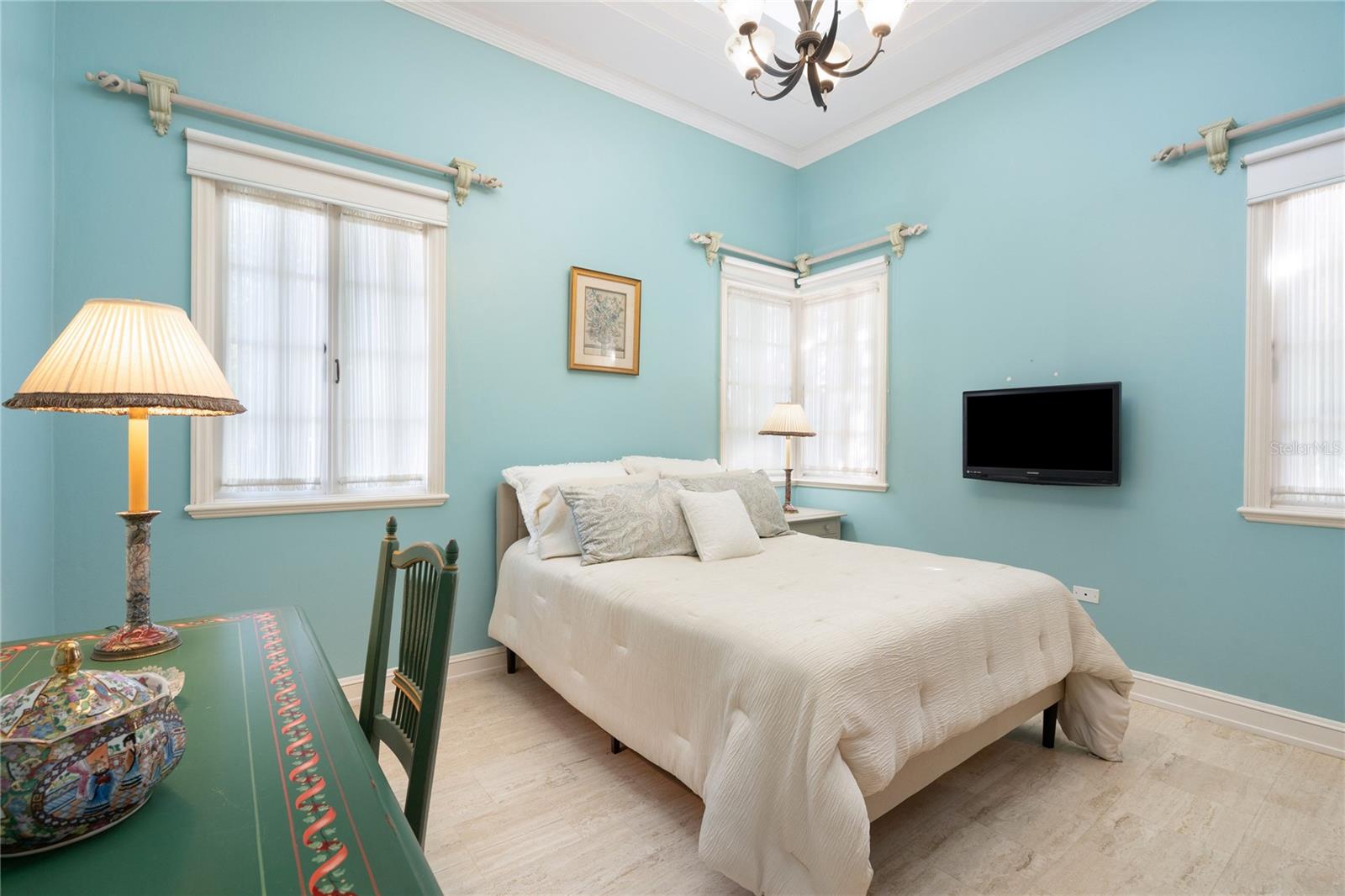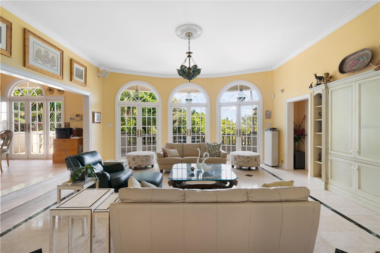 Located within the exclusive gated community of Tintillo Hills, this timeless custom-built residence offers privacy, scale, and refined living on an expansive 2.5-acre lot. The four-level estate features 11,415.24 sq ft of total construction, designed for both grand entertaining and comfortable full-time living. The main level welcomes you with a grand foyer featuring soaring ceilings and a curved staircase, filled with natural light. This level includes formal living and dining rooms, a spacious kitchen with breakfast area, family room, and a versatile billiard room. Expansive open terraces and covered porches connect the interiors to the surrounding gardens and pool, creating seamless indoor-outdoor living. The lower level offers exceptional amenities including a gym, sauna, wine cellar, full bathroom, maid’s room with en-suite bath, laundry area, extensive storage, and a three-car garage. Outdoor features include a pool, concrete terrace, manicured gardens, and a detached wood terrace with outdoor kitchen—ideal for entertaining. The second floor features four bedrooms and a family room. The primary suite includes a spa-like bathroom, dual walk-in closets, and a private balcony overlooking the pool and gardens. Additional bedrooms offer full bathrooms and walk-in closets. The third floor hosts a private office or library accessed by a spiral staircase, opening to a balcony with panoramic views extending to Old San Juan. The estate is accessed through a private gated entrance with circular driveway and includes mature trees, expansive green areas, and a tennis court ready for renovation. The property is fully equipped with an industrial backup generator and a large-capacity water cistern, ensuring uninterrupted comfort and peace of mind. Adding a unique touch of countryside charm, the grounds also feature resident chickens, embodying the essence of campo en la ciudad—country living with city convenience.