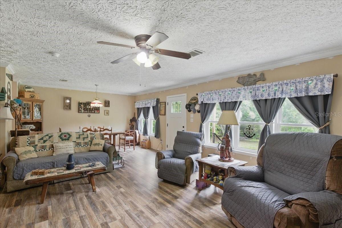 Custom 3BD/ 2 BA Horton home on 2.23 acres offers privacy and lots of storage options. As you enter through the automatic gated entrance you come by the naturally hardwooded area of the property into the cleared area around the home that gives ample yard space in front and back. A well kept home boasts many upgraded features such as newer luxury vinyl plank flooring throughout, newer french door stainless refrigerator, and new ADA toilets and faucets. The entire home has tape and textured drywall finish. The nice open layout of the home makes it feel more spacious than 1792 sf. The corner stone fireplace adds a down home atmosphere as do the wood cabinets in the kitchen. The owners have maintained the home to every extent. The home has been leveled, all windows have been replaced with Window World double hung, double pane windows. These windows carry a warranty that can be transferred to the new owner. The HVAC system is less than 5 yrs old and all ducts were cleaned and sealed when it was replaced. The new system also was upgraded to include a UV light to promote healthy air. A metal roof was installed in 2019 and will last for many more years. Another improvement you will appreciate is the covered porch off the back entrance and both entrance doors are newer insulated residential doors with storm doors as well. Outside you will find a storage place for all of your needs! A large metal carport has a closed end and sides to protect your vehicle or boat. Another large metal 25x30 workshop on concrete can also accommodate boat, tractor, vehicle, UTVs, mowers, etc or can become an awesome workshop. Lastly, another metal utility building has a asphalt ramp up to it and it would make a great 'she shed', office, bunkhouse, or simply additional storage for your belongings. For added convenience, the owners have paved a large portion of the driveway which is a pleasant surprise. A large portion of the property is fenced for pets or kids. Come see what this country charmer has to offer! It does not disappoint!
