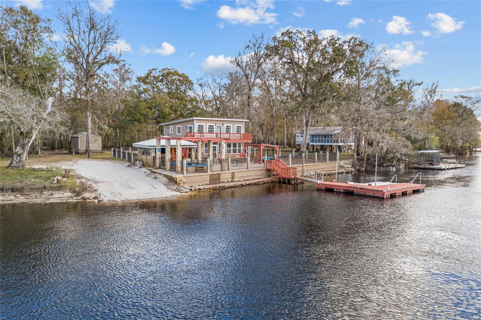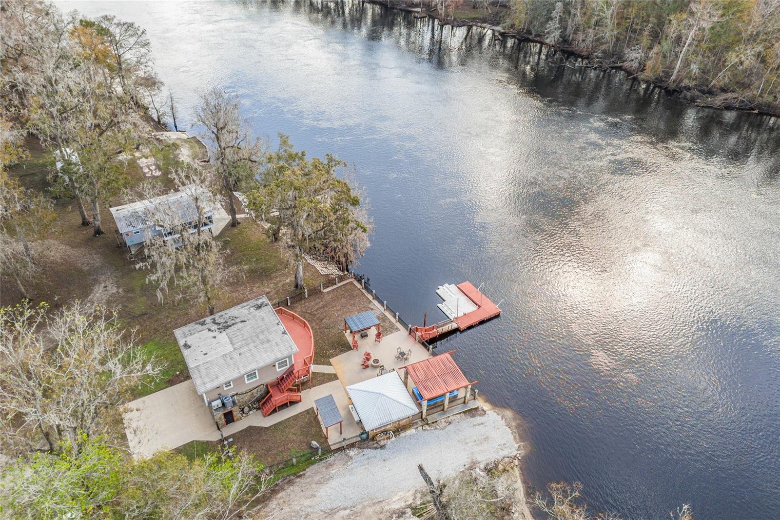 MOTIVATED SELLERS! Escape to the ultimate waterfront lifestyle with this charming three-bedroom, two-and-a-half-bath home nestled on a spacious lot along the scenic Suwannee River, just minutes from Hart Springs. Designed for those who truly want to live on the water, this property offers a rare combination of comfort, entertainment, and direct river access with a private dock and boat ramp—making every day on the Suwannee effortless and unforgettable. Take in breathtaking river views from the expansive upstairs deck, the perfect place to enjoy morning coffee, evening sunsets, or watch boats glide by. Inside, the kitchen seamlessly blends style and function, featuring a stainless steel double oven, electric cooktop, and a center island with bar seating ideal for casual dining or entertaining. A well-placed window above the sink fills the space with natural light, creating a bright and inviting atmosphere. Downstairs, the sunroom provides a peaceful retreat while staying connected to the outdoors—perfect for relaxing after a day on the river. Step outside to an entertainer’s dream, complete with a fully equipped outdoor kitchen and bar, a cozy firepit, and a spa tucked beneath a charming pergola—your own private oasis for relaxation and gatherings alike. What truly sets this property apart is the private dock and boat ramp, offering unmatched convenience for boating, fishing, kayaking, and exploring the Suwannee River at a moment’s notice. Launch your boat with ease, spend the day on the water, and return home to your own riverfront sanctuary. The fully fenced yard ensures privacy and peace of mind, while an outdoor shed provides ample storage for tools, gear, and river toys. This is more than a home—it’s a lifestyle where waterfront living, effortless boating, and unforgettable memories come together. Don’t miss this rare opportunity to own a slice of paradise on the Suwannee River—where the water is always calling and home is waiting.