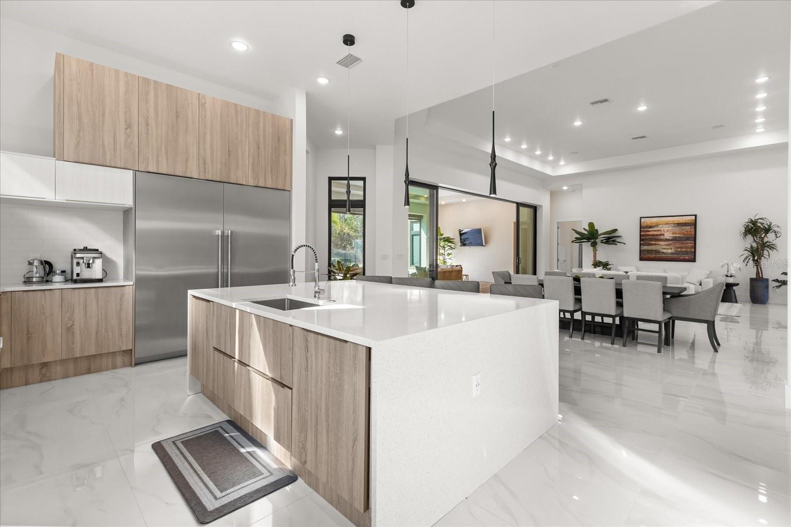 Stunning contemporary custom home in the guard-gated community of Bella Collina. Completed in 2023, this single-story residence offers 5 bedrooms and 6 full bathrooms, including a flexible fifth bedroom originally designed as an office and now converted into a true bedroom with its own en-suite bath. The expansive great room features 10-foot sliding glass doors that open to the oversized lanai, creating seamless indoor–outdoor living. A spacious bonus/family room also includes its own 10-foot sliders plus a full pool bath with a dedicated door to the lanai, offering ideal convenience for outdoor entertaining. Throughout the home, elegant tray ceilings enhance nearly every room, lending architectural character and sophistication. Outdoor living is exceptional with two connected lanais—one designed for a summer kitchen and dining, and the other for outdoor seating and lounging. The lanai includes retractable motorized screens and overlooks the private pool, spa, and sundeck on a beautifully wooded 1.18-acre homesite. Extra-high ceilings and abundant natural light highlight the home’s open, contemporary design. The gourmet kitchen is thoughtfully appointed with Thermador appliances, a 6-burner gas range, double ovens, double dishwashers, and a social island that flows directly into the great room—ideal for entertaining and everyday functionality. The primary suite offers direct lanai access and features an oversized double-entry walk-in closet. The luxurious primary bath includes a freestanding soaking tub, custom dual vanities, and an expansive walk-in dual shower. Each secondary bedroom includes its own private en-suite bath for optimal comfort and privacy. Residents of Bella Collina enjoy a world-class lifestyle with a Sir Nick Faldo–designed championship golf course, resort-style pool, full-service spa, fitness center with group classes, Har-Tru tennis courts, pickleball, walking trails, and multiple dining venues inside the iconic 75,000-square-foot Tuscan-inspired clubhouse. With 24-hour security and concierge-style service, Bella Collina offers luxury living at its finest. This exceptional home is move-in ready and easy to show—see it now and experience the Bella Collina lifestyle firsthand.