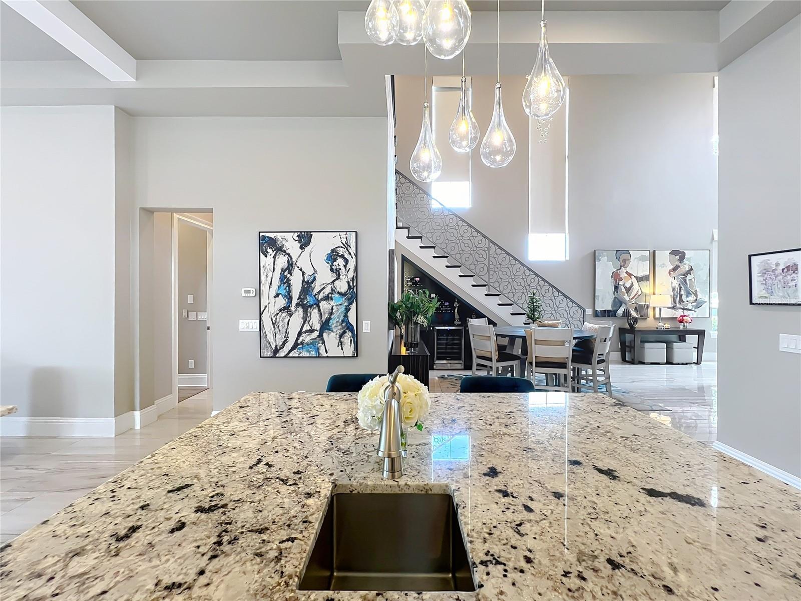Move in ready exquisite custom home masterfully built by the renowned Vogel Building Group, is perfectly situated in Bella Collina—Central Florida's most exclusive private gated golf community offering an unparalleled lifestyle. Upon entering, you'll be greeted by stunning detail, dramatic high coffered ceilings, and an abundance of natural light that illuminates clean architectural details, elegant designer lighting, and luxurious tile floors throughout. The thoughtful layout includes two expansive primary suites—one on each level, providing exceptional privacy for guests. Each suite boasts resort-style bathrooms, double vanities, spacious walk-in closets, and convenient access to laundry facilities on both levels. The chef-inspired gourmet kitchen impresses with top-tier cabinetry, sleek granite countertops, and striking statement lighting. A bespoke under-stair wine bar adds a touch of sophistication and practicality, perfect for hosting gatherings. Upstairs, a welcoming loft lounge overlooks the main living area below, creating an inviting space for relaxation or casual family get-togethers. Step outside to your own private paradise: a shimmering pool, outdoor summer kitchen, vibrant tropical landscaping, and a fully motorized screened lanai that effortlessly blends indoor and outdoor living. From the second-floor balconies, savor breathtaking sunrises overlooking the pool, or gorgeous sunsets from the front Juliette balcony. Many upgrades have been recently been added to the home. Just steps away, the magnificent Bella Collina Clubhouse delivers an unparalleled country club lifestyle, complete with multiple fine dining venues, spa, Har Tru tennis courts, newly renovated pickleball courts, state-of-the-art fitness facilities offering twenty complimentary fitness classes a week, a magnificent outdoor pool complex and 18 hole Nick Faldo designed golf course with two driving ranges. Enjoy year round social and culinary events for all ages. Located just minutes from Montverde Academy and downtown Winter Garden with easy access to the Florida Turnpike, highways 429 and 408. Don't miss this opportunity to own a true masterpiece in one of Florida's premier resort-style communities! Seller is paying the $40,000 Sports Membership Deposit on behalf of Buyer at closing.